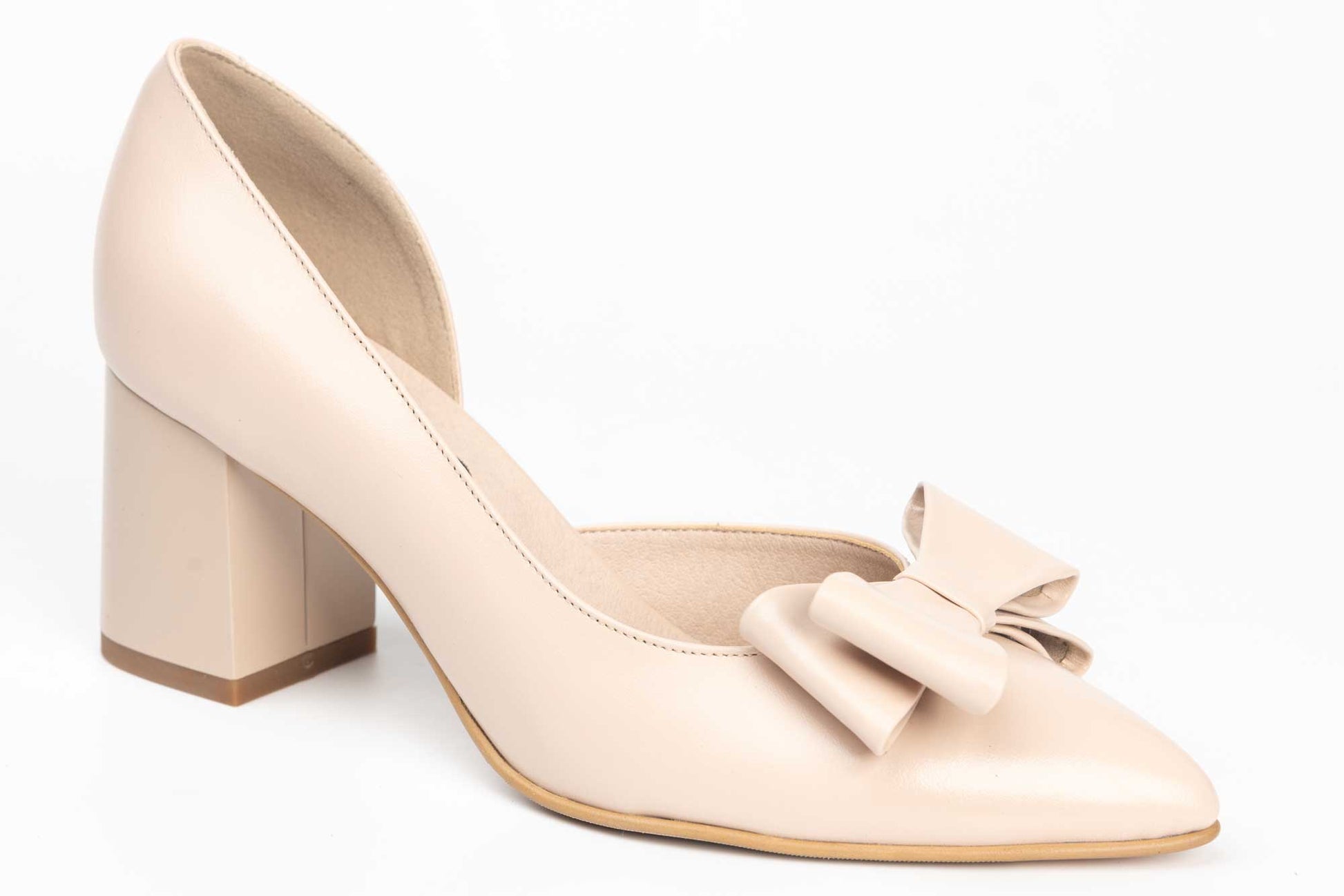 Pantofi ANTONIO de dama decupati din piele naturala avand tocul patrat de 6 cm, iar pe varf e montata o fundita din piele. Greutatea unui singur picior este de 240 grame. Recomandat pentru doamne cu picior mai lat sau cu mont.