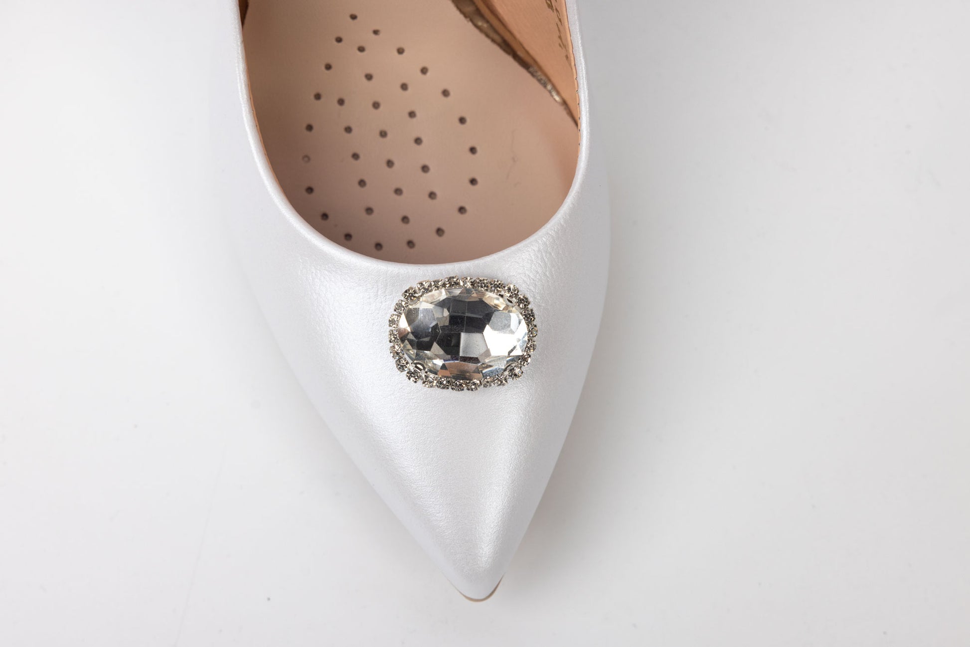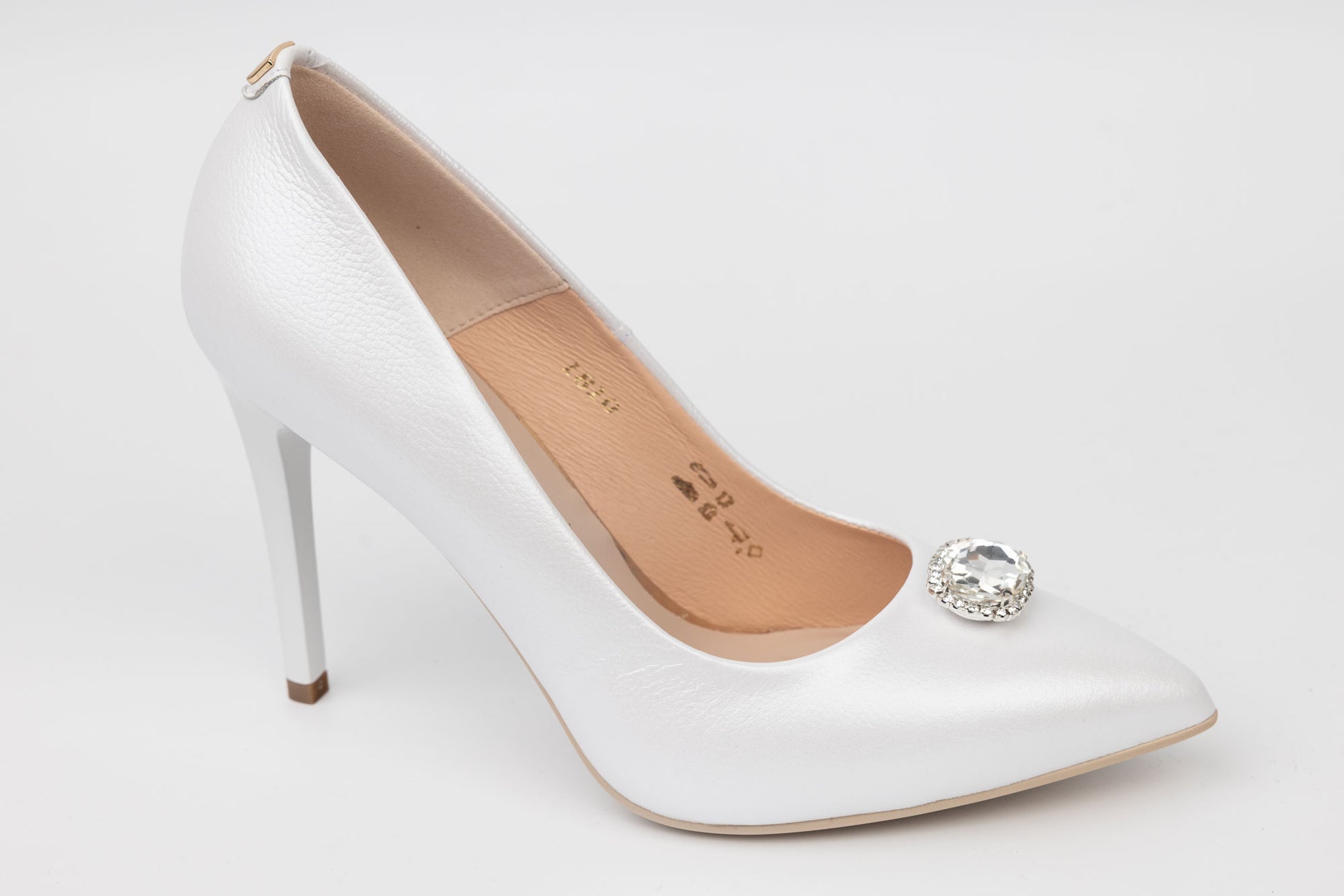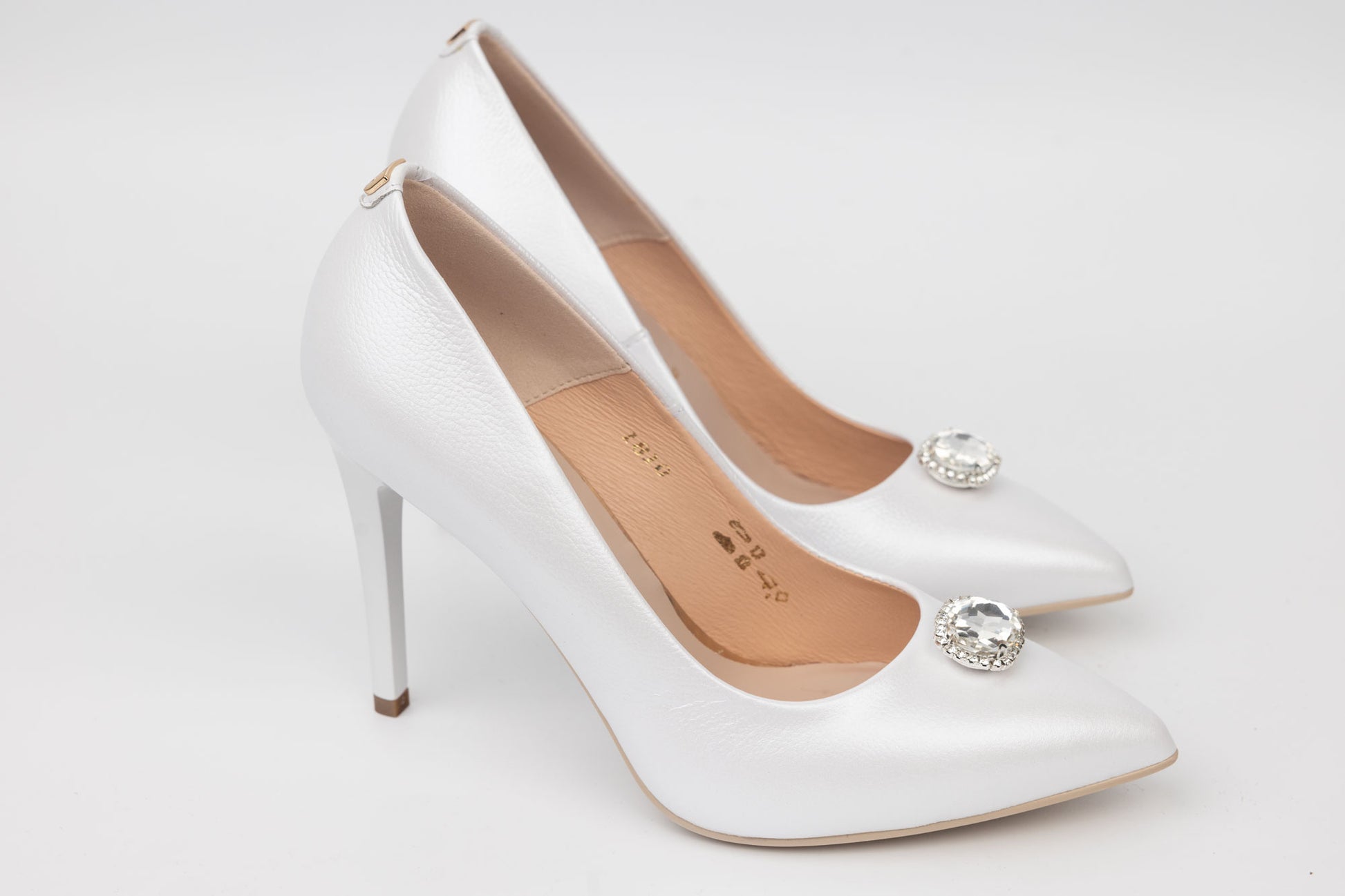 Pantofi mireasa din piele naturală SALA 1810 alb Cristal