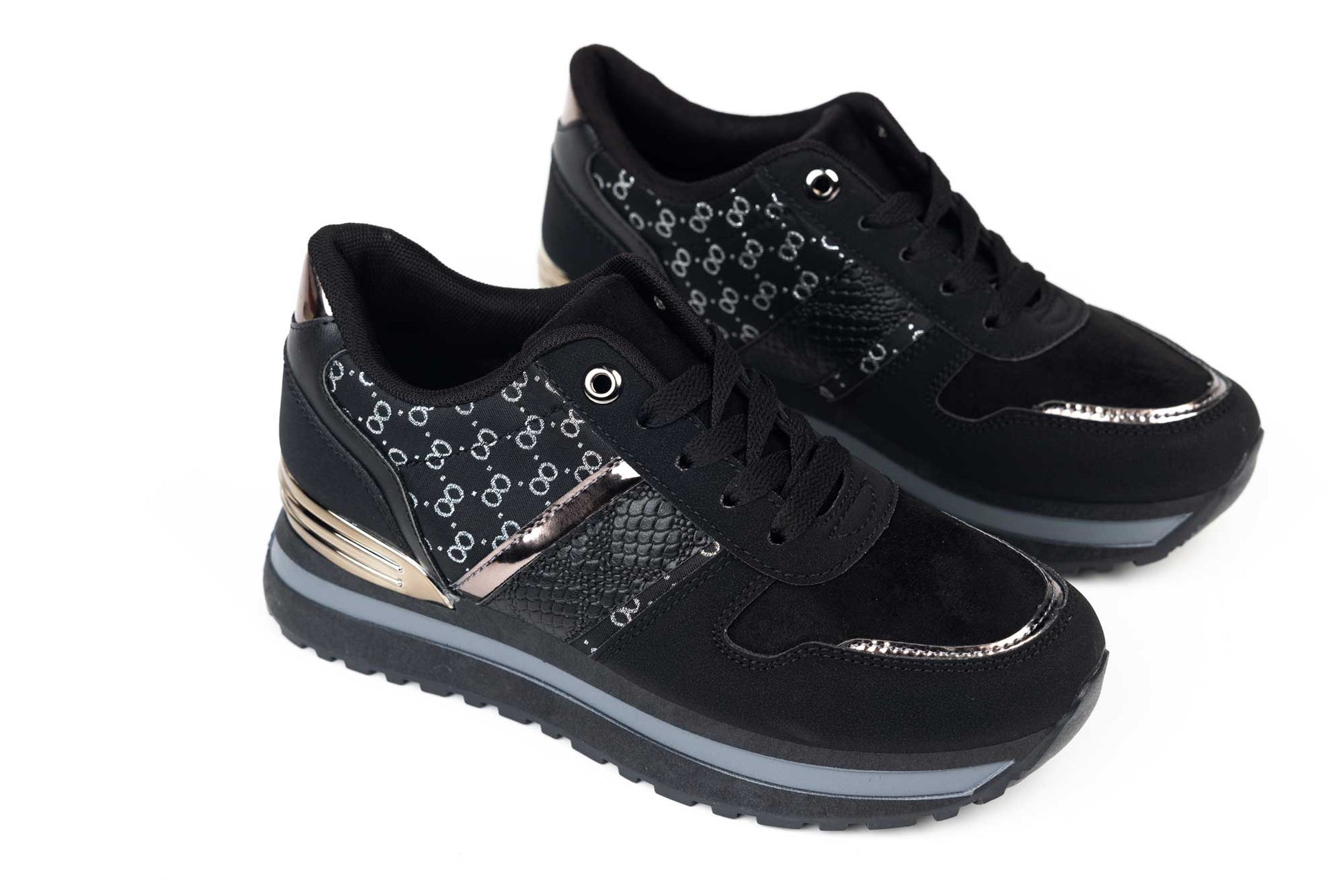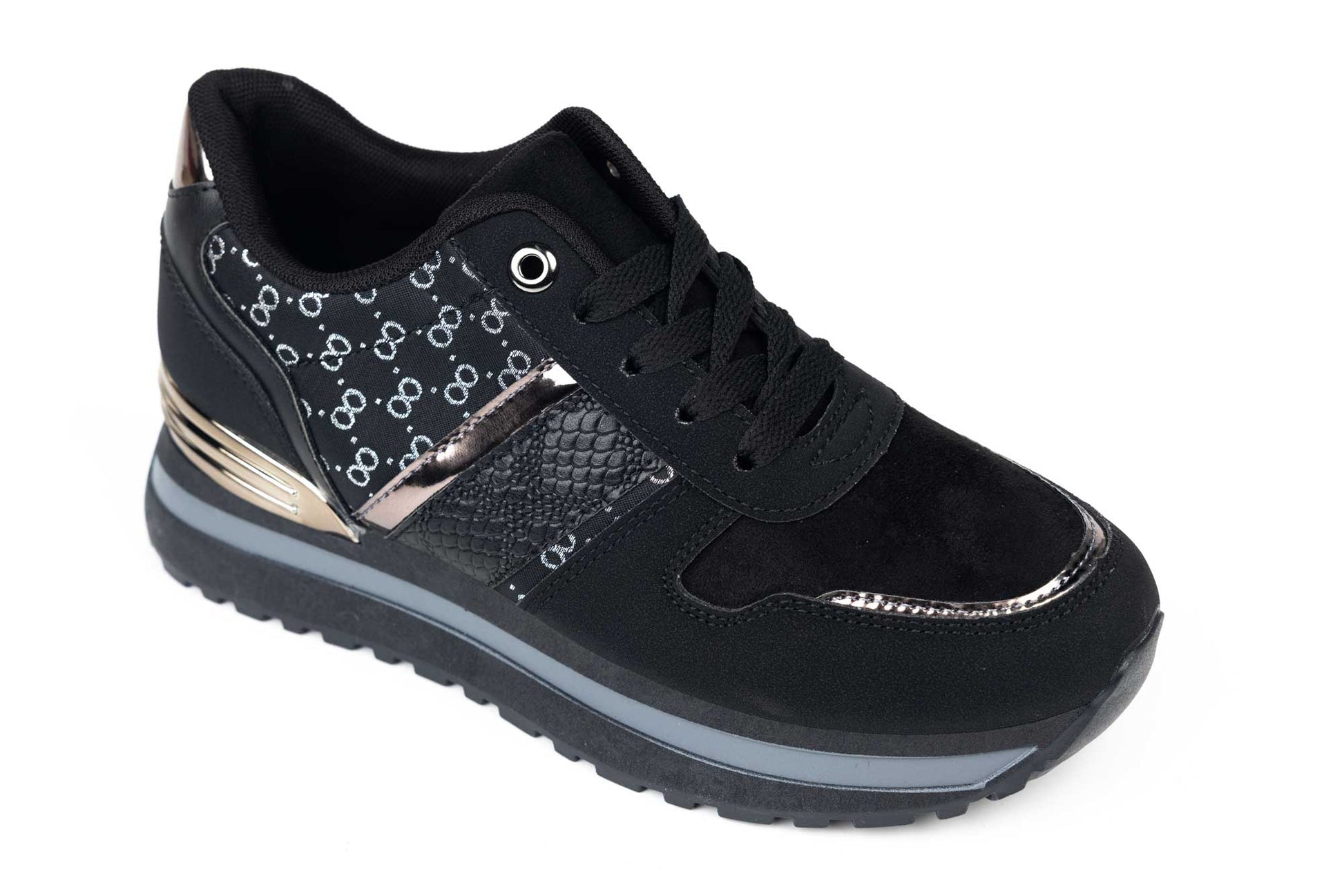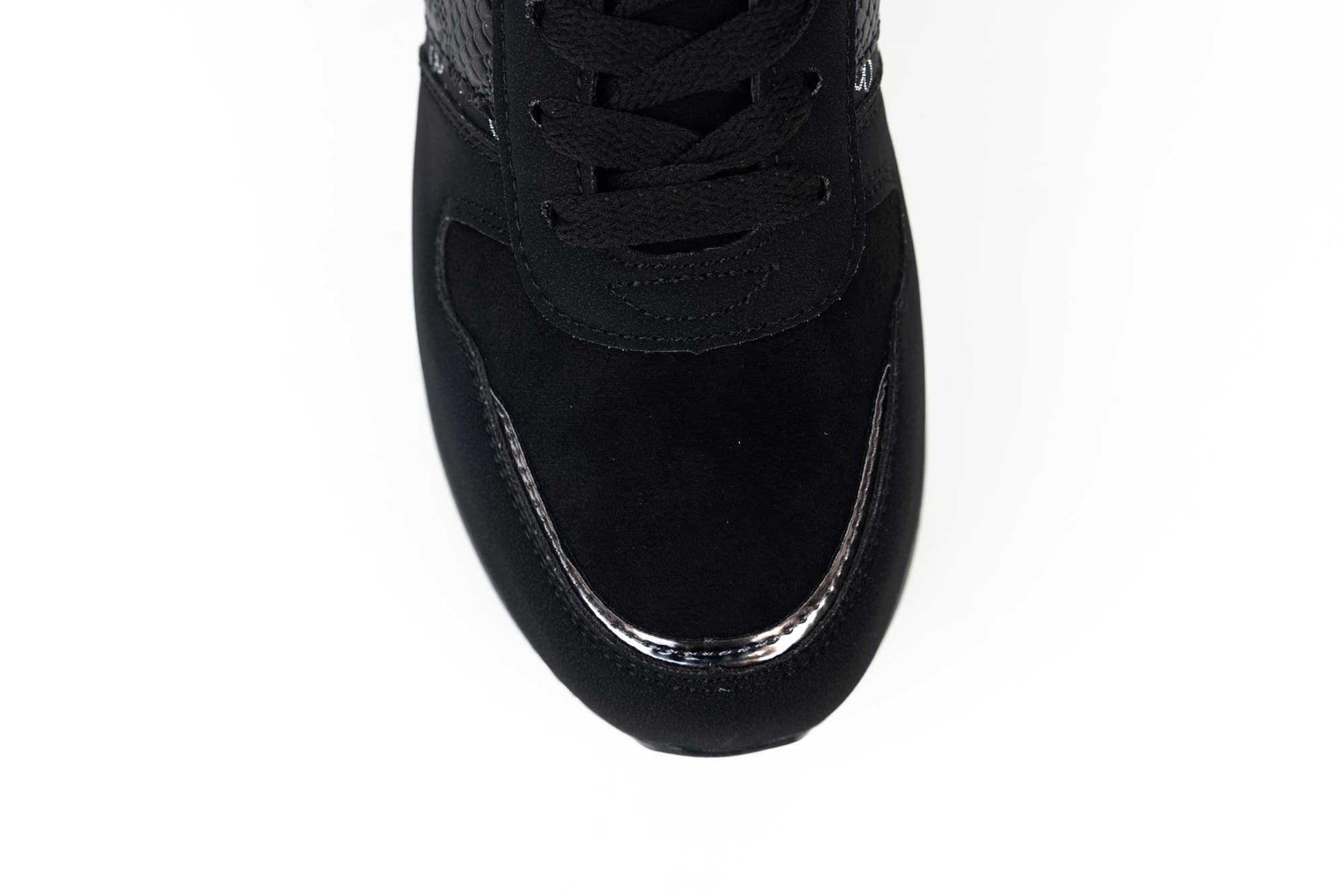 Adidasi dama M-M din piele ecologică cu talpa groasa de 3 cm înălțime care se leagă cu siret având vârful rotunjit. Greutatea unui singur picior este de 290 grame.