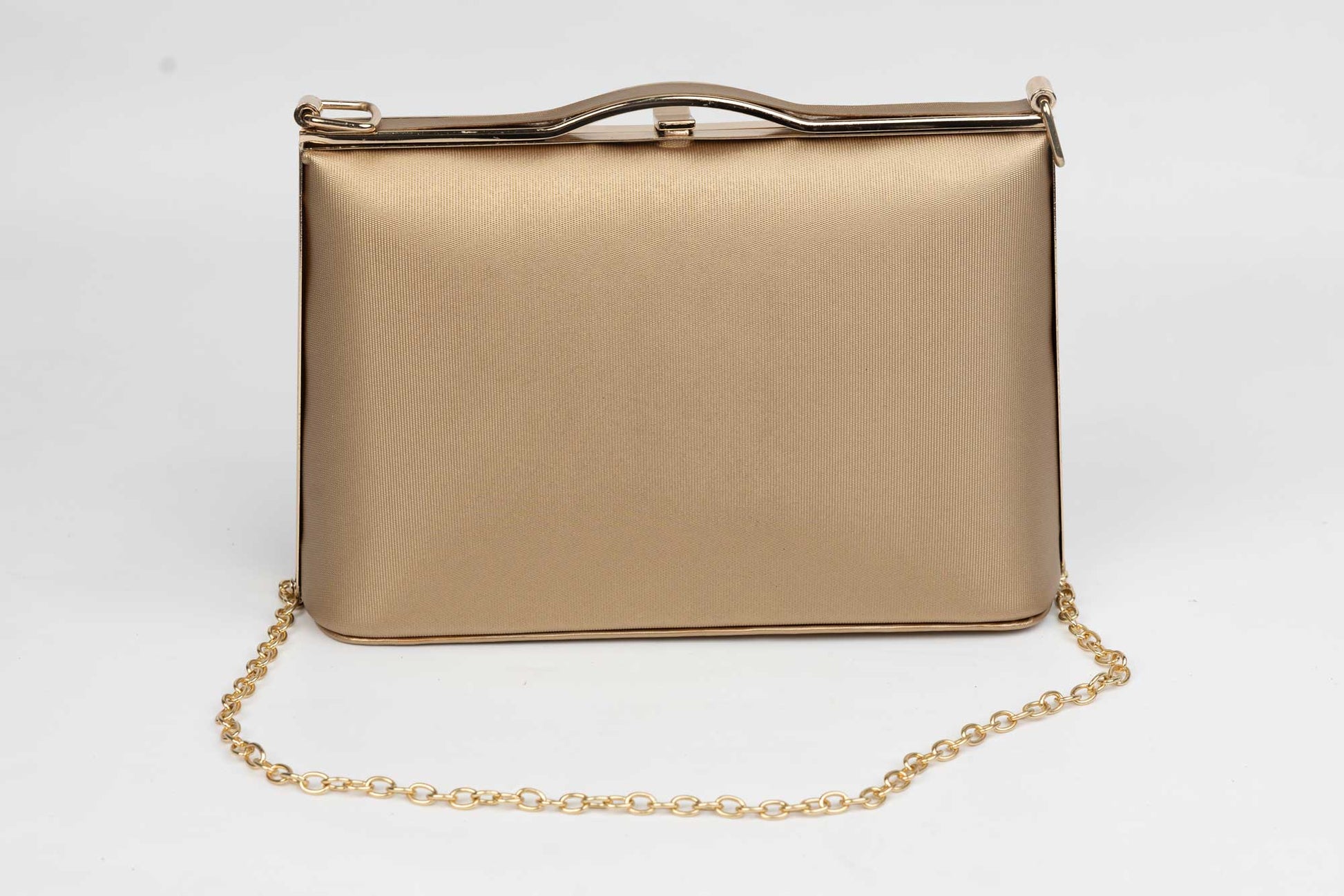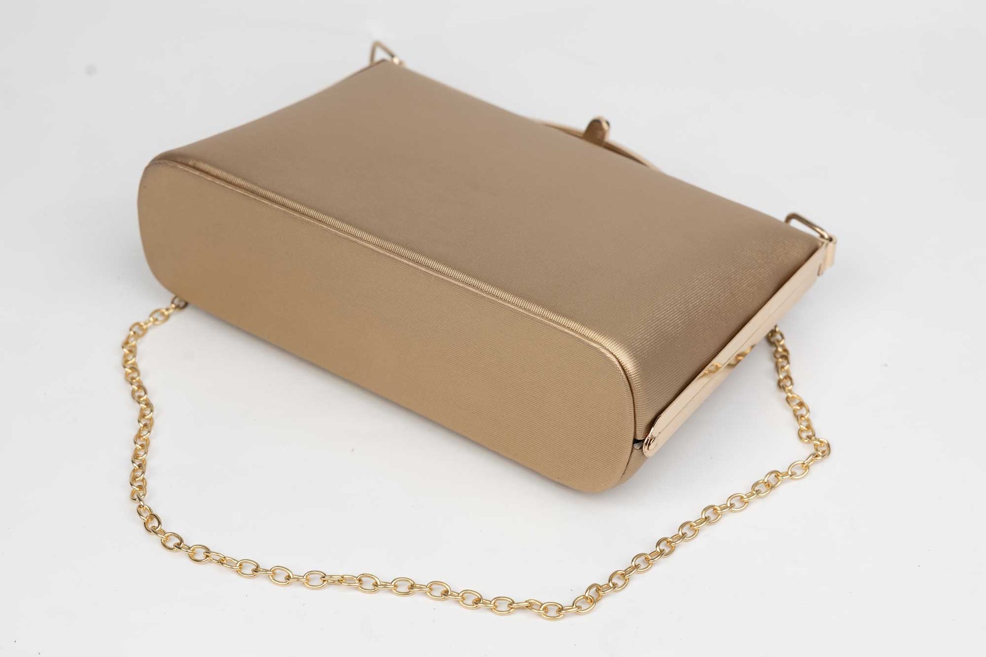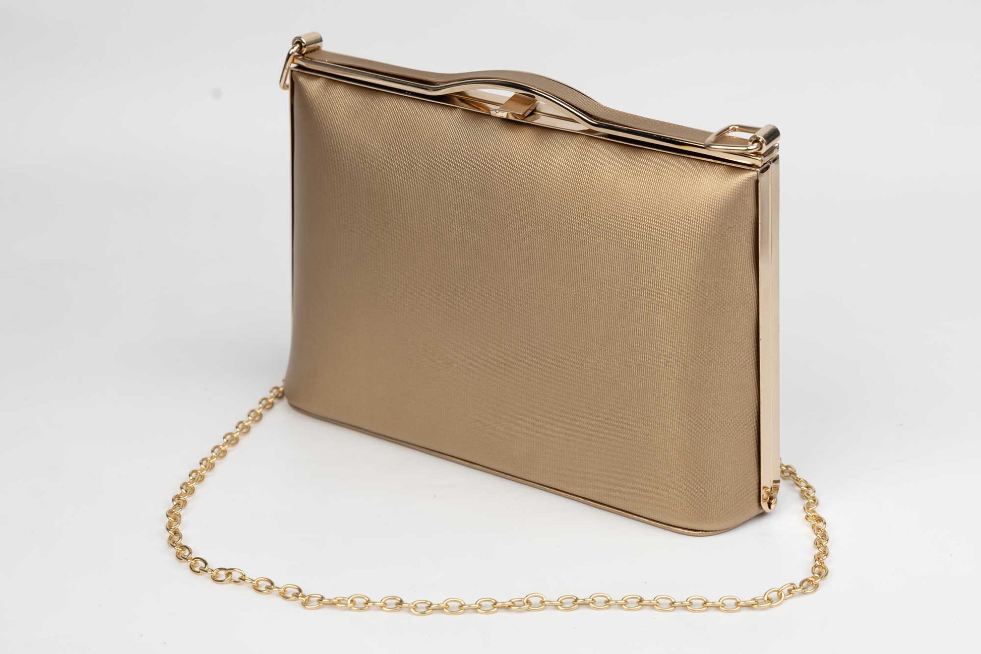 Un plic de dama de marime 25-17 cm cu efecte sclipitoare aurii mat avand in dotare un maner dar si o curelusa lant metalice detasabile. Interiorul este bicameral (2 compartimente) si este potrivit si incapator pentru un telefon sau cosmetice. Inchiderea se face cu o clapeta metalica in partea de sus a plicului.
