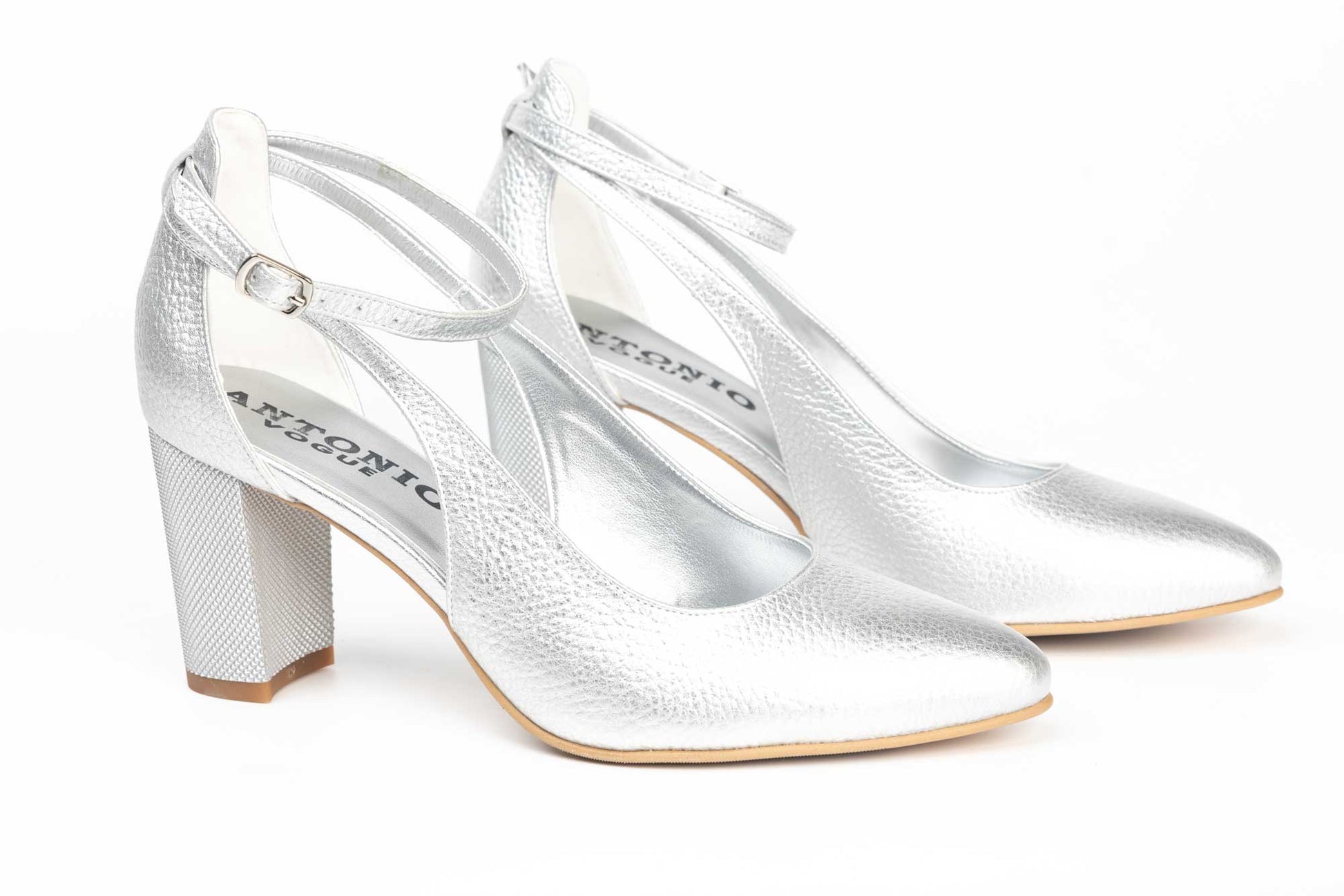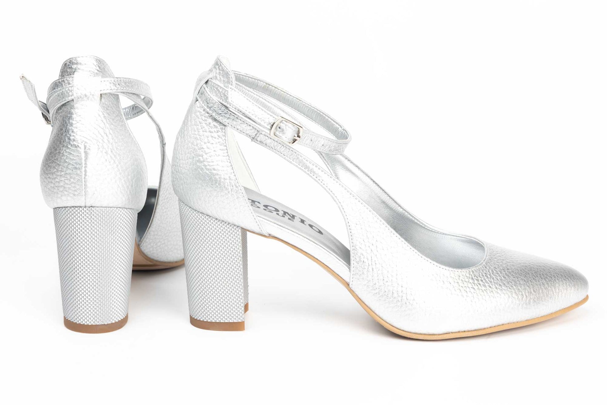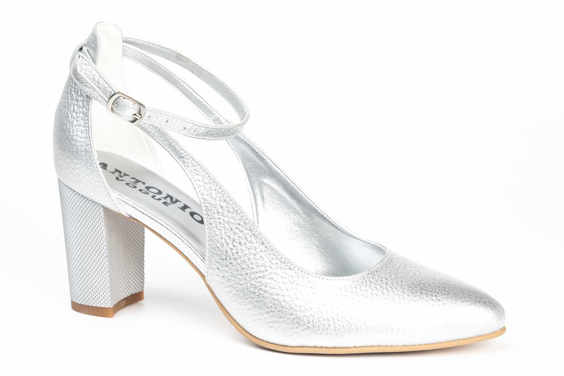 Pantofi dama decupati din piele naturala ANTONIO 31216 argintiu