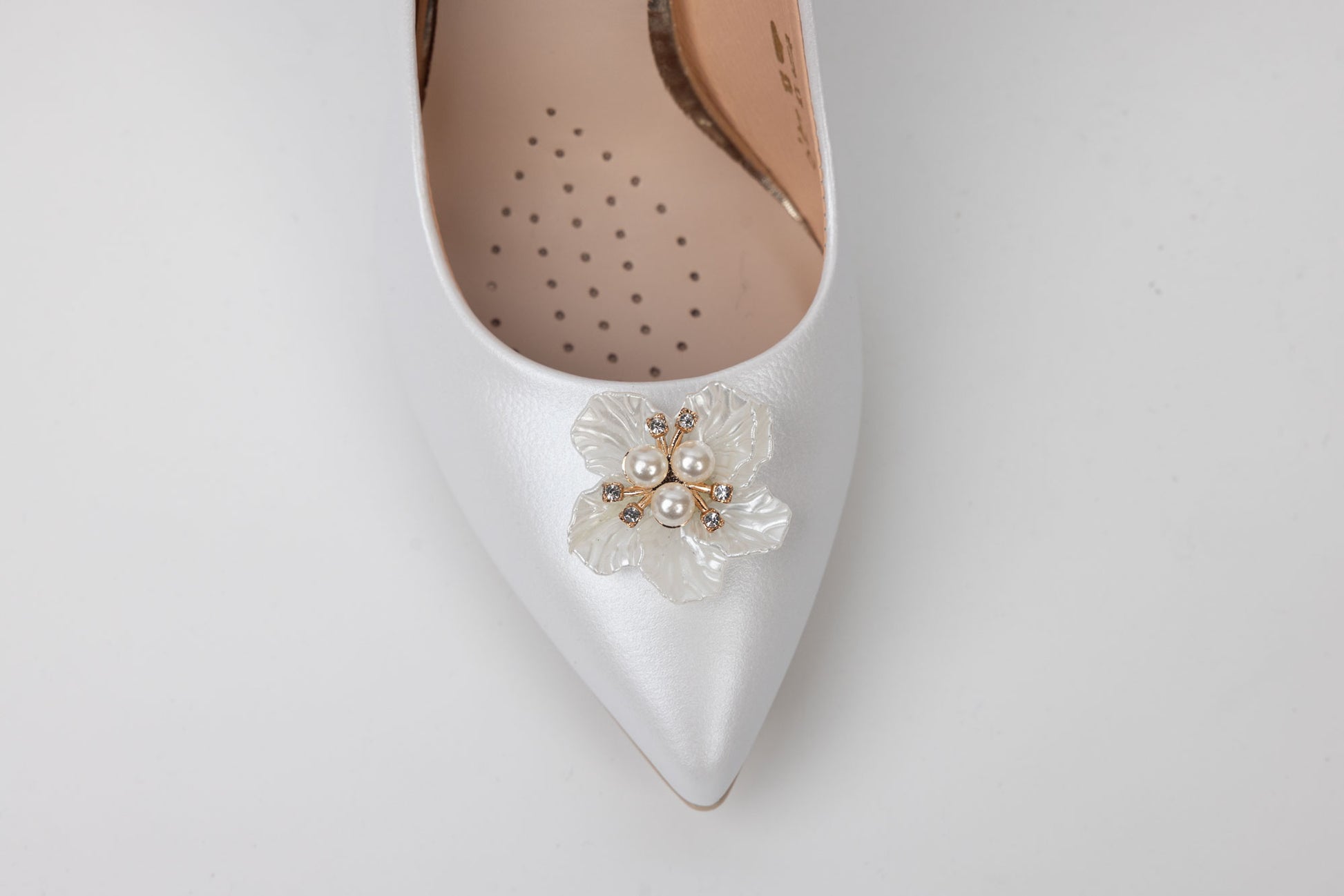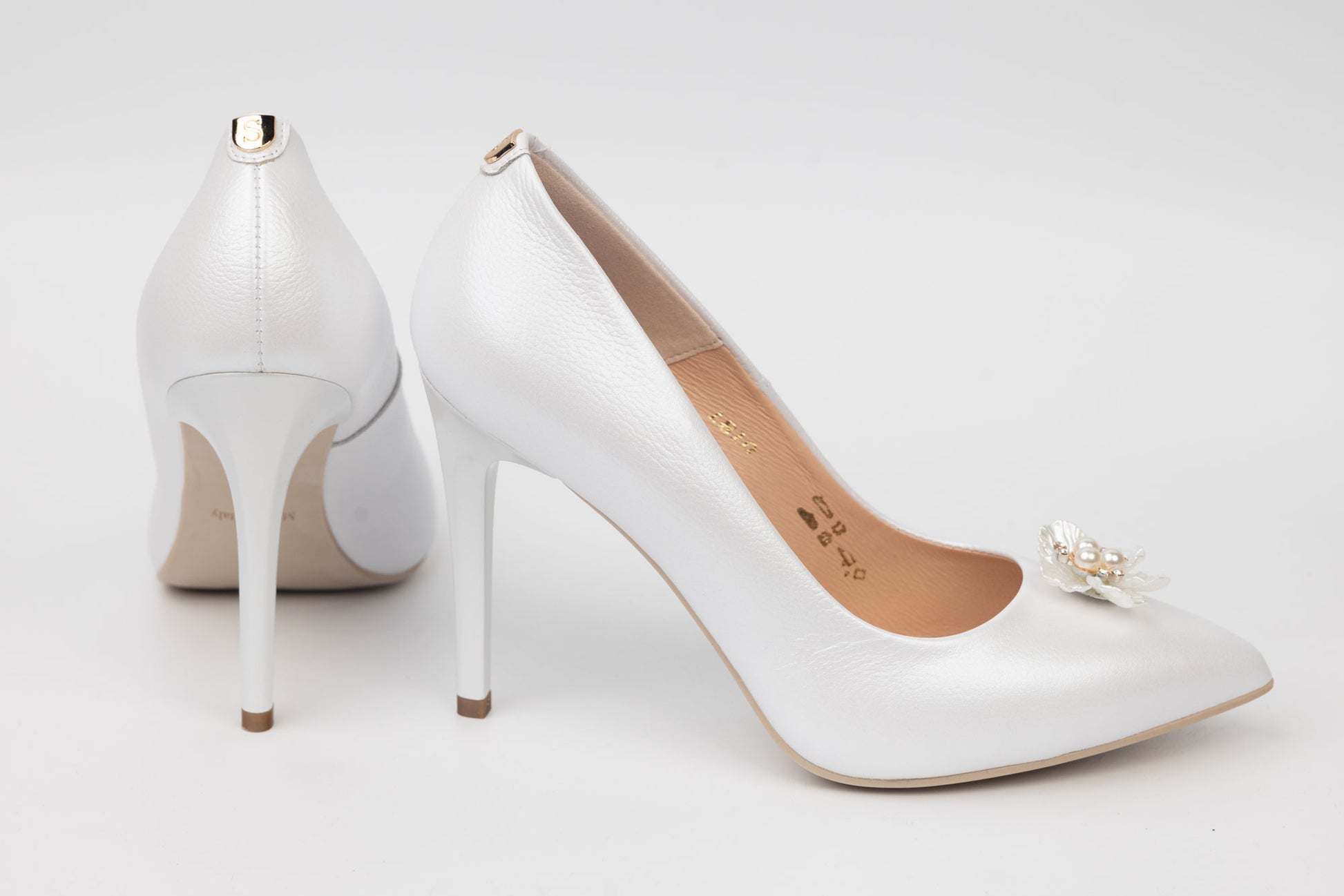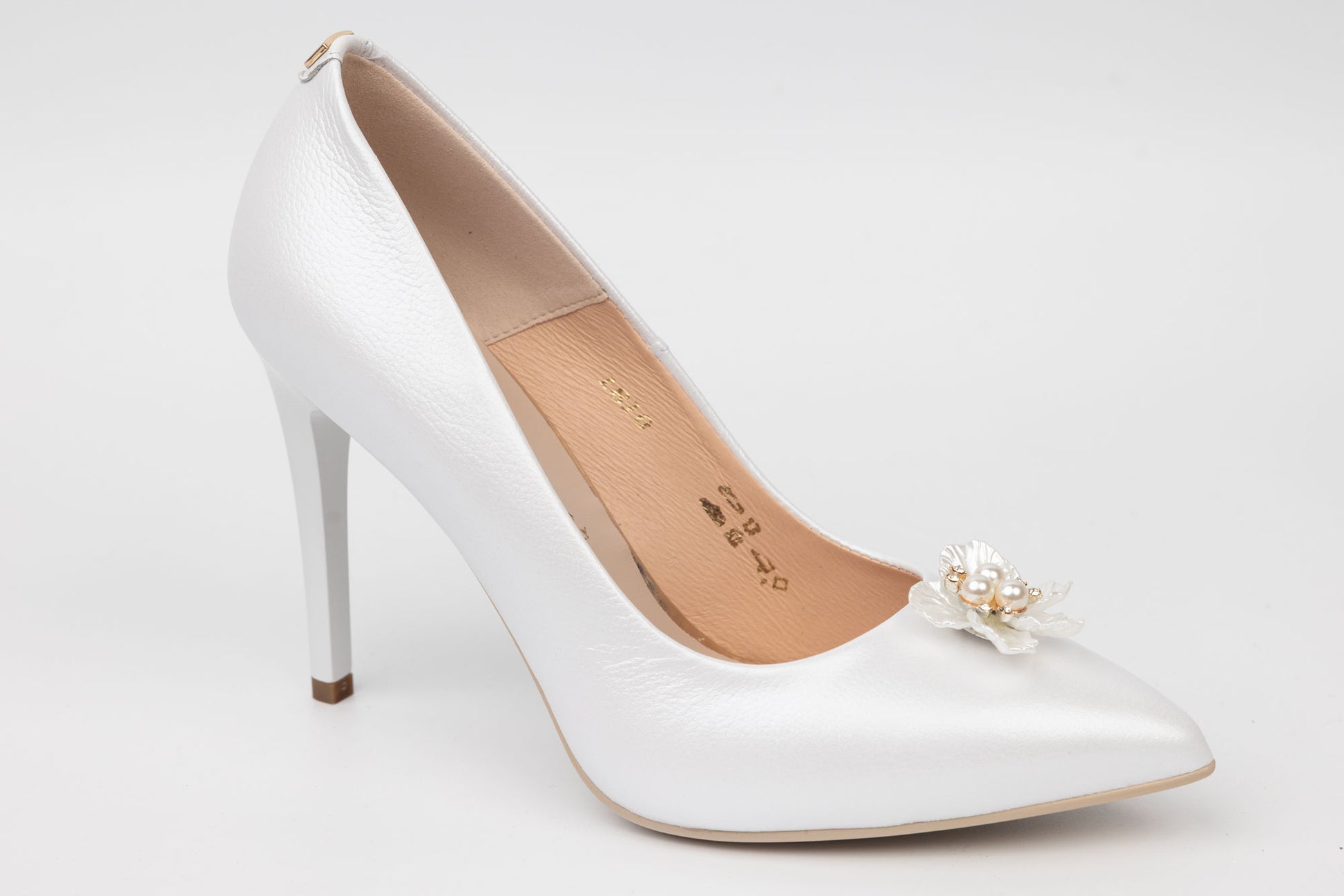 Pantofi mireasa din piele naturală SALA 1810 alb floare cu perle
