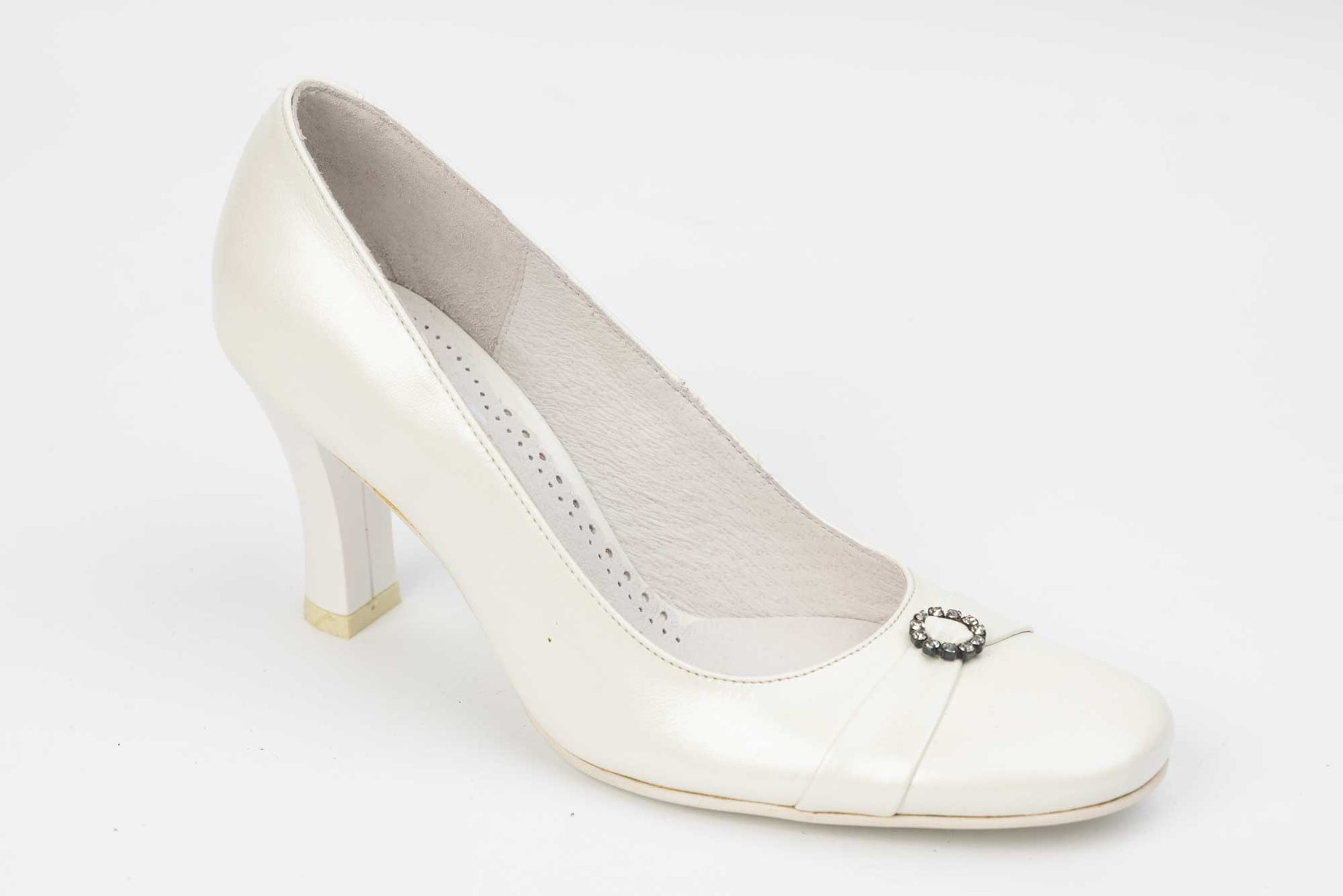 Pantofi mireasa decupați piele naturală PERLA 3314 Alb sidef