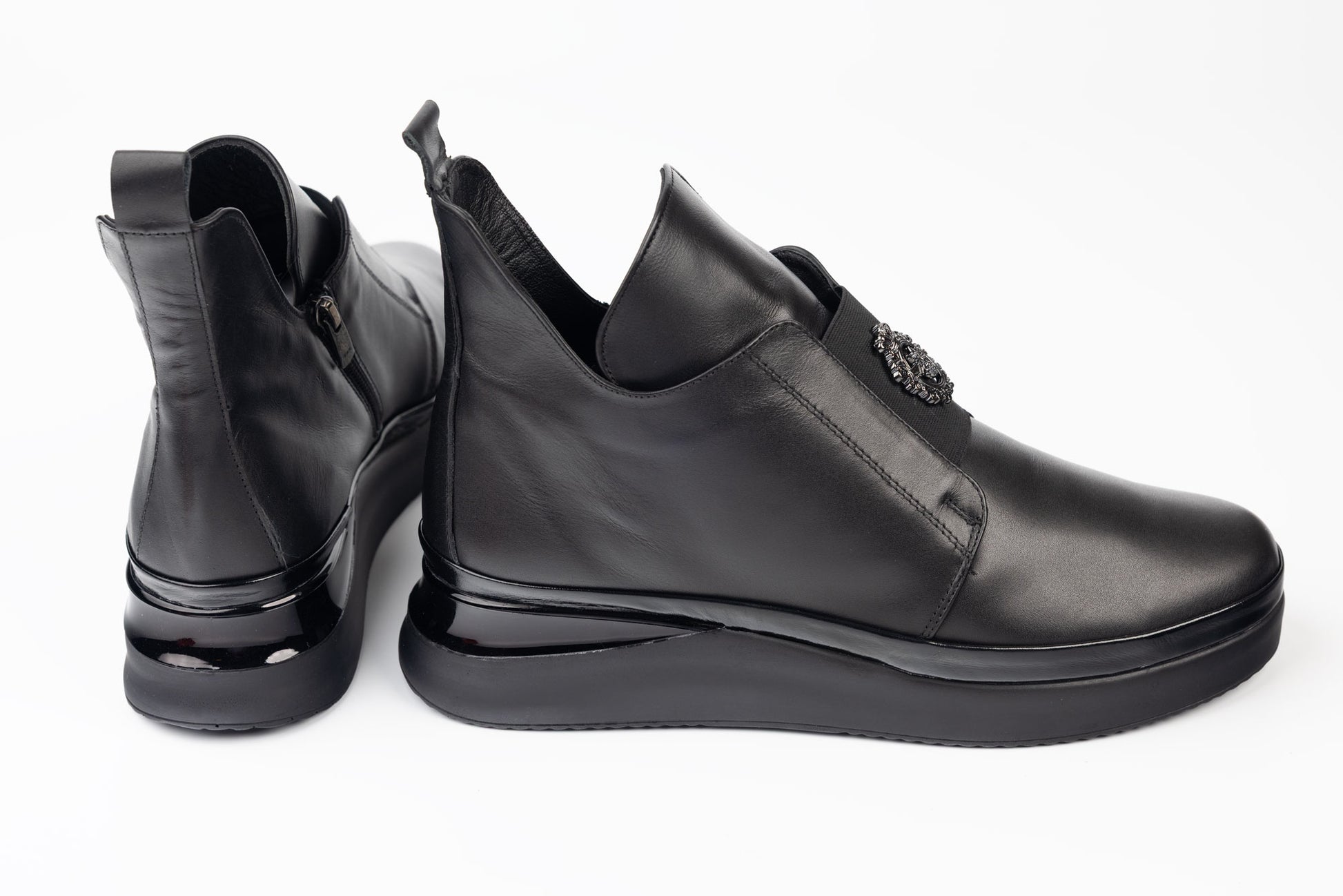 Ghete DOGATI de dama din piele naturala moale avand intr-o parte un fermoar iar pe fata are un elastic pentru încălțare ușoară. Talpa ortopedica este marele secret fiindca este foarte usoara, avand la interior un brant cu memory foarte comod la purtare. Greutatea unui singur picior este de 349 grame. Marimi de la 40 la 42.