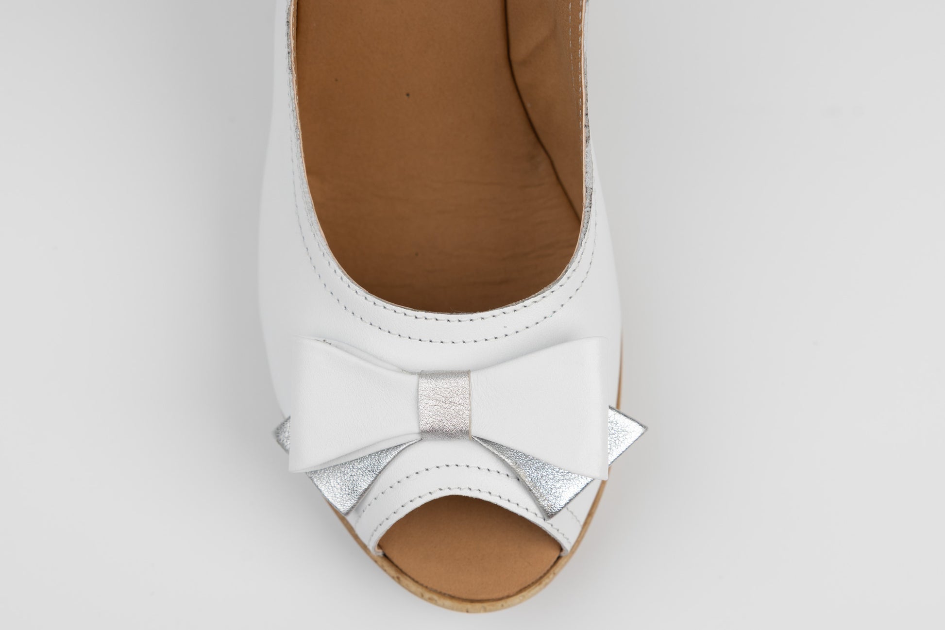 Pantofi mireasa decupați piele naturală PERLA 3314 Alb sidef