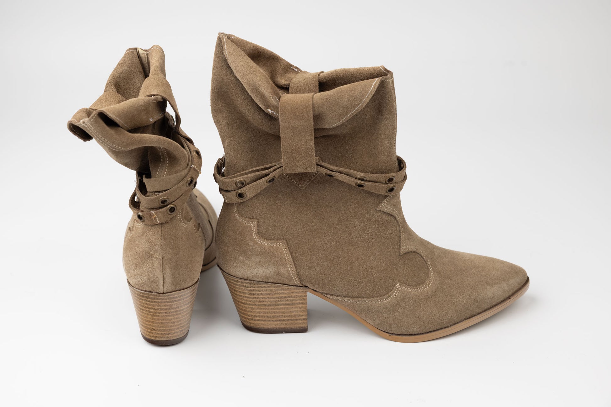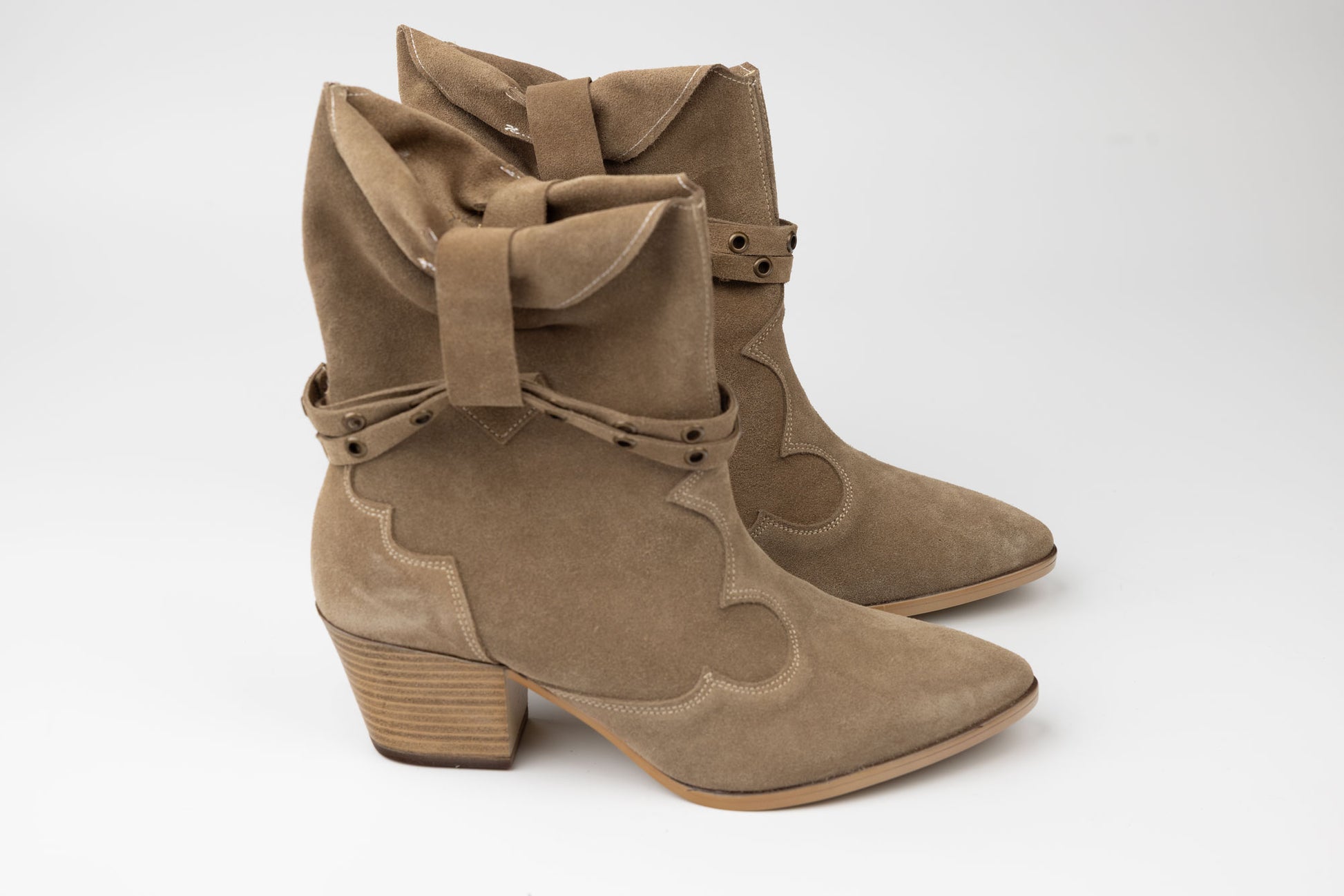 Ghete dama piele naturală ciocata PERLA 3656 Vizon