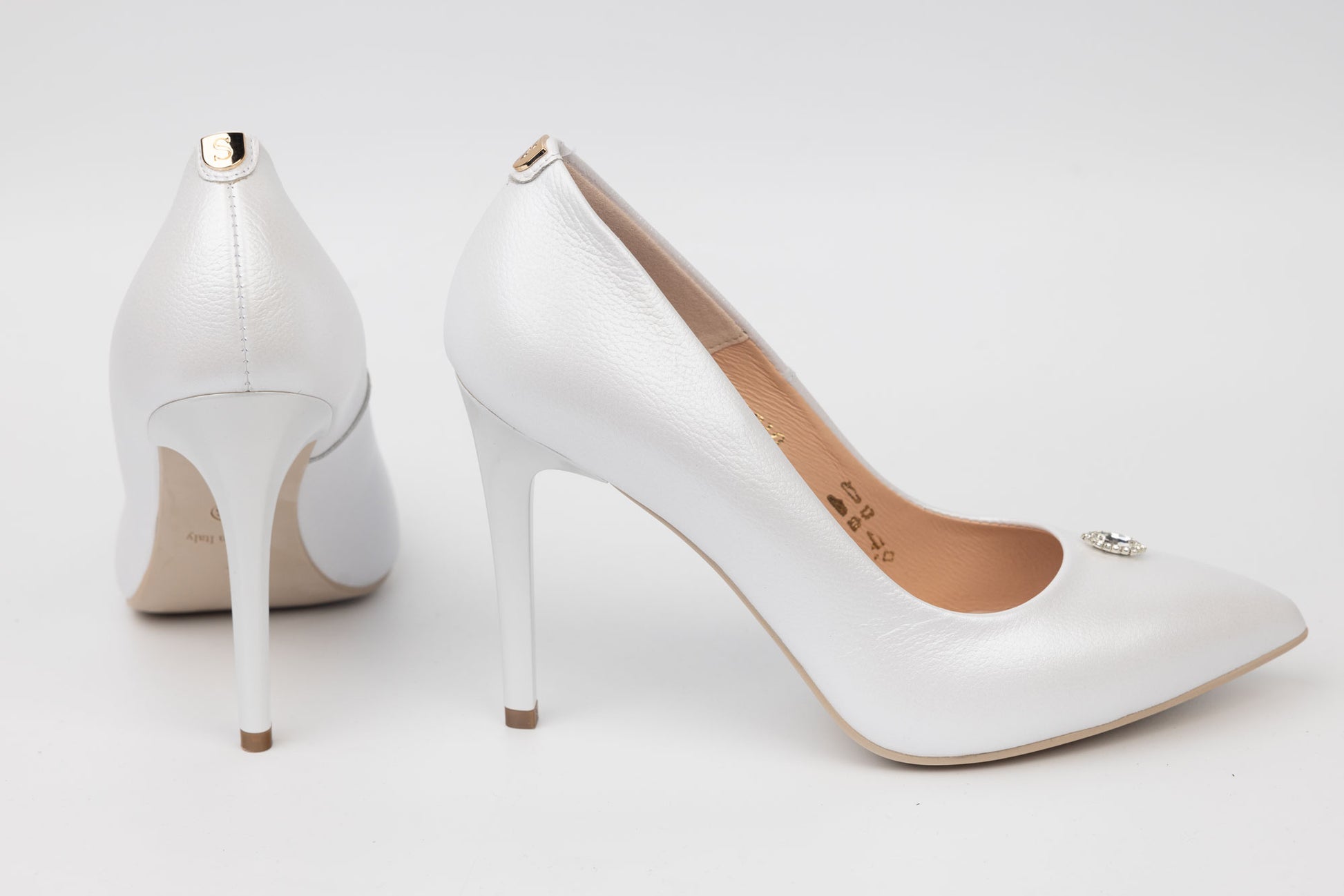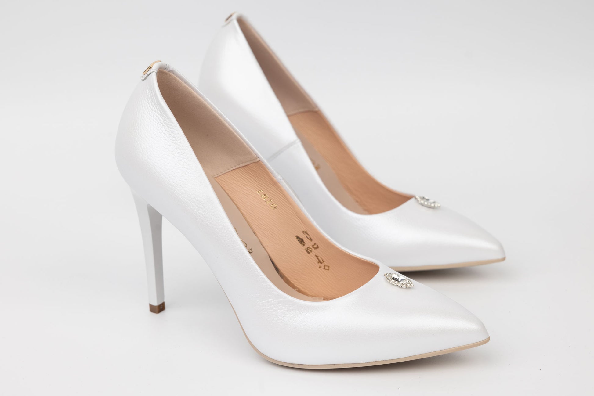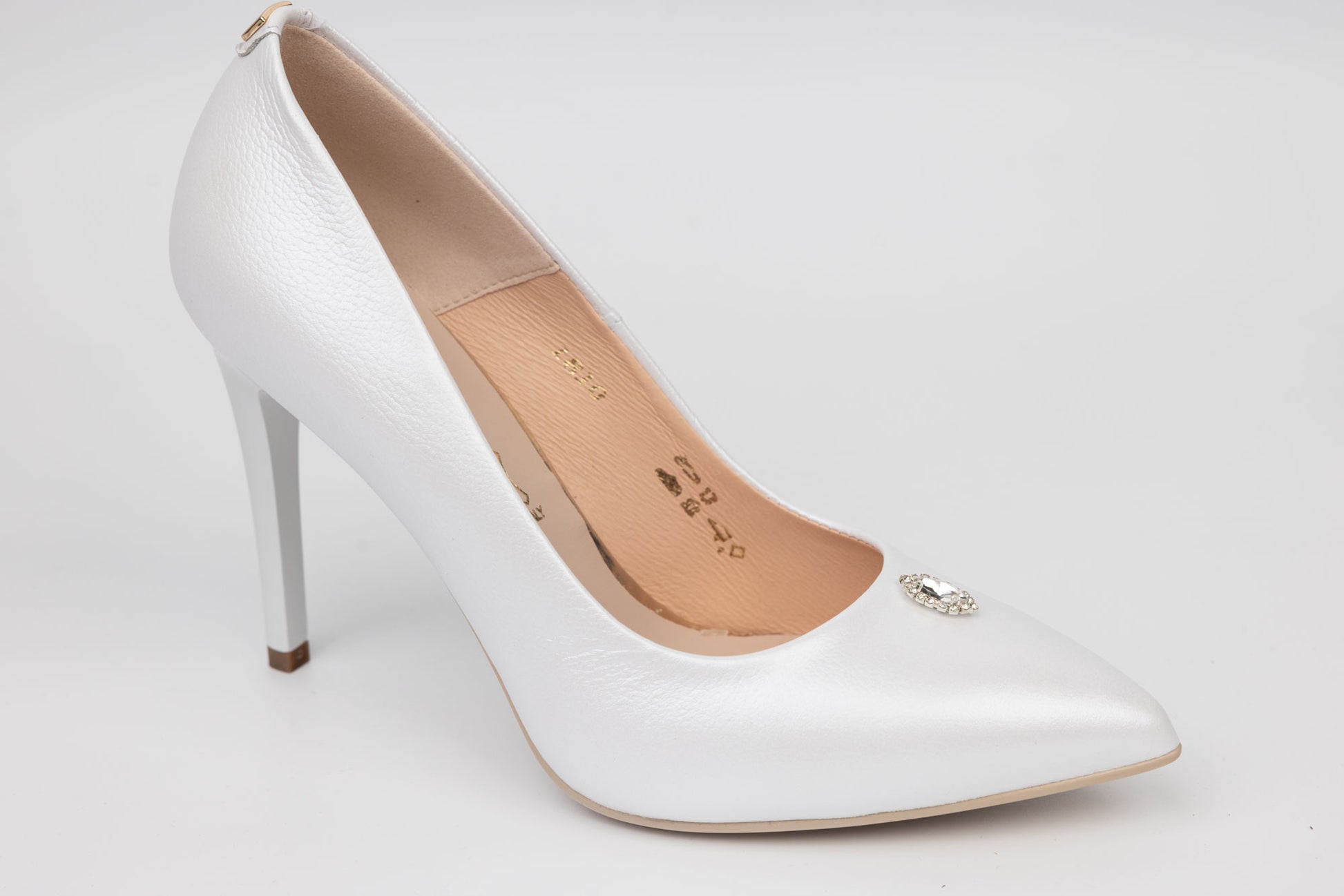 Pantofi mireasa din piele naturală SALA 1810 alb Cristal mic