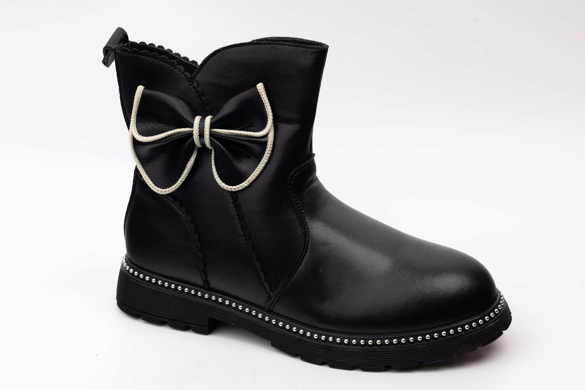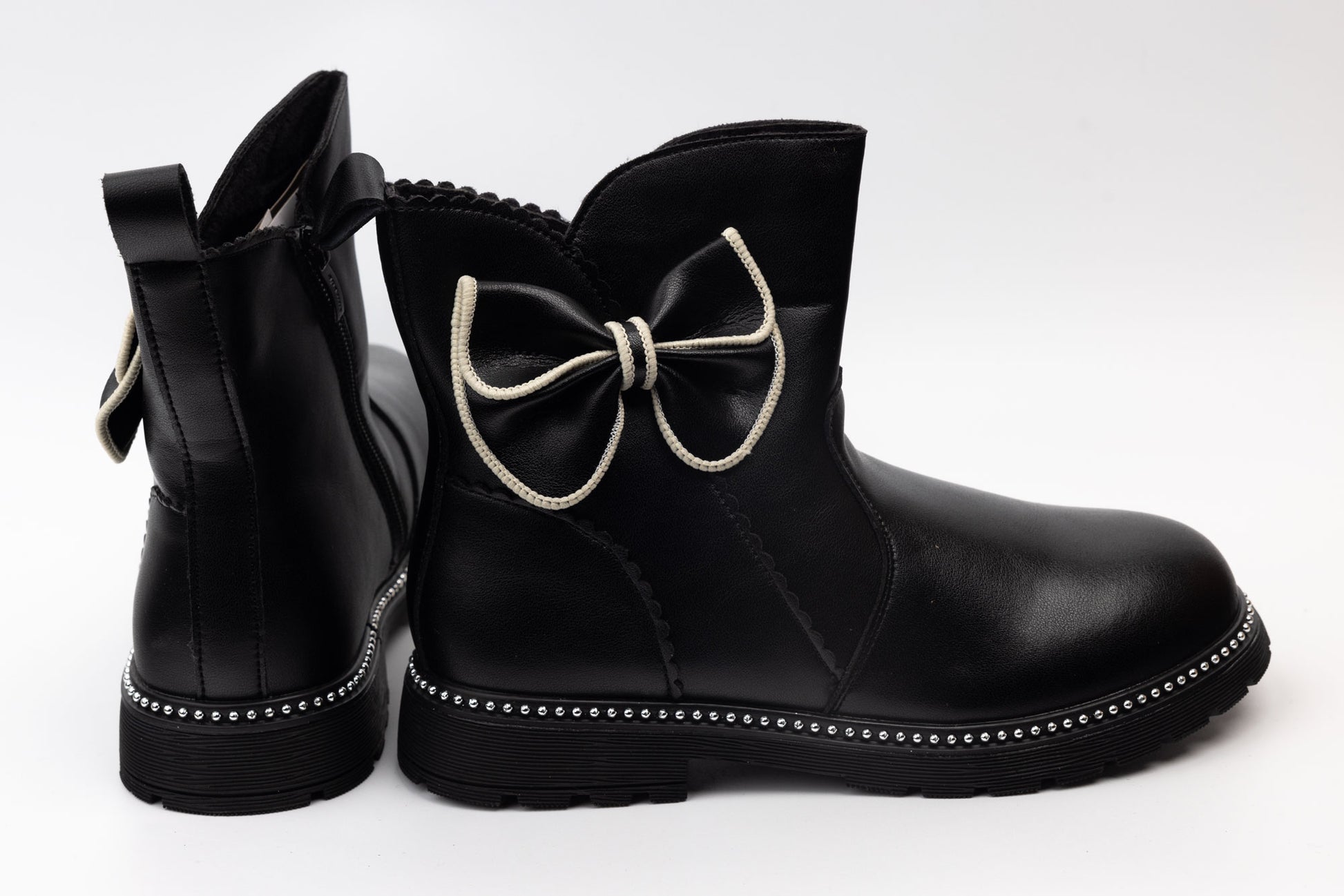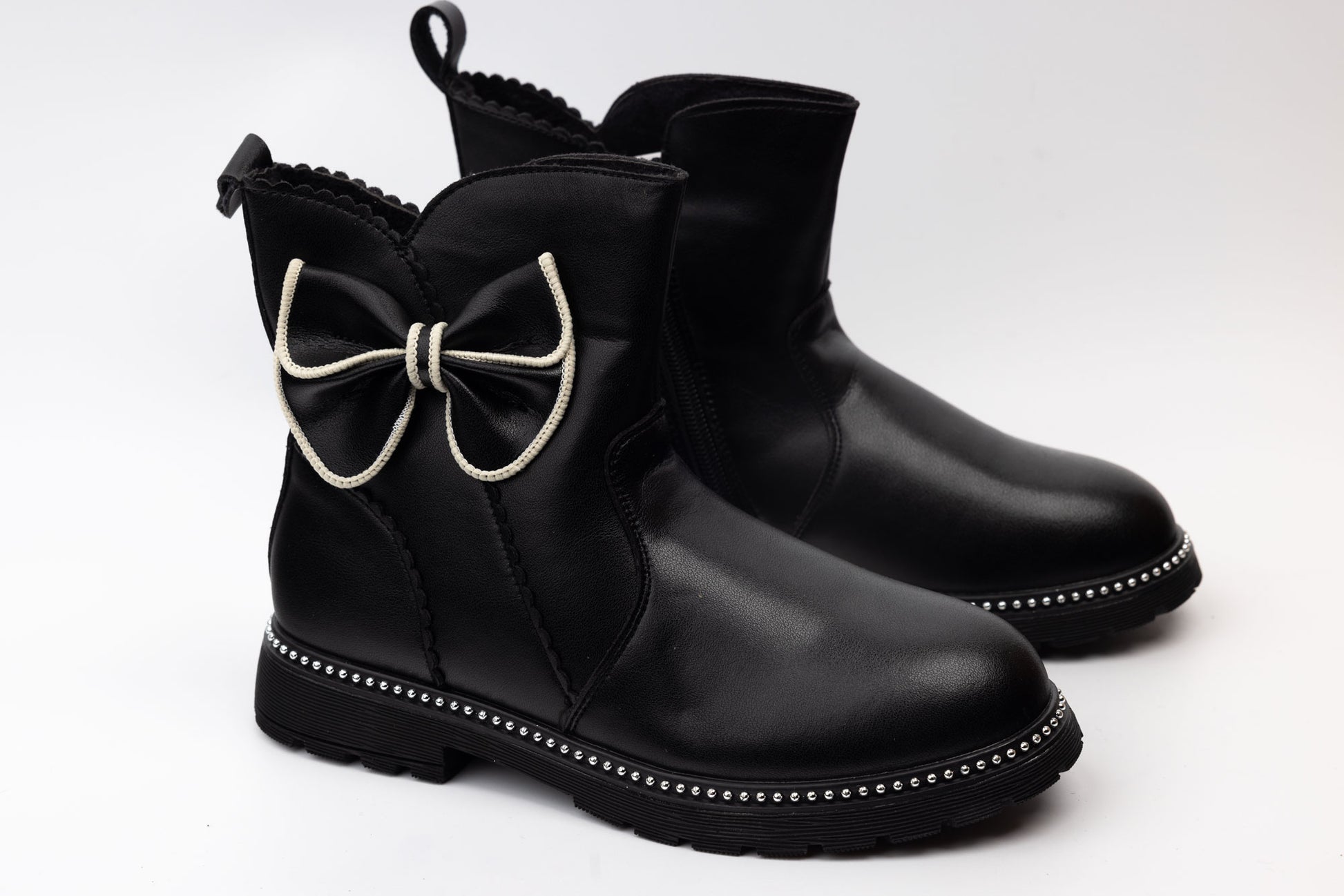 Ghete copii pentru fete APAWA din piele ecologică de calitate cu talpă groasă de 1 cm înălțime accesorizat iar la interior are o blăniță groasă și pufoasă de 6 mm recomandat pentru sezonul rece. Talpă este una rezistentă și elastică , nu permite să intre apa la interior având pe ea striații antiderapante.
