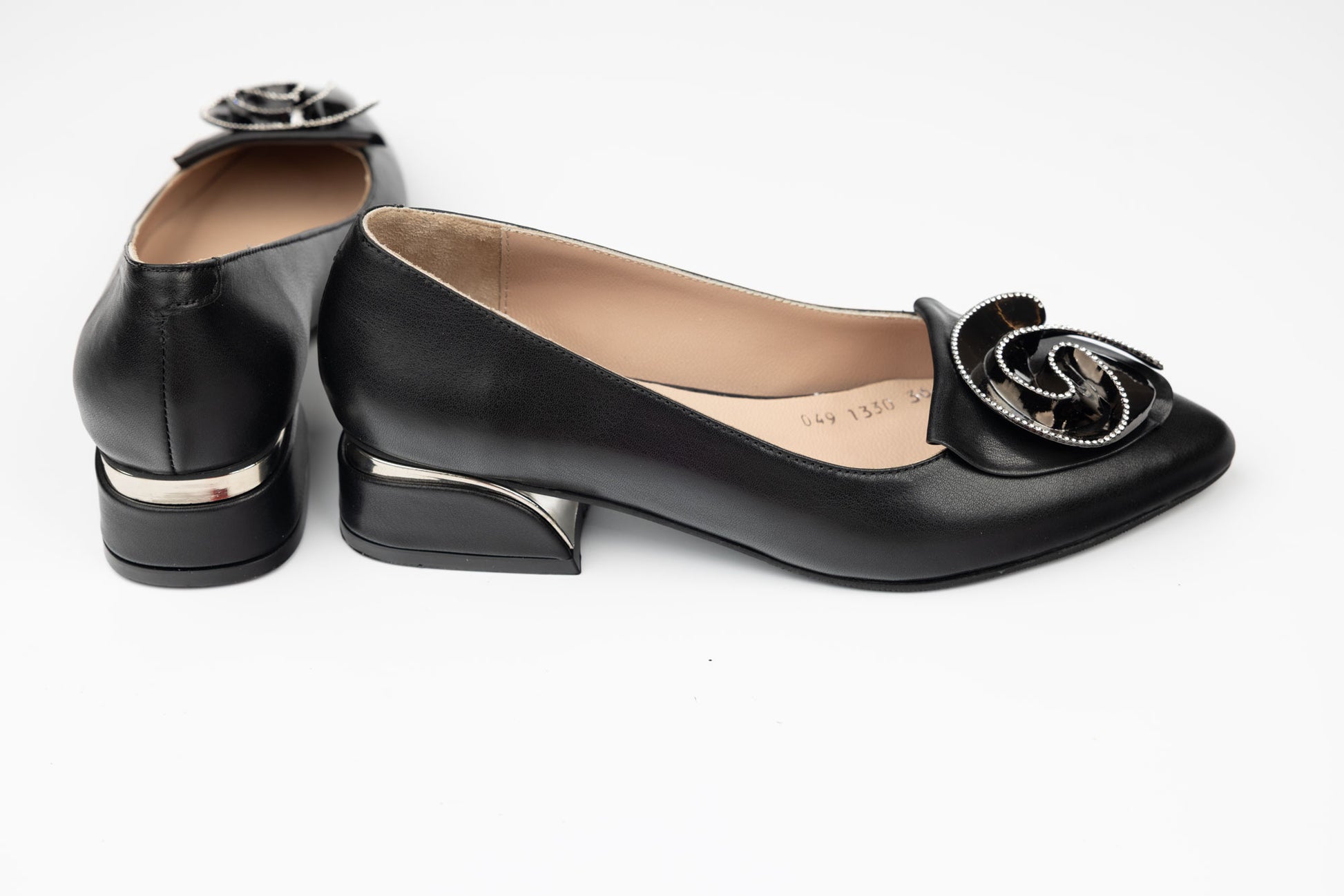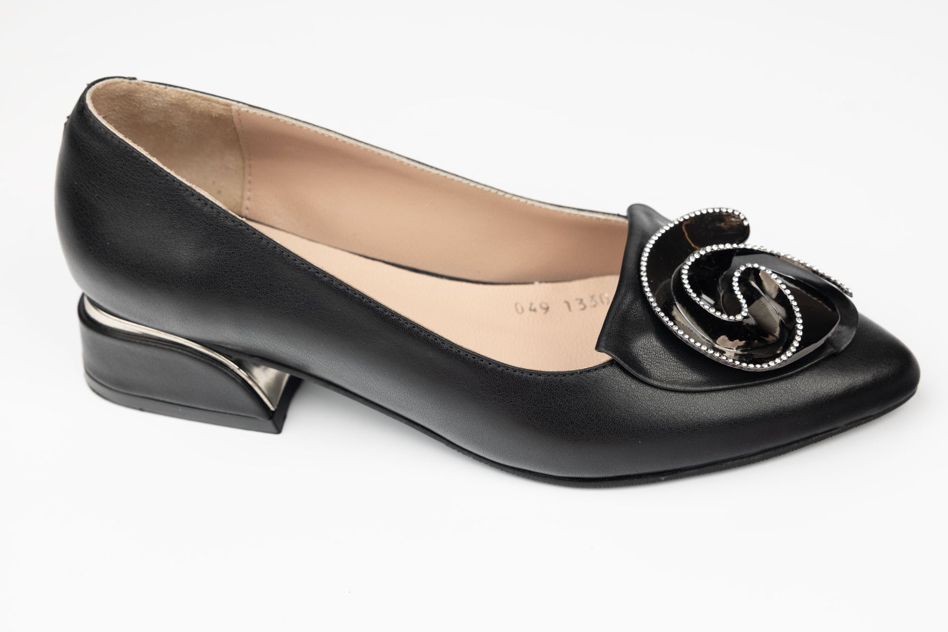 Pantofi DOGATI de dama din piele naturala avand tocul pătrățos cu ornament , cu inaltime de 2,5 cm. Greutatea unui singur picior este de 240 grame. Recomandat pentru doamne cu picior mai lat sau cu mont. Mărimi de la 35 până la 40.