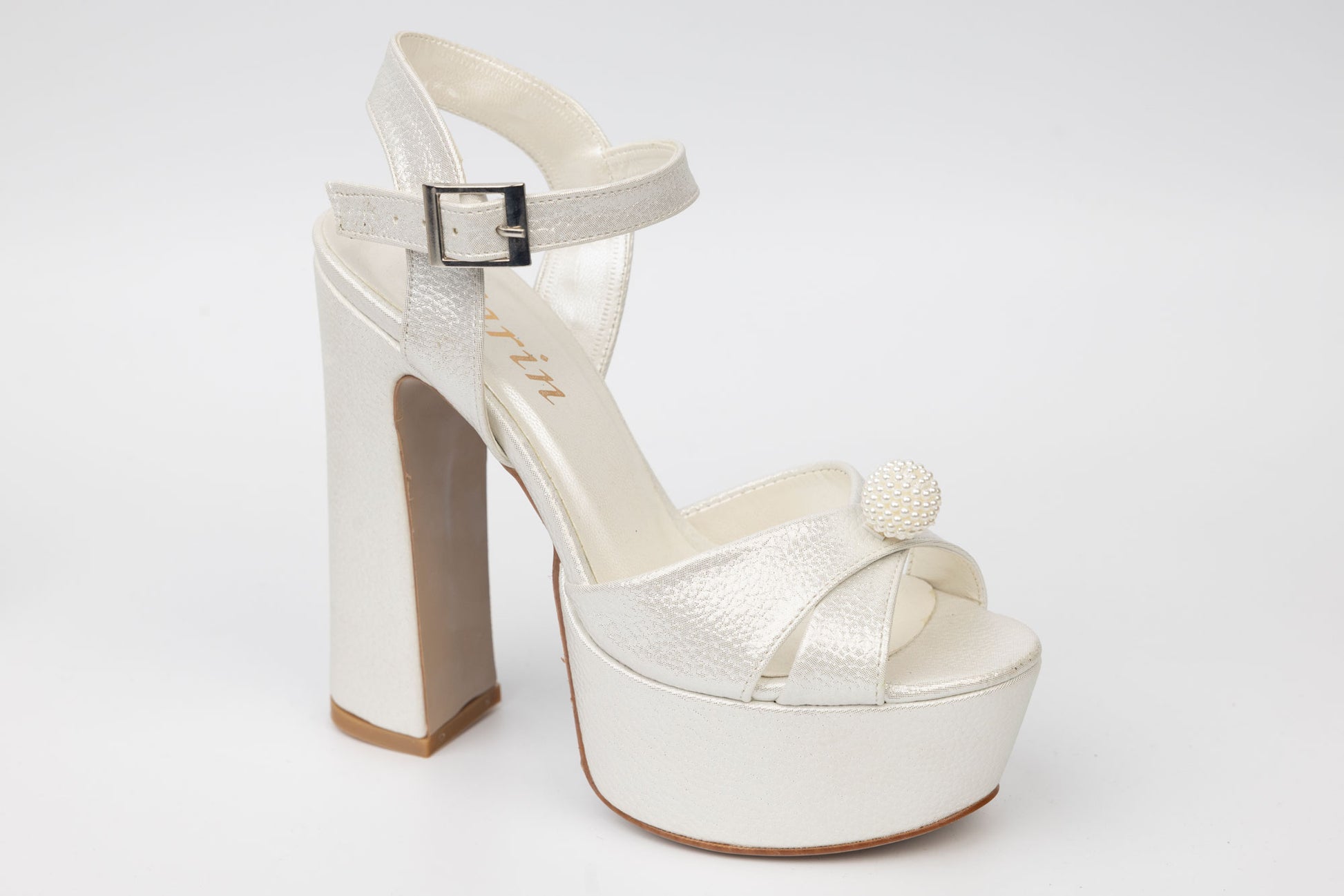Sandale mireasa Karin 7171 alb croco saten Perla