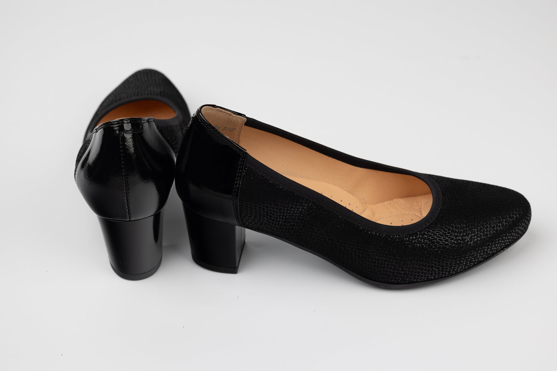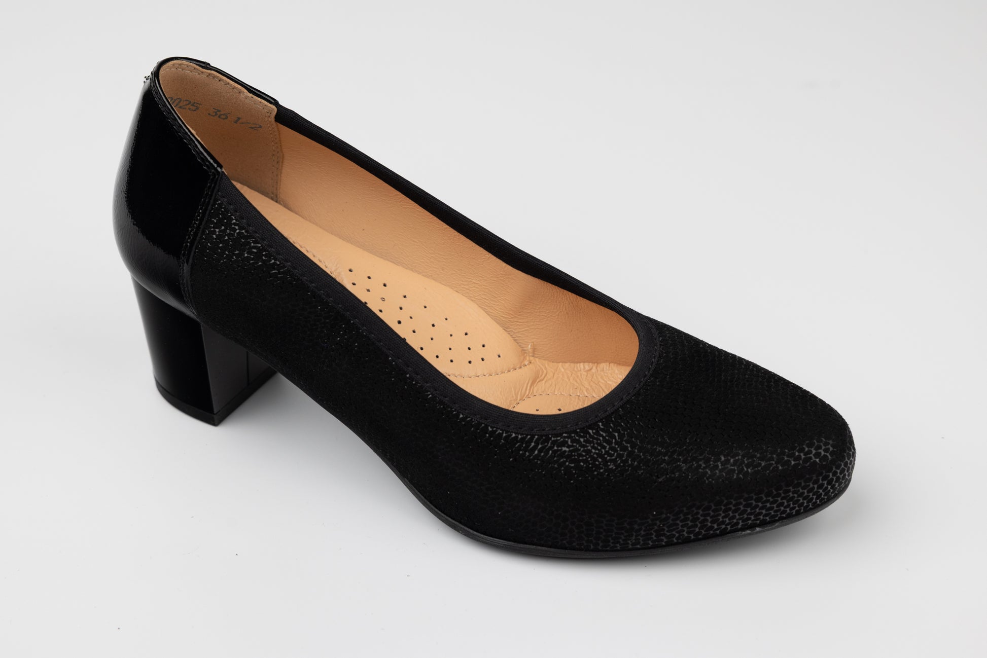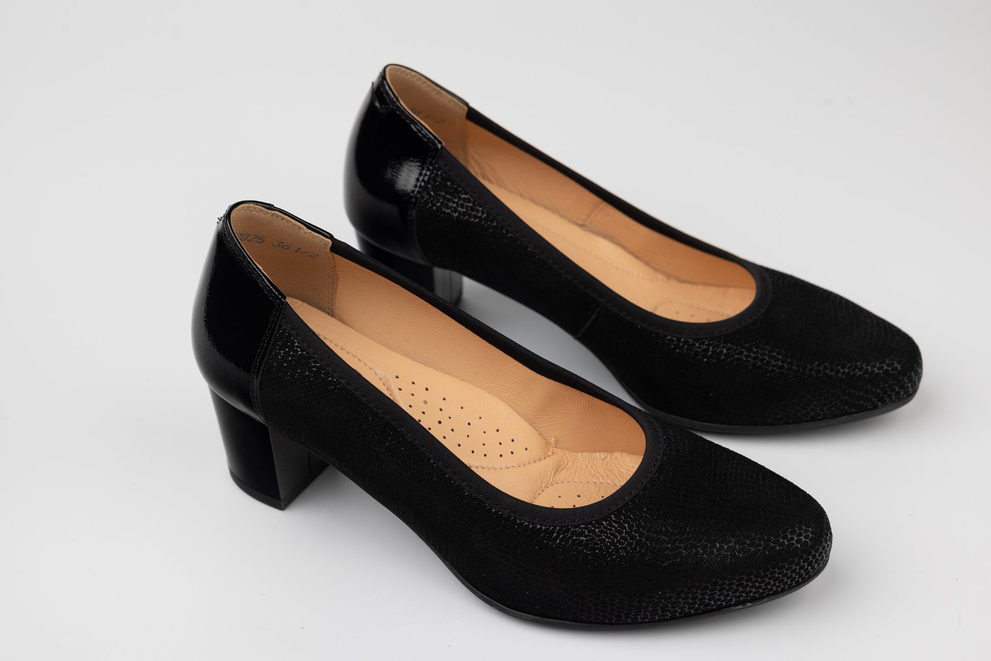 Pantofi PULSO de dama din piele naturala întoarsă cu toc patrat de 5 cm inaltime . Pielea este foarte moale si ofera maximum de confort la purtare indelungata, talpa este usoara, flexibila iar pe interior detine un brant cu memory, având un calapod lat XXL special pentru picioare late sau cu mont. Greutatea unui singur picior este de 250 grame.Marimi de la 36 pana la 44 inclusiv jumătăți de măsură.