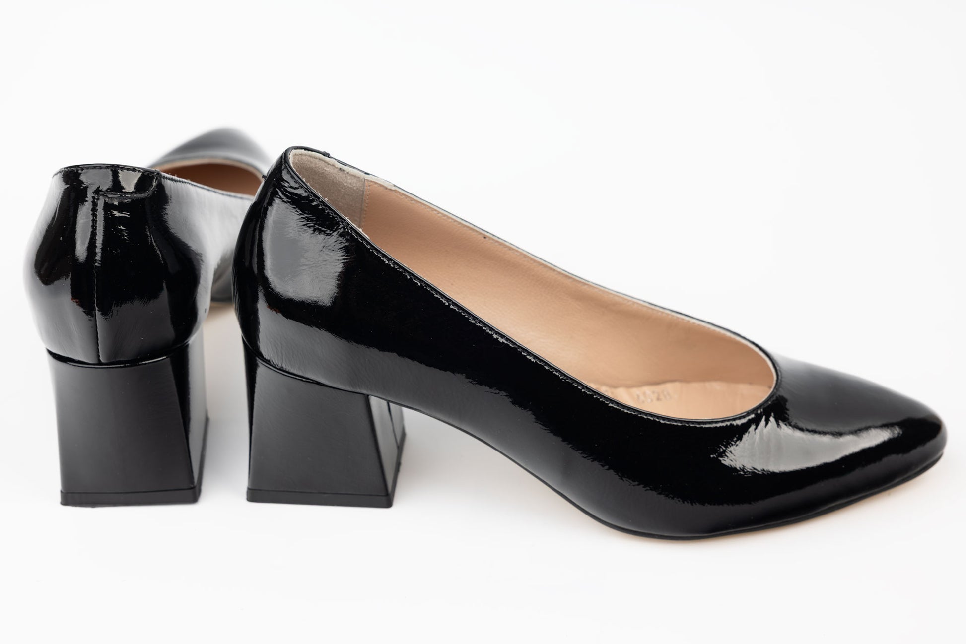 Pantofi LSD de dama din piele naturala cu toc patrat de 6 cm inaltime. Pielea este foarte moale si ofera maximum de confort la purtare indelungata, talpa este usoara, iar pe interior deține un branț din piele, având un calapod lat XL special pentru picioare late sau cu mont. Greutatea unui singur picior este de 250 grame.