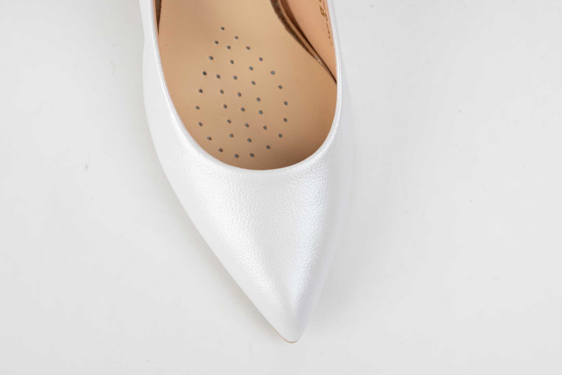 Pantofi mireasa decupați piele naturală PERLA 3314 Alb sidef
