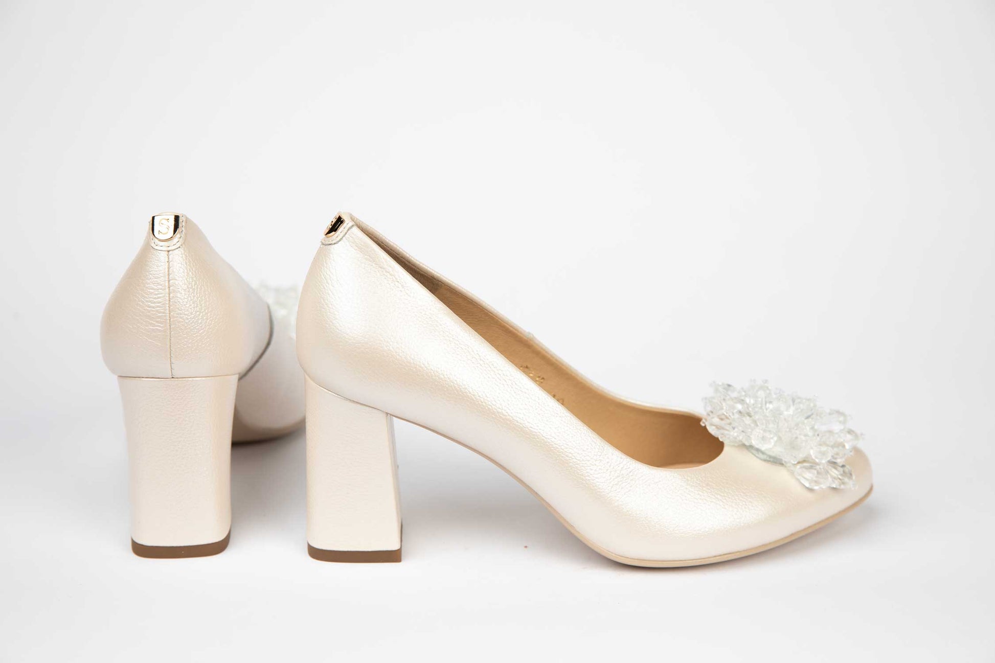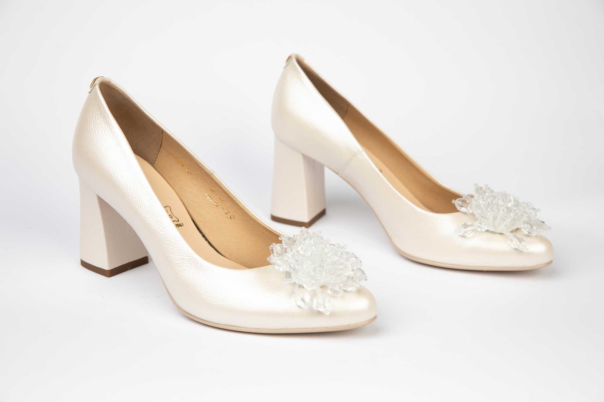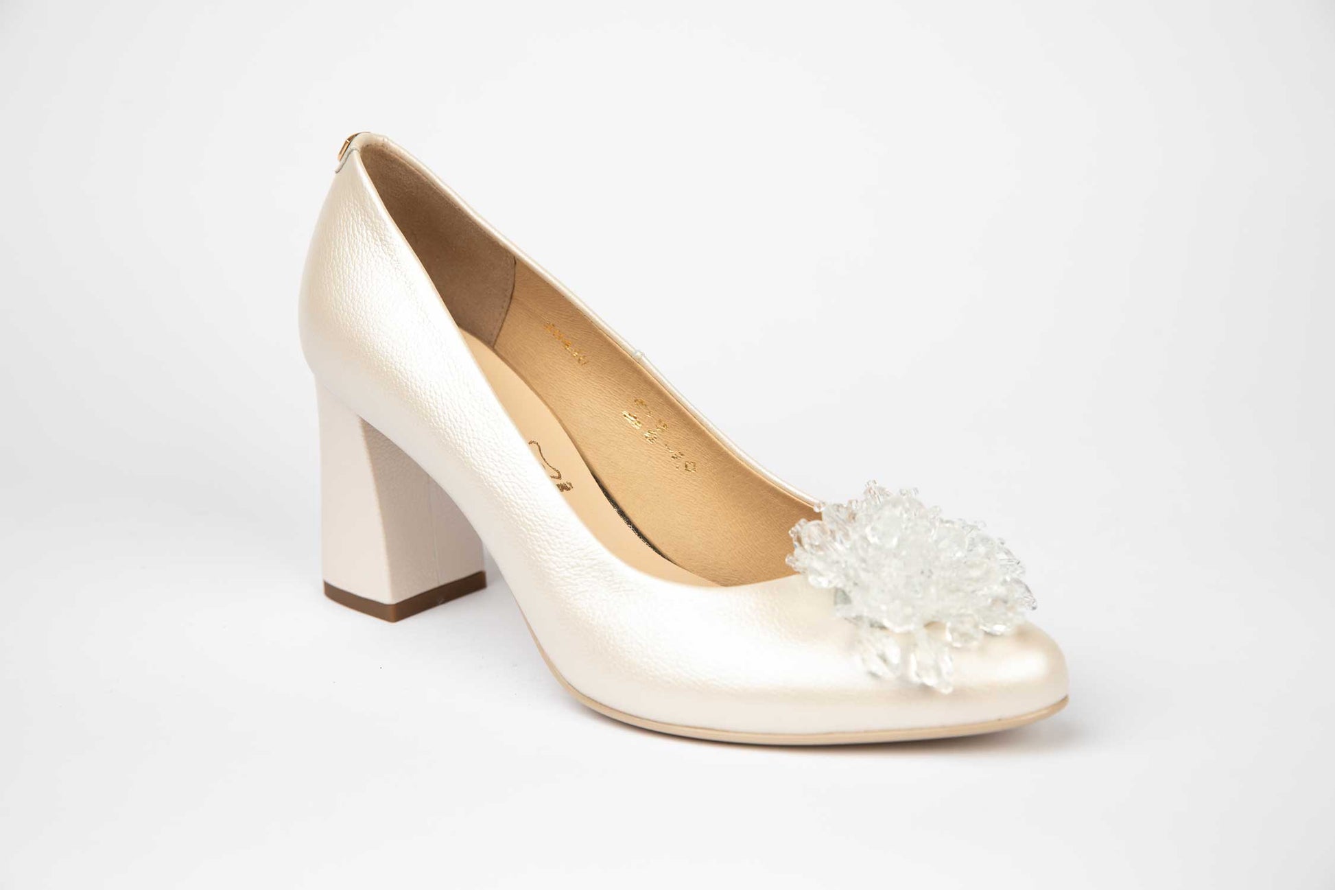 Pantofi mireasa decupați piele naturală PERLA 3314 Alb sidef