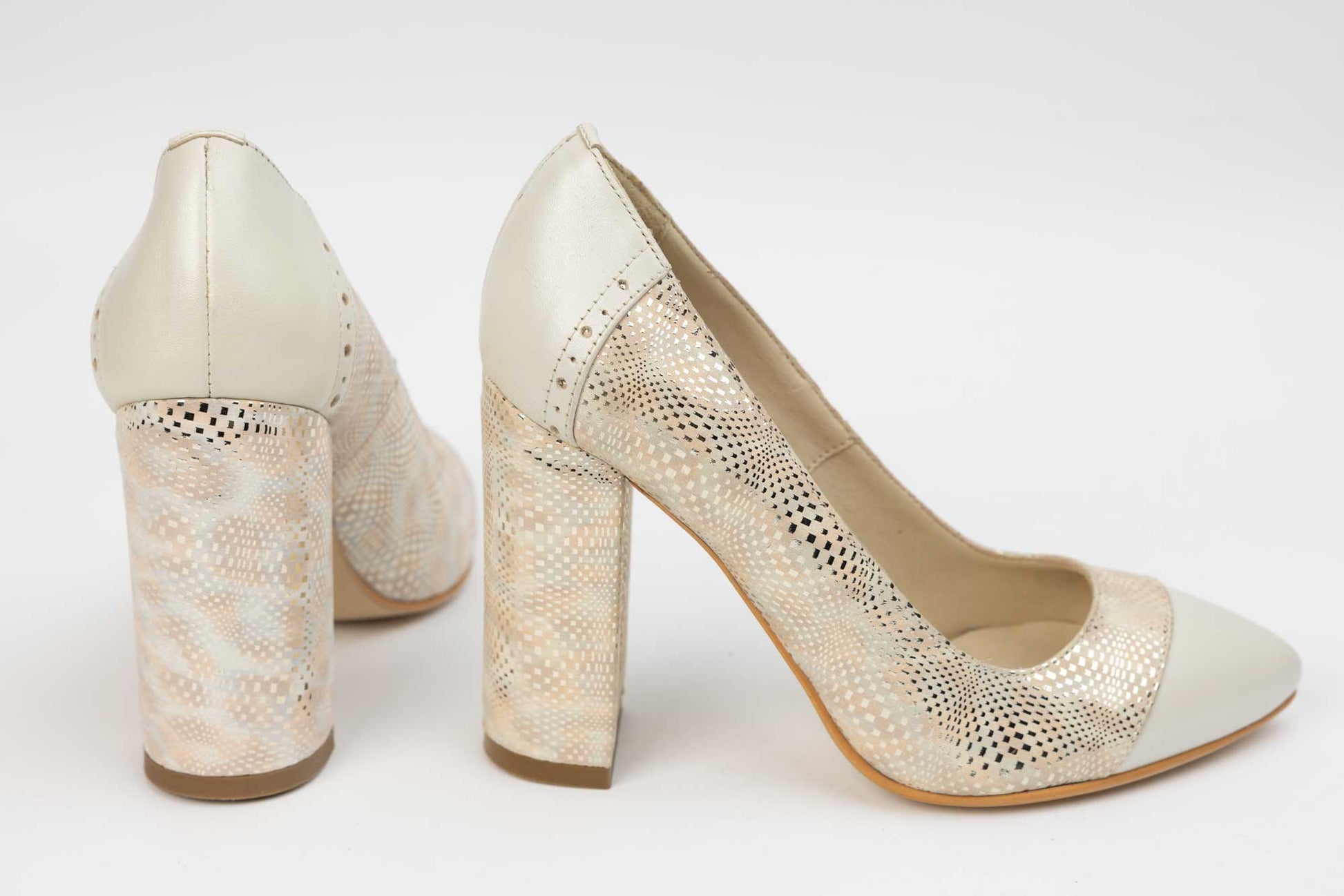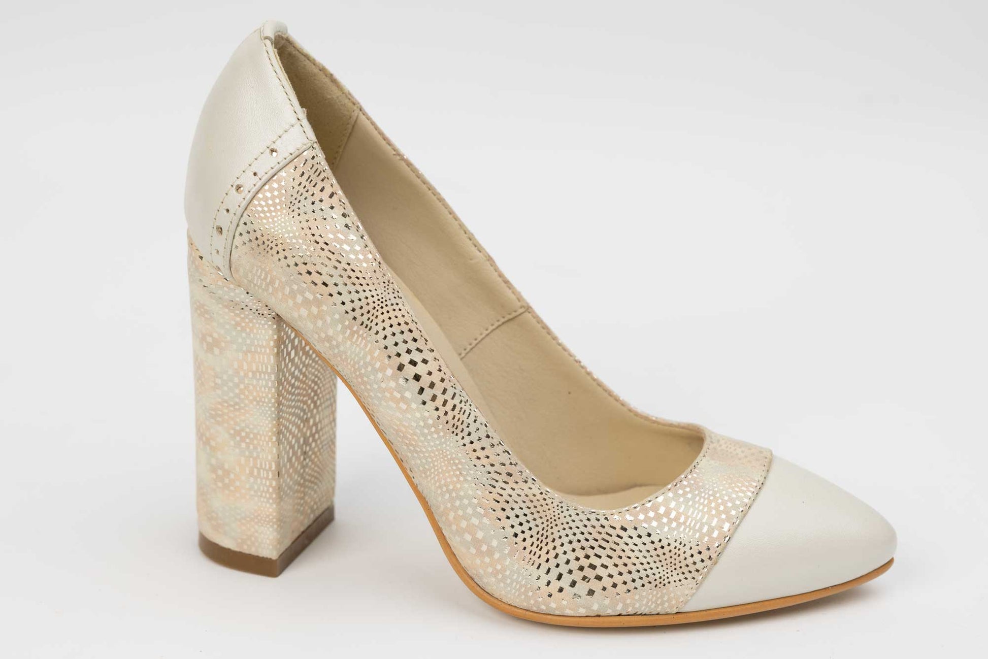 Pantofi dama eleganti piele naturala SORTEC 2696 Bej Argintiu