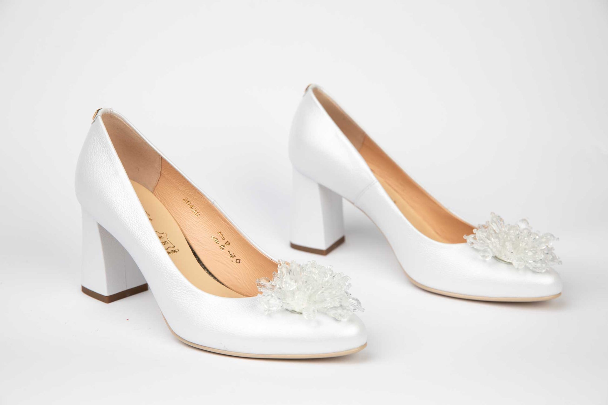 Pantofi mireasa piele naturala SALA 20430 alb accesoriu