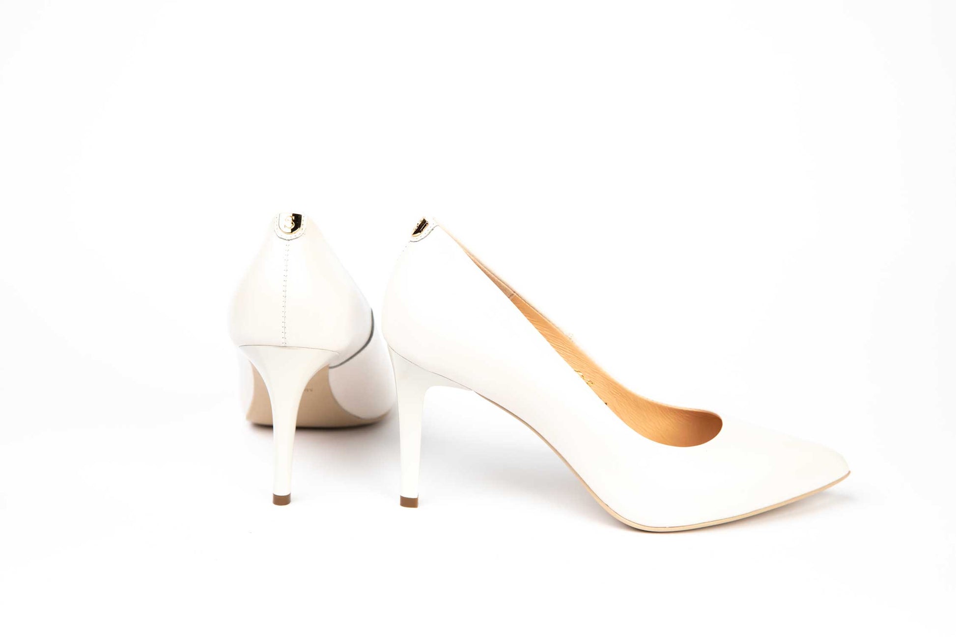 Pantofi mireasa decupați piele naturală PERLA 3314 Alb sidef
