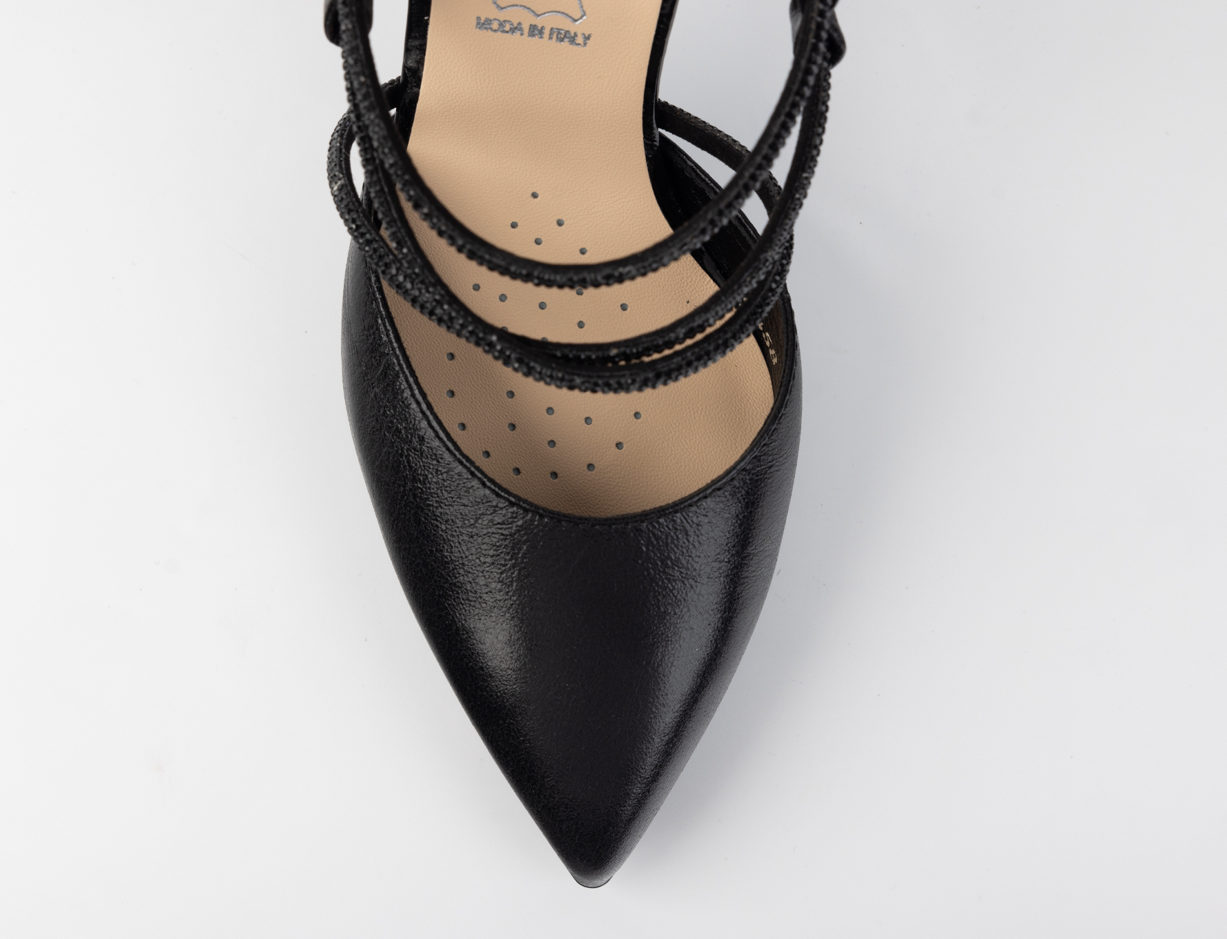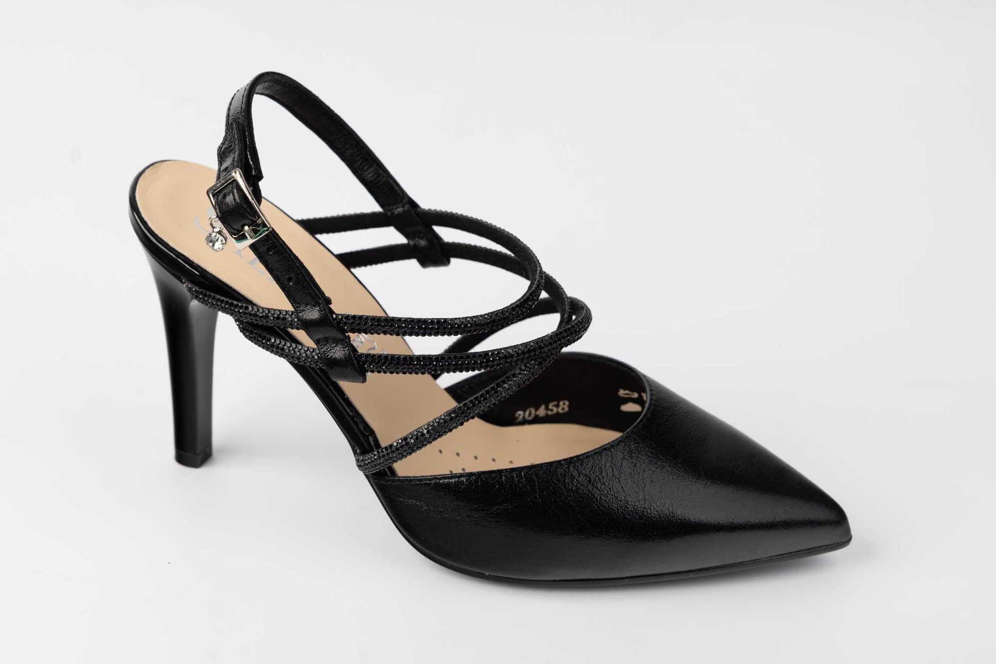 Linia de creatie SALA imbina corect designul elegant cu un confort potrivit datorita calapodului, inclinatiei si o piele naturala de inalta calitate folosita pentru modelele simple intr-o multitudine de culori,texturi si variante la care se adauga tocul stiletto de 9 cm testat sa potriveasca oricarei femei. In partea din spate deasupra calcaiului are o bareta din piele pentru sustinere. Marimi de la 35 la 41.