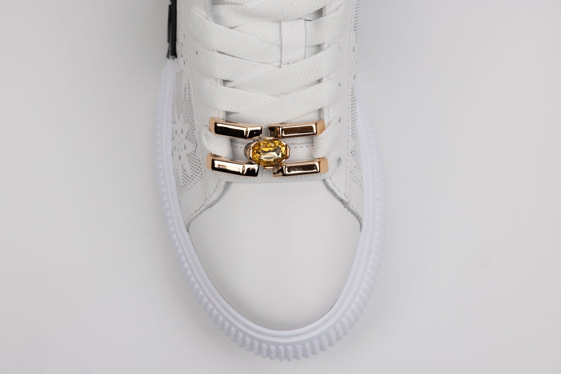 Pantofi mireasa decupați piele naturală PERLA 3314 Alb sidef