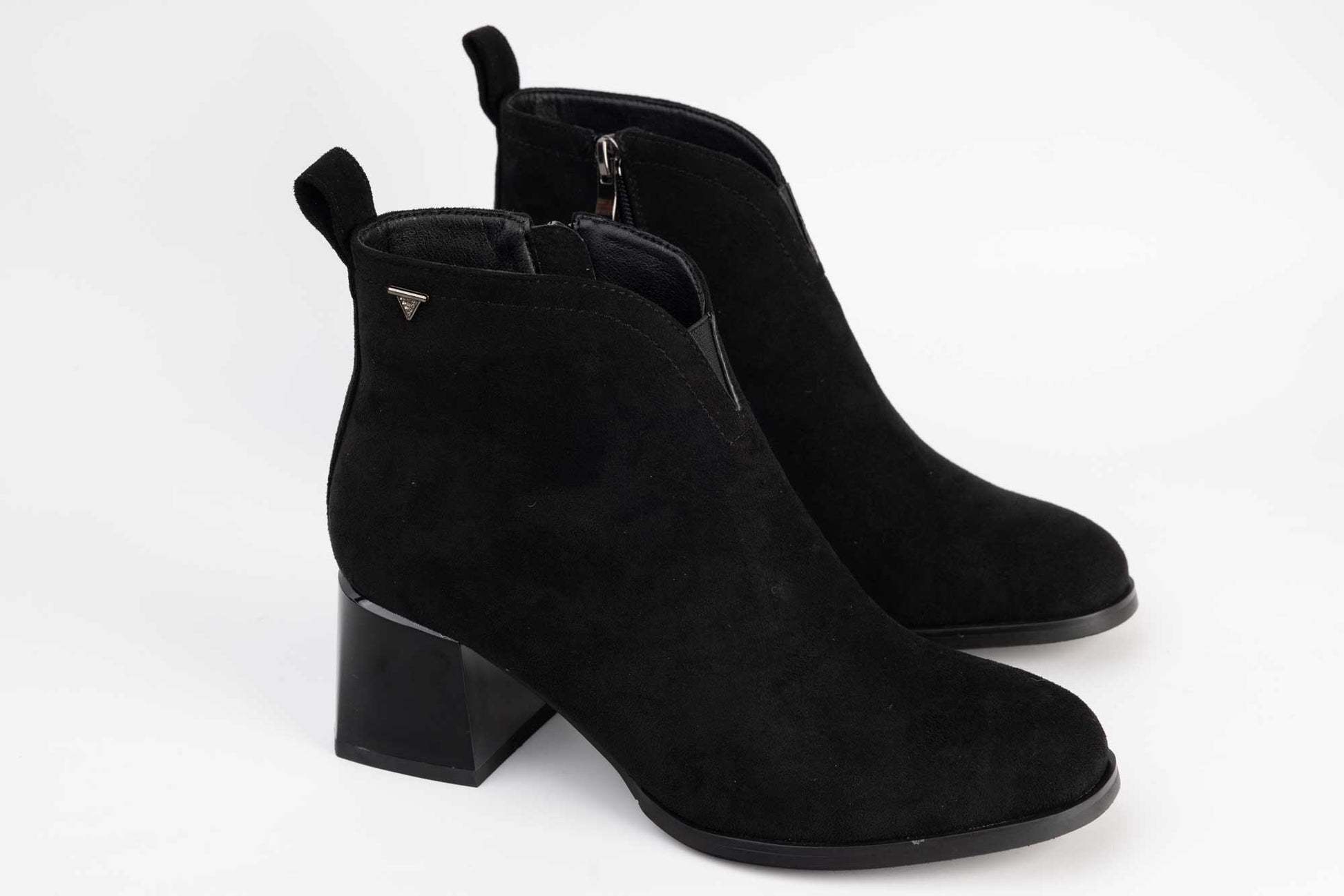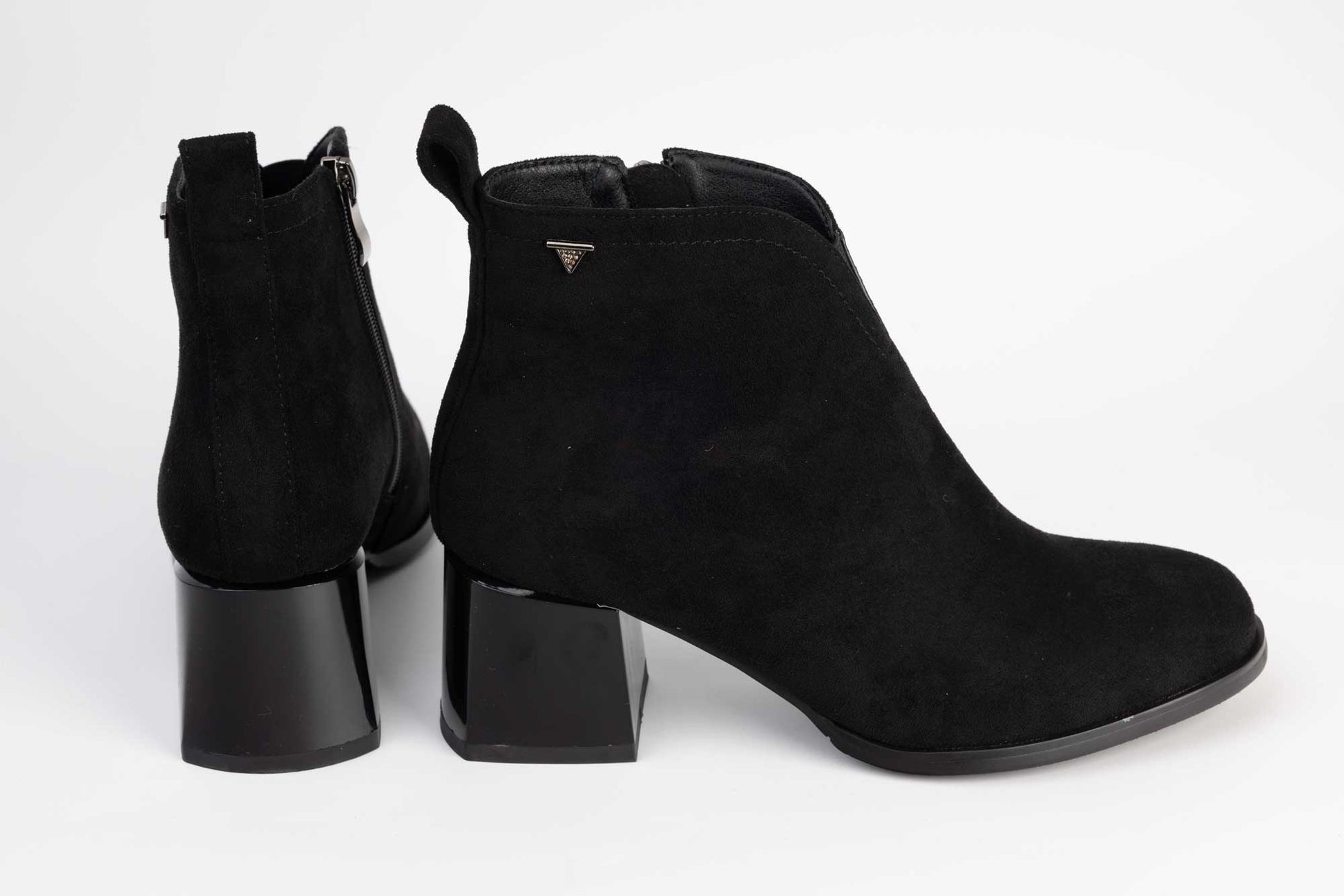 Ghete MYU de dama din piele ecologică , cu toc patrat accesorizat ,de 6 cm avand fermoar lateral si captusite cu blanita subtire la interior. - Greutatea unei singure ghetute este de 310 grame.