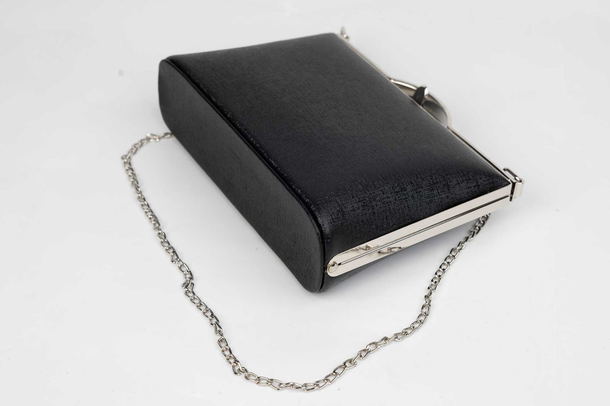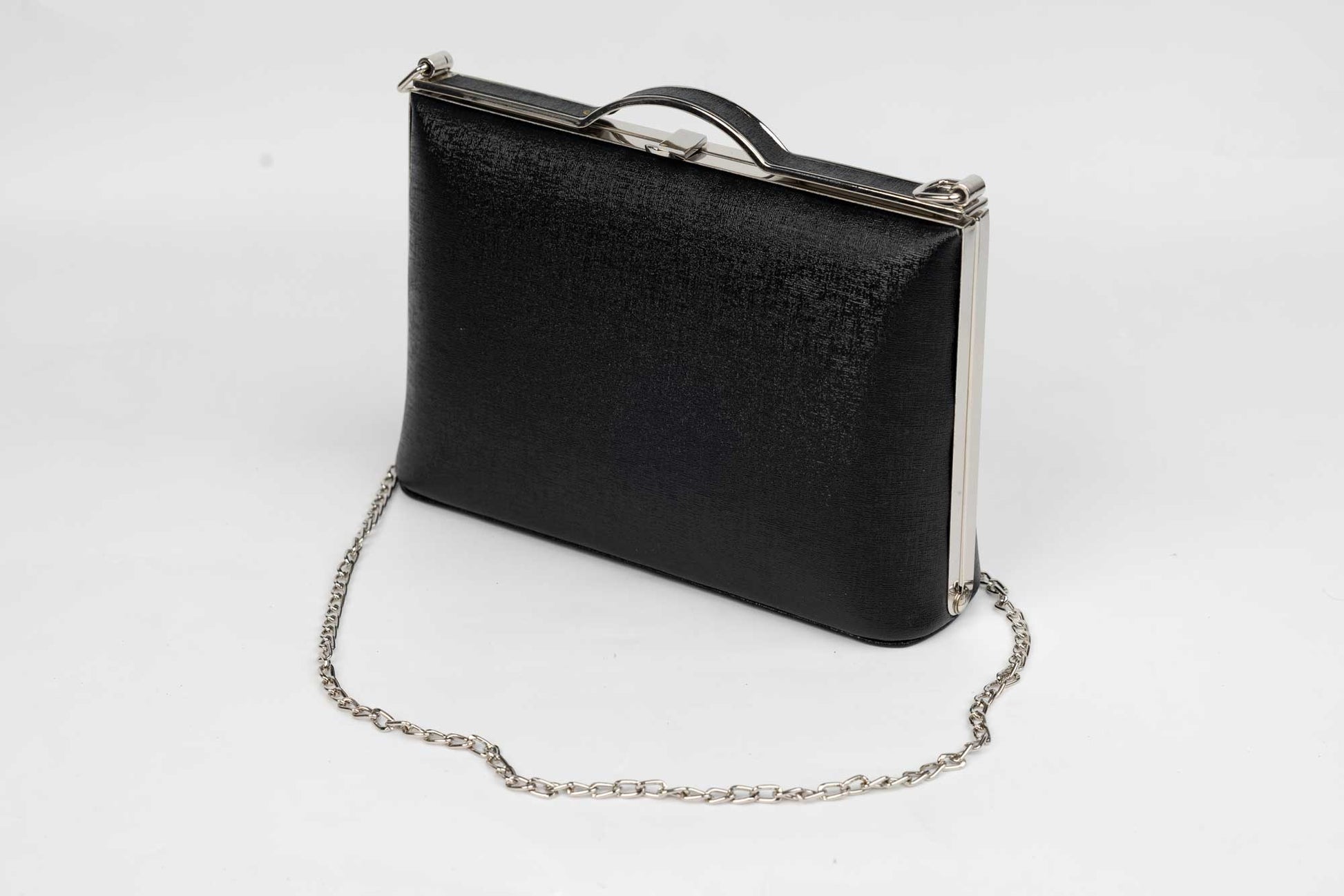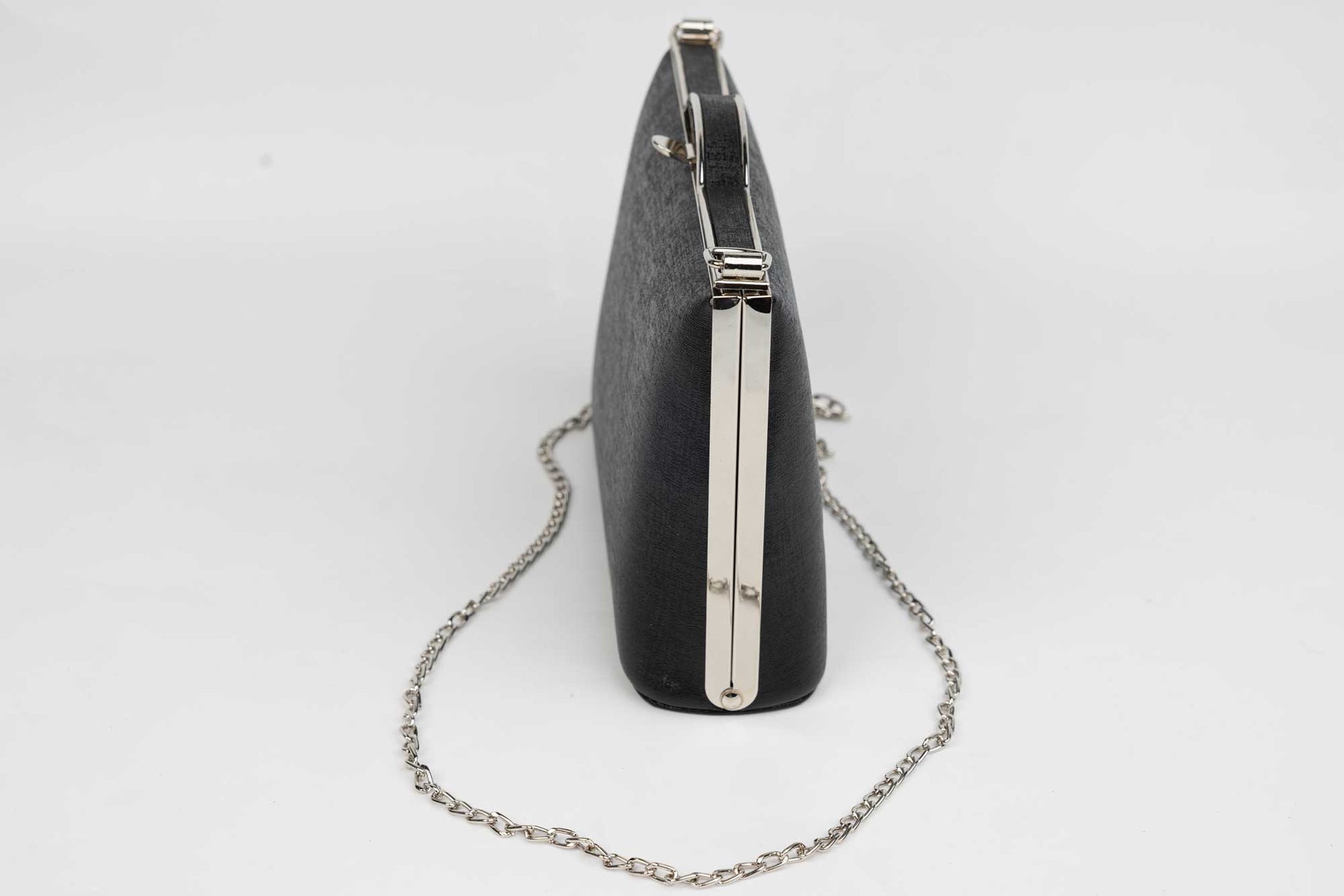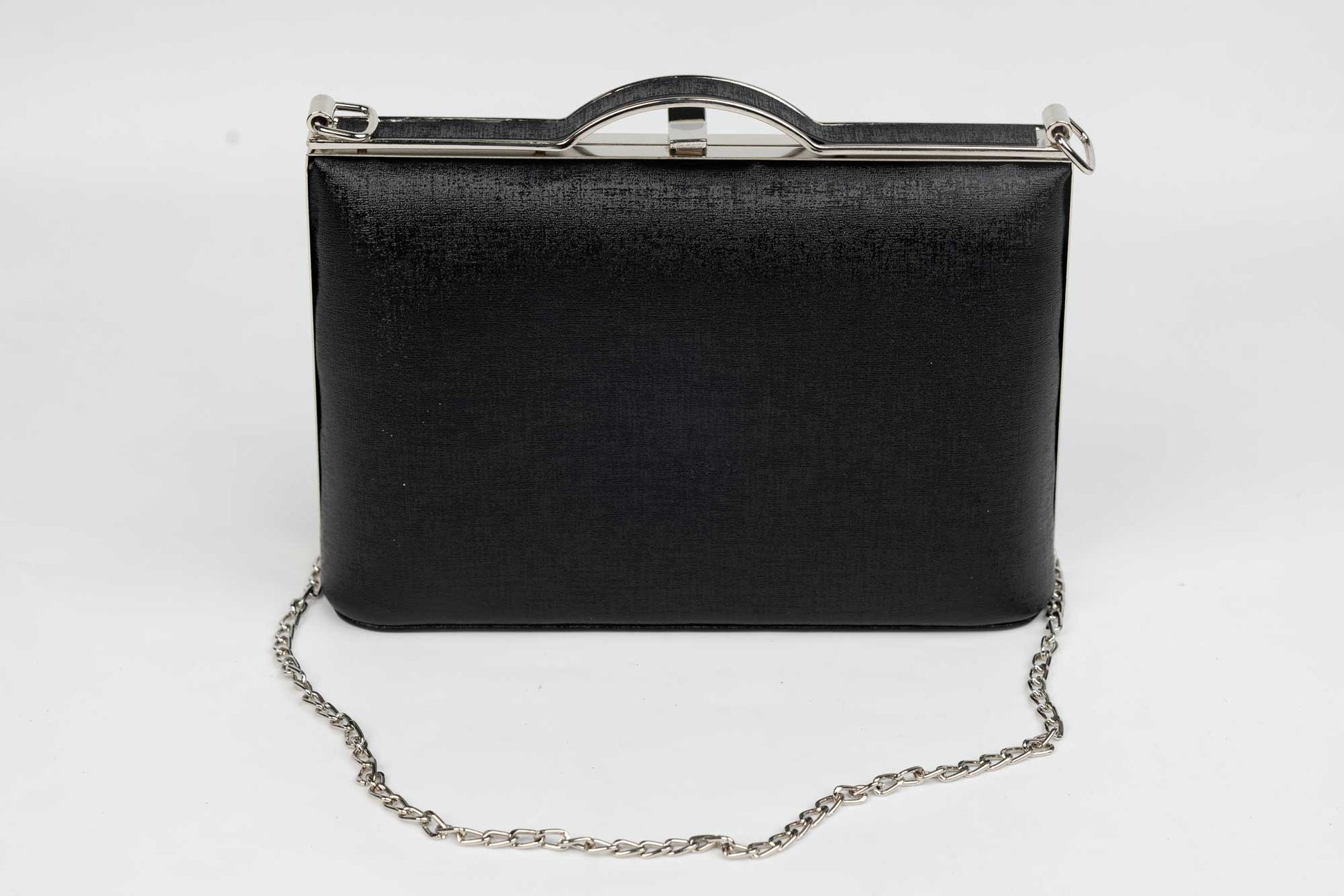 Un plic de dama de marime 25-17 cm cu efecte sclipitoare negre cu rama argintie avand in dotare un maner dar si o curelusa lant metalice detasabile. Interiorul este bicameral (2 compartimente) si este potrivit si incapator pentru un telefon sau cosmetice. Inchiderea se face cu o clapeta metalica in partea de sus a plicului.