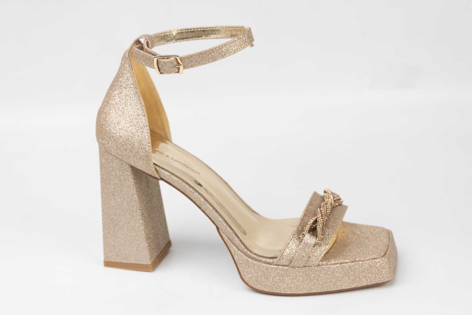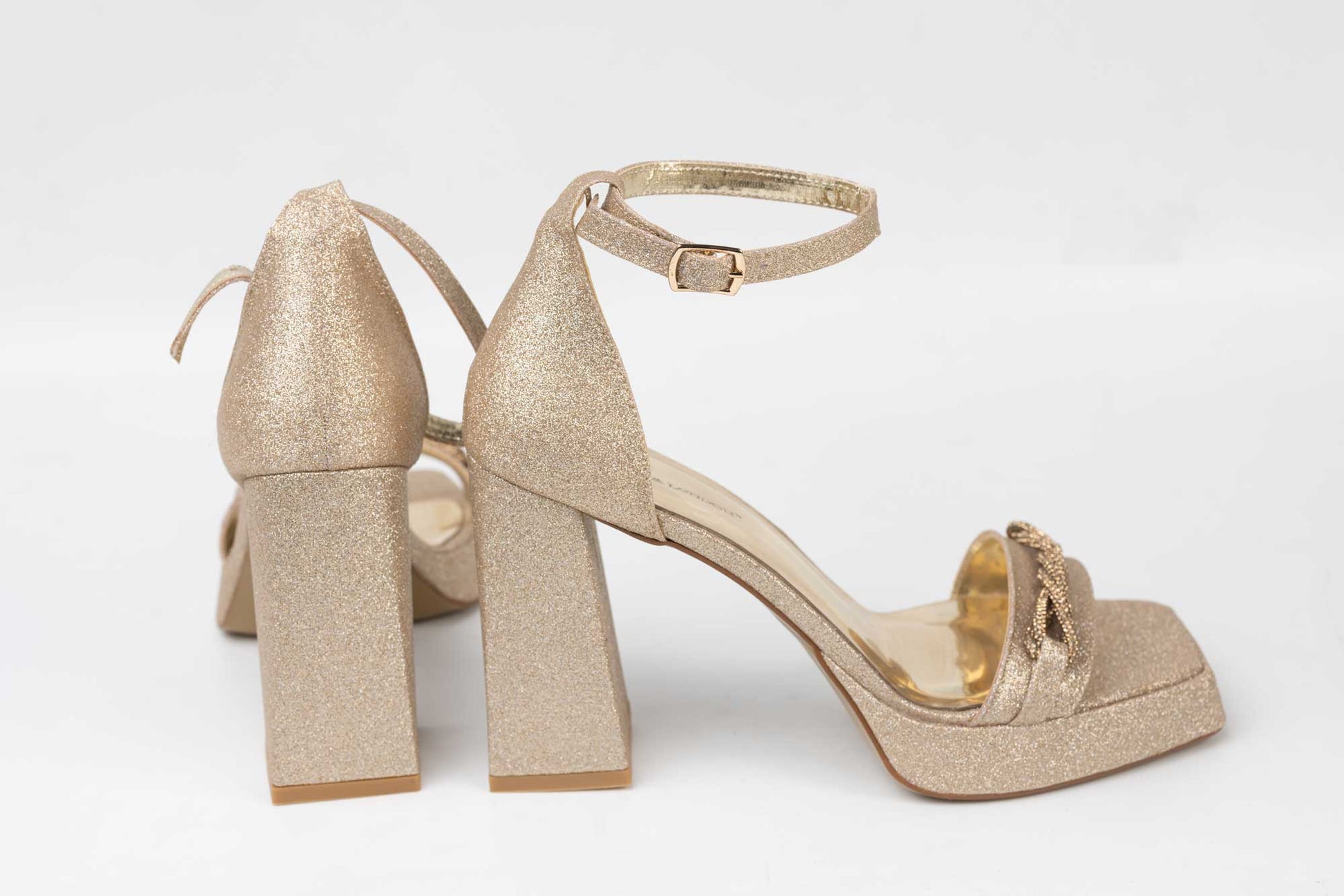 Sandale LONDON din piele eco de calitate premium cu prindere intr-o baretuta subtire cu o catarama. Tocul gros evazat este de 10 cm inaltime iar la partea din fata are o bareta de 2 cm latime peste degete cu un snur impletit cu cristale care face ca acest model sa fie unul deosebit de comod la purtare. Platforma are 2 cm inaltime. Greutatea unui singur picior este de 320 grame.