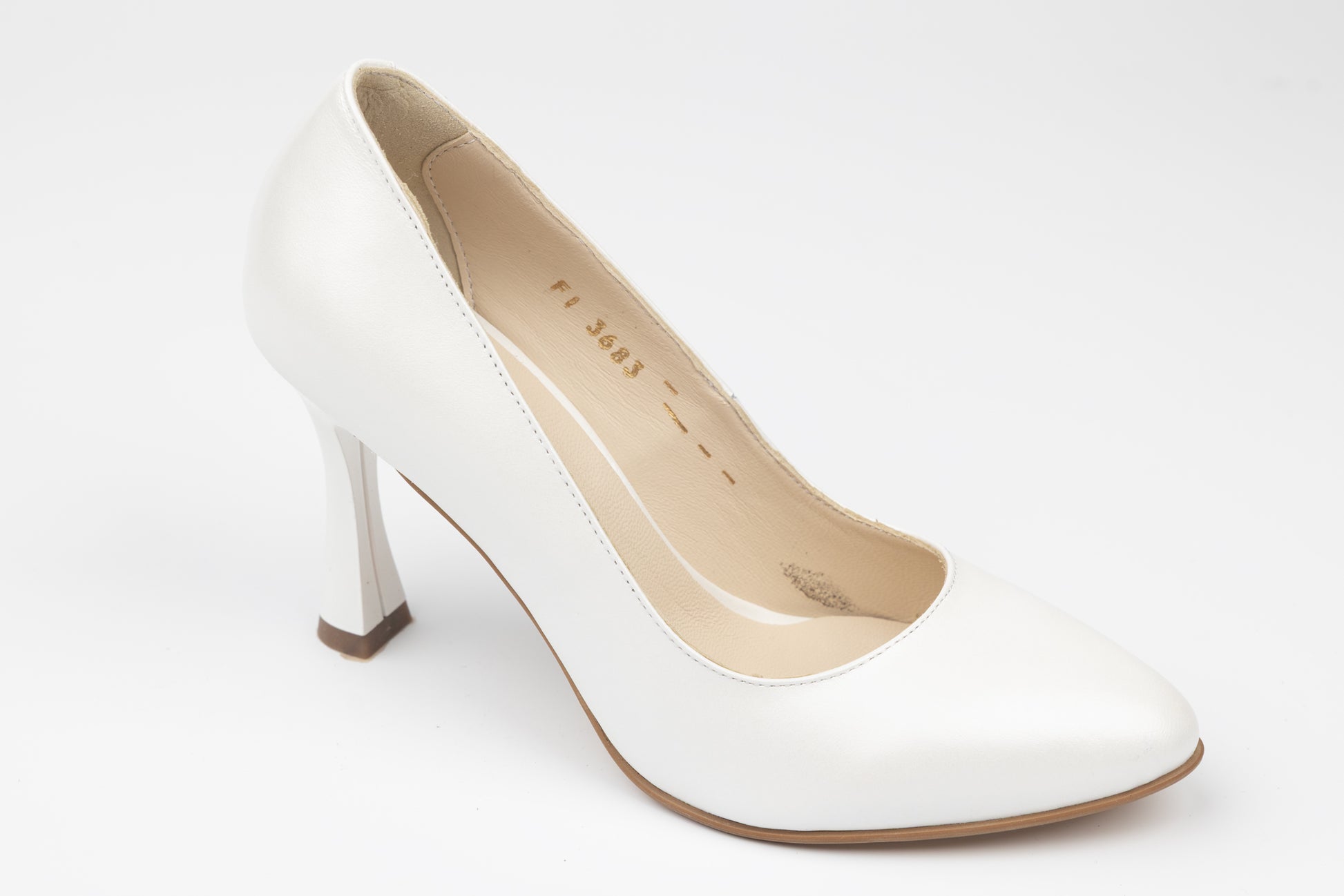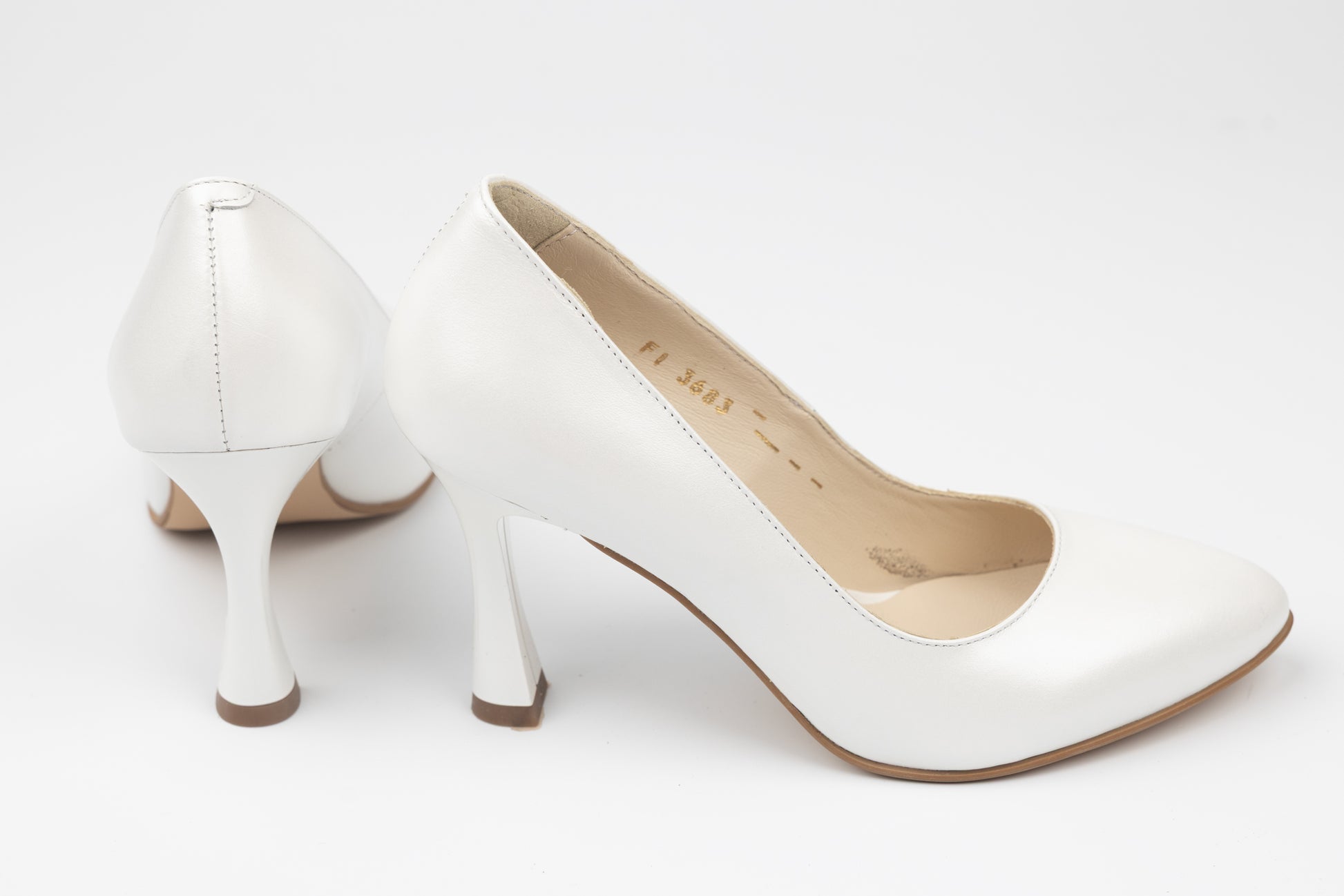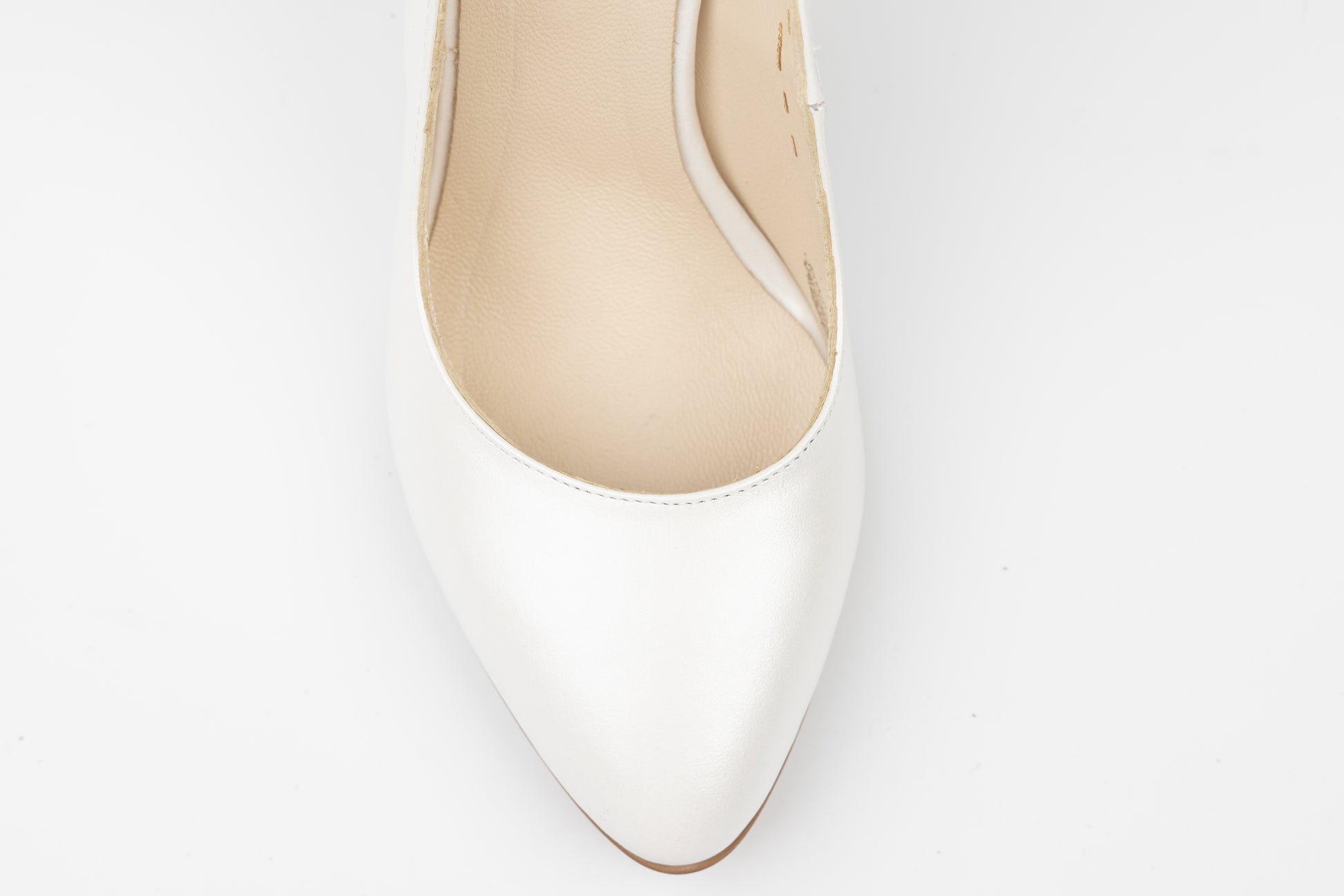 Pantofi mireasa decupați piele naturală PERLA 3314 Alb sidef
