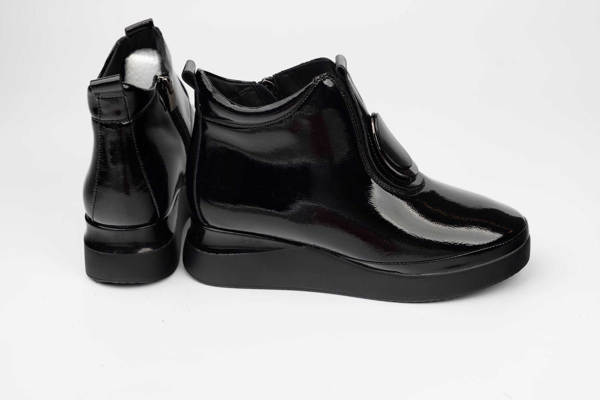 Ghete BETINA de dama din piele naturala lăcuită moale avand intr-o parte un fermoar. Talpa ortopedica este marele secret fiindca este foarte usoara, avand la interior un brant cu memory foarte comod la purtare. Greutatea unui singur picior este de 349 grame. Marimi de la 36 la 41.