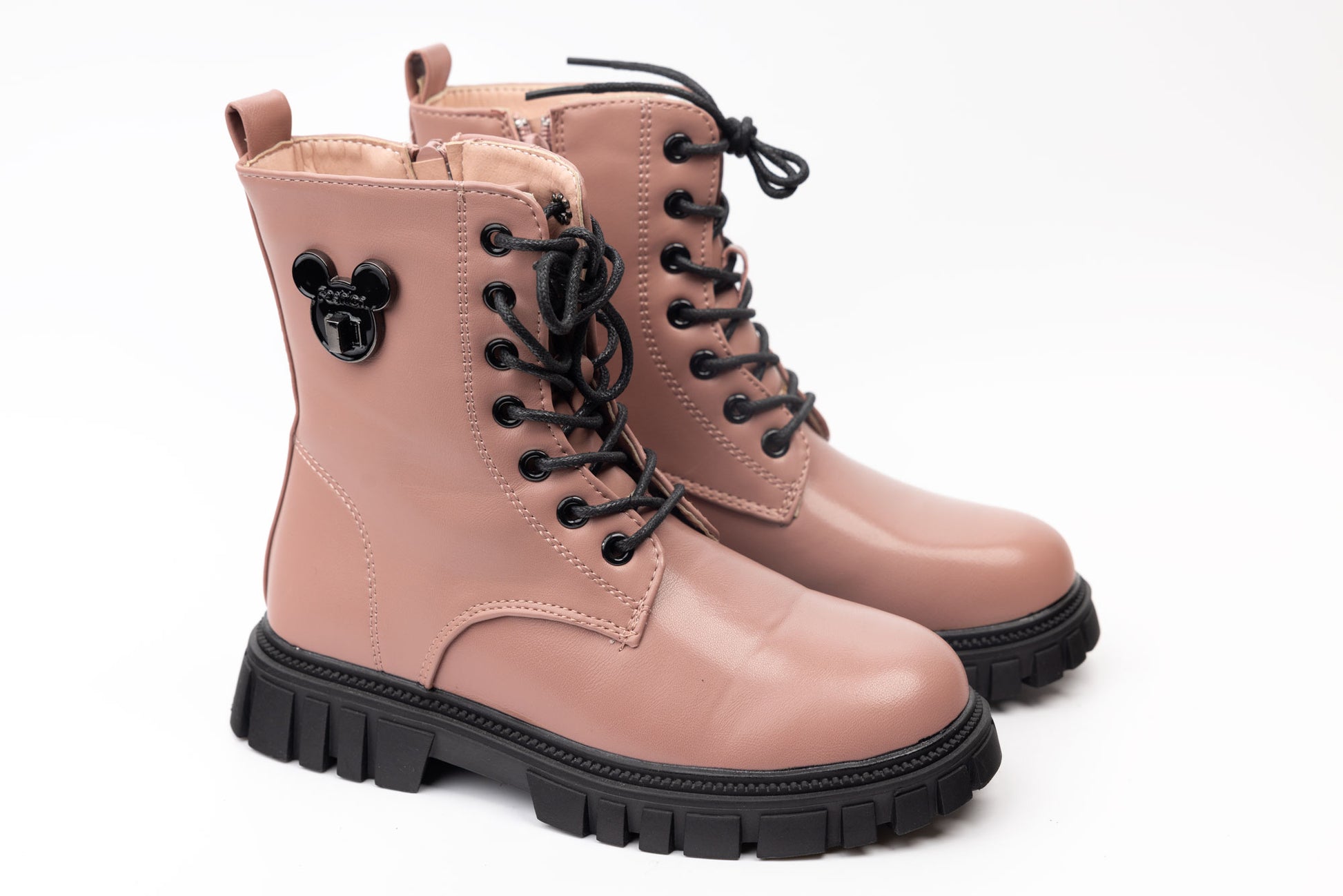 Ghete copii pentru fete LEO din piele ecologică de calitate cu talpă groasă de 2 cm înălțime accesorizat iar la interior are o blăniță groasă și pufoasă de 6 mm recomandat pentru sezonul rece. Talpă este una rezistentă și elastică , nu permite să intre apa la interior având pe ea striații antiderapante.