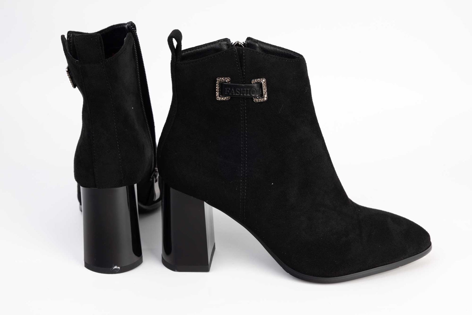 Ghete MYU de dama din piele ecologică , cu toc patrat de 8 cm avand fermoar lateral si captusite cu blanita subtire la interior. - Greutatea unei singure ghetute este de 310 grame.