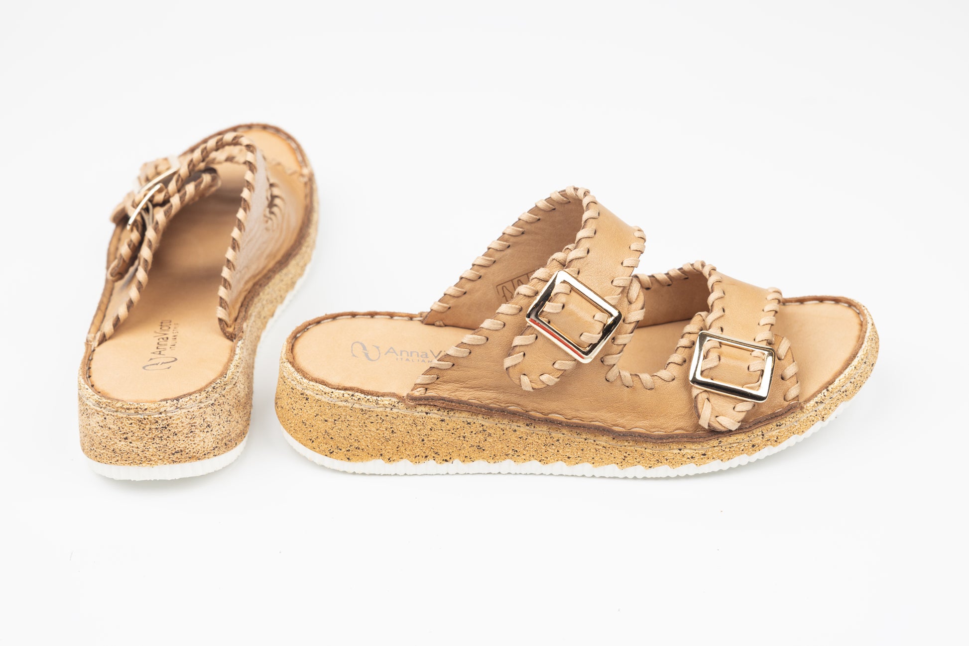 Slapi dama piele naturală ANNA VIOTI 25586 Bej