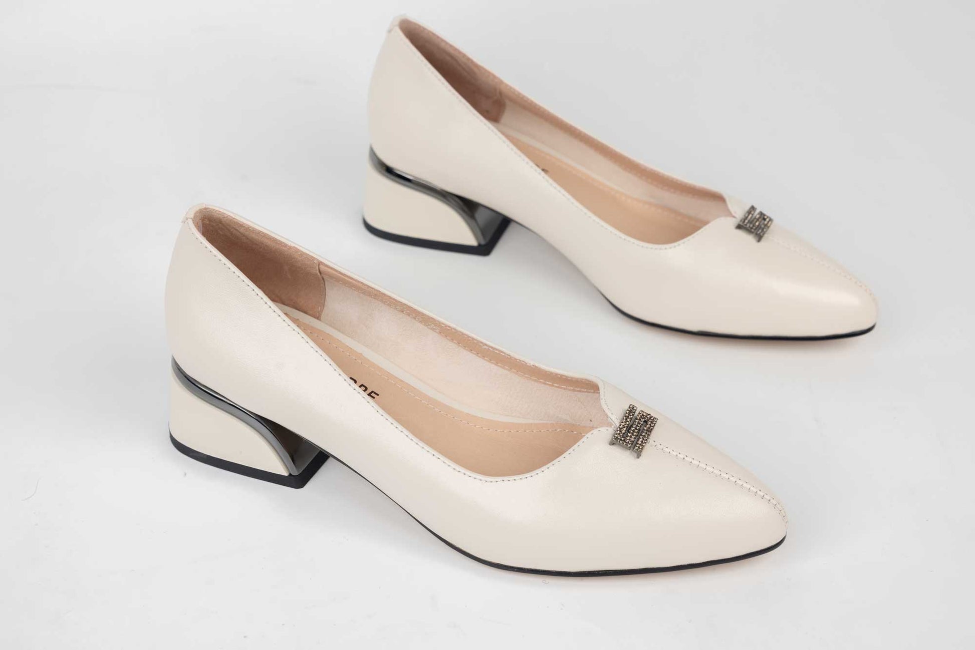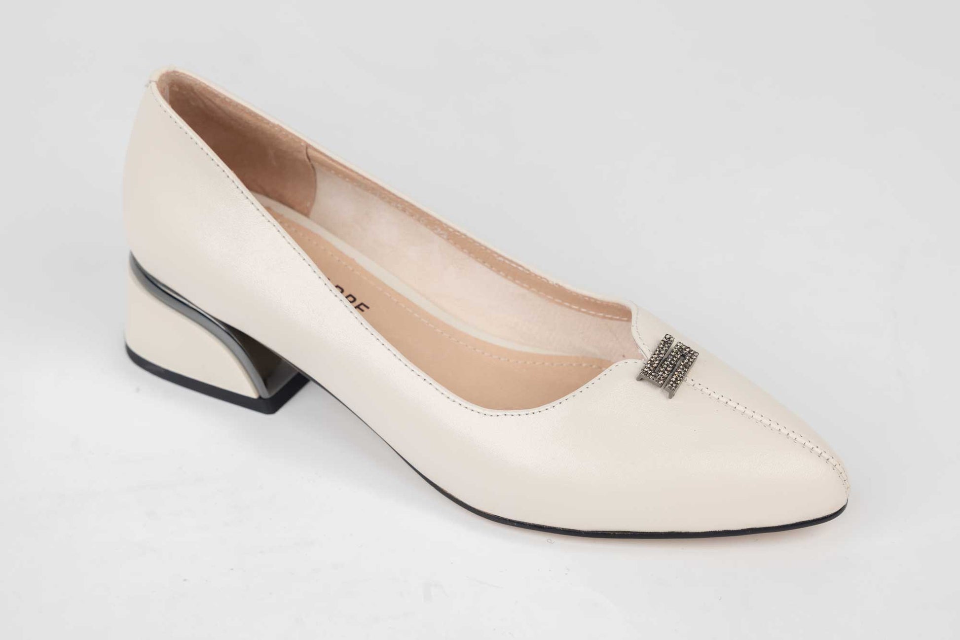 Pantofi BETINA de dama din piele naturala cu toc patrat de 3 cm inaltime si e accesorizat pe varf . Pielea este foarte moale si ofera maximum de confort la purtare indelungata, Talpa este usoara, flexibila iar pe interior detine un brant cu memory. Greutatea unui singur picior este de 220 grame.