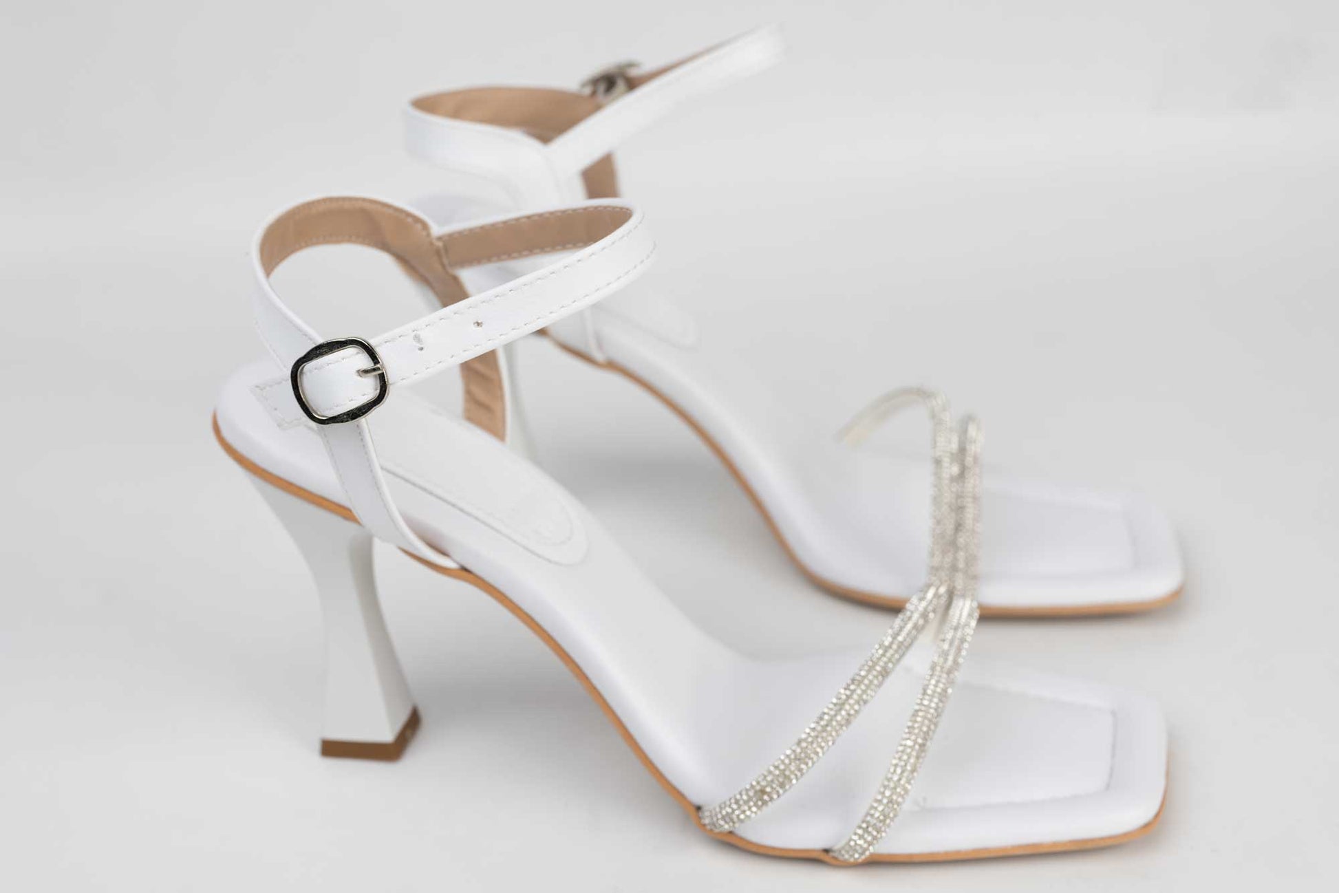 Sandale LONDON din piele eco de calitate premium cu prindere intr-o baretuta subtire cu o catarama. Tocul subtire evazat este de 9 cm inaltime iar la partea din fata are 2 barete cu cristale peste degete care face ca acest model sa fie unul deosebit de comod la purtare. Greutatea unui singur picior este de 250 grame.