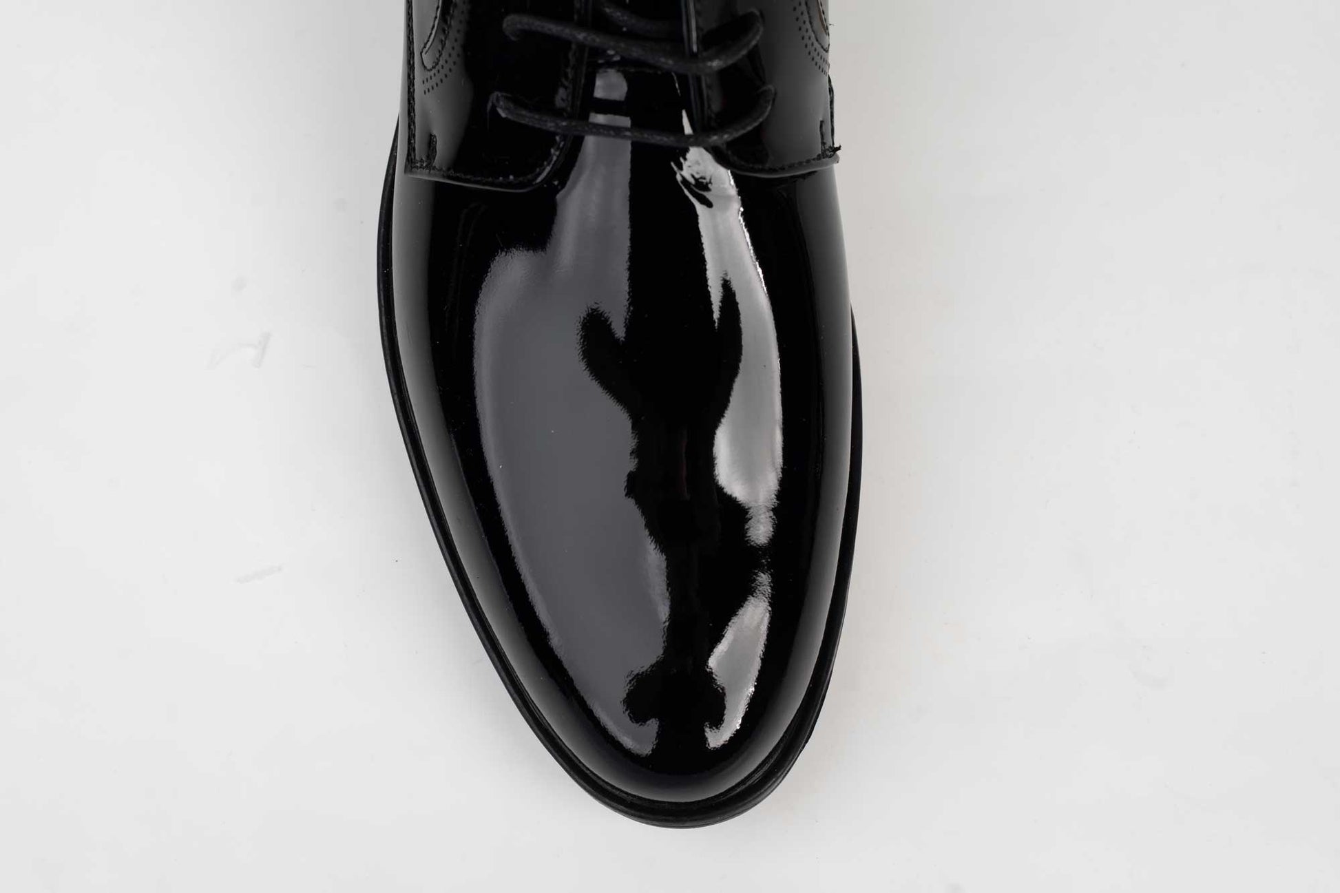 Pantofi ELDEMAS de barbati din piele naturala lacuita foarte fina si moale la atingere cu siret si o talpa foarte moale si elastica,dotati cu pernita de protectie in zona calcaiului. La interior piele naturala si un brant cu memory pentru un confort maxim. Greutatea unui singur picior este de 250 grame. Marimi de la 39-44.