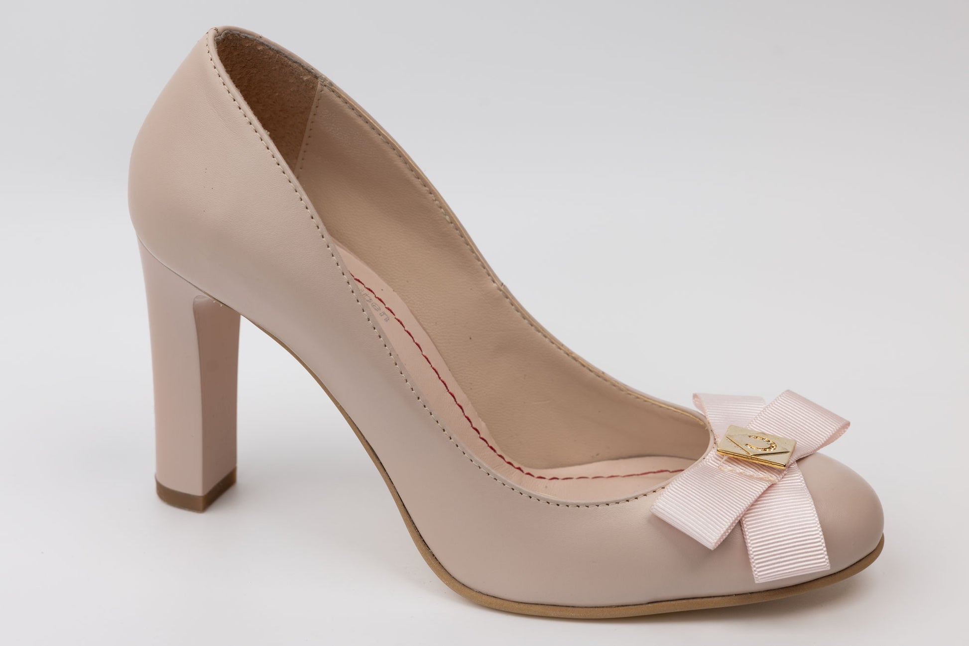 Pantofi GIULIO de dama simplu din piele naturala crem box cu toc mediu gros de 7 cm inaltime cu varful rotund, iar pe vârf are montata o fundiță din textil ornamentala. Greutatea unui singur picior este de 295 grame.