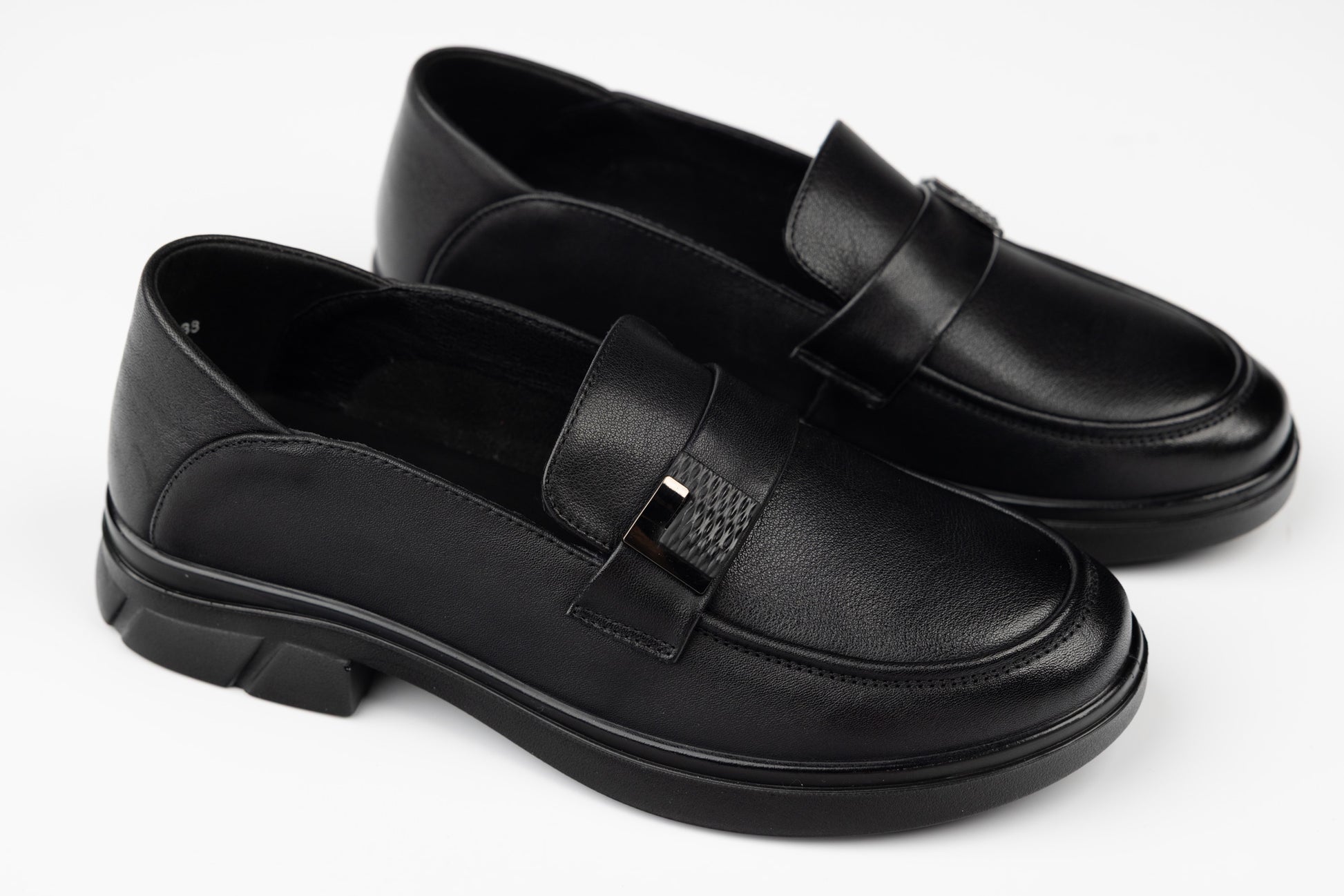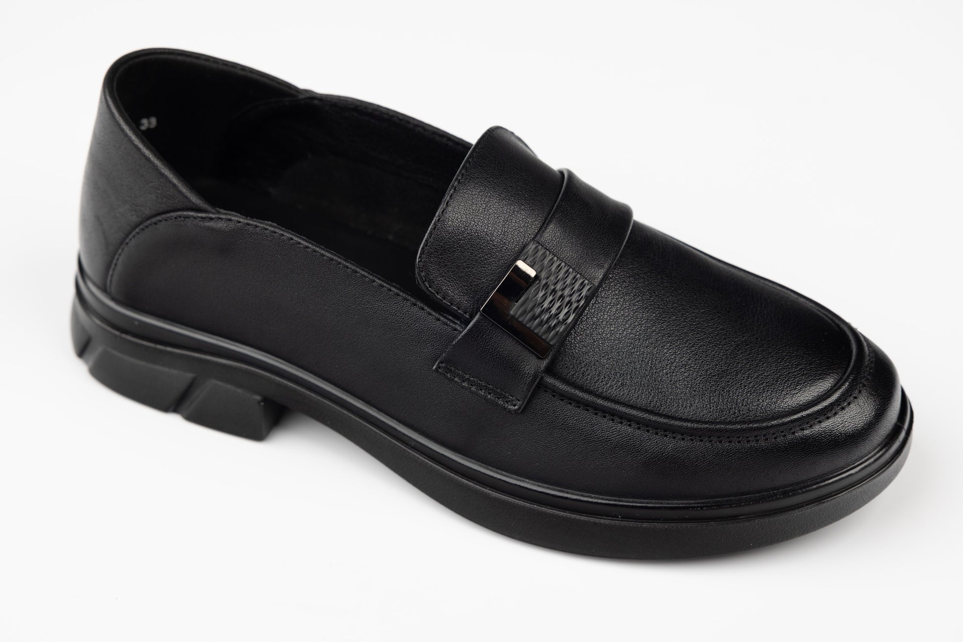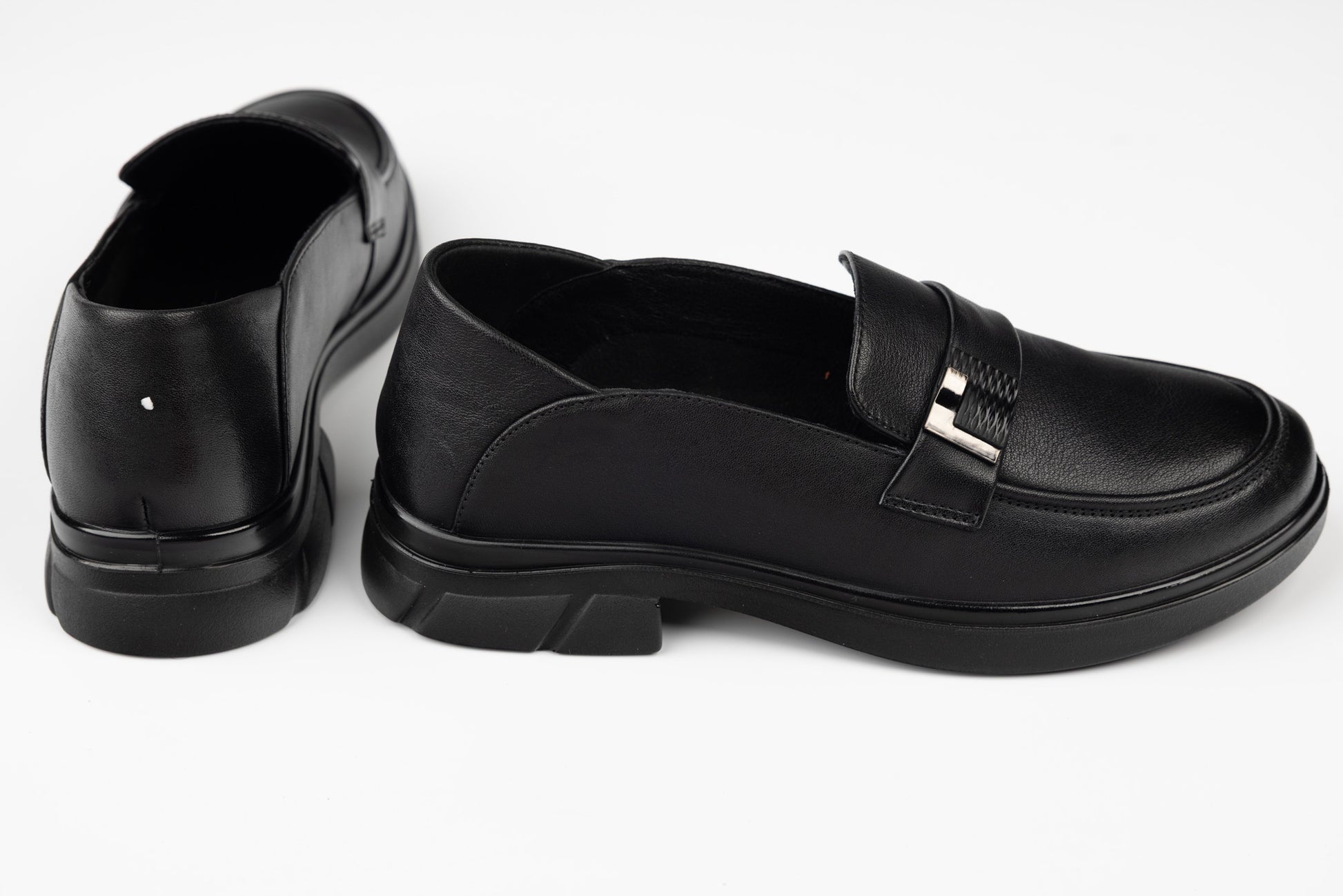 Pantofi FORMAZIONE de dama din piele naturala cu toc patrat de 2 cm inaltime simpli. Pielea este foarte moale si ofera maximum de confort la purtare indelungata, Talpa este usoara, flexibila iar pe interior detine un brant cu memory. Pe fata pantofului este montat un accesoriu metalic.
