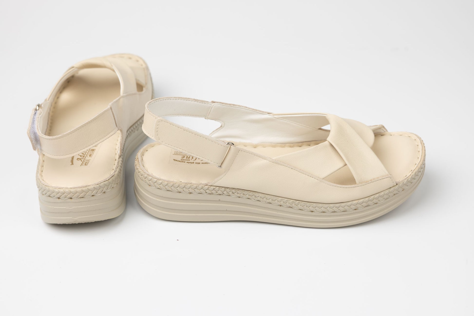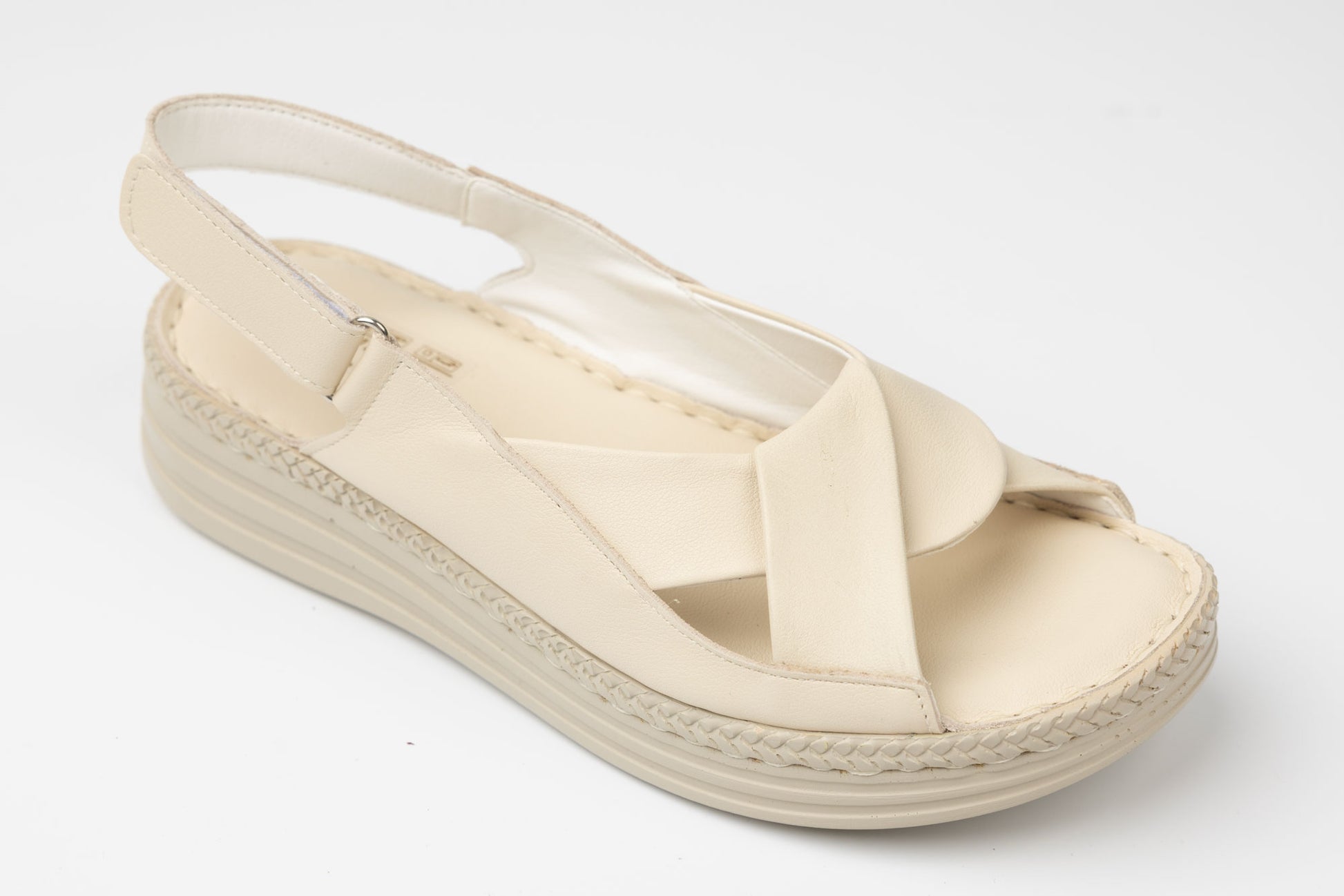 Sandale dama ADELINE din piele naturala cu talpa groasa ortopedica captusite la interior cu piele naturala avand prinderea cu o bareta in spatele piciorului. Inclinatia lina a piciorului in aceste sandale face mult mai comoda purtarea lor un timp indelungat fiind recomandate chiar si pentru picioare cu mont pentru ca le acopera in intregime. Greutatea unui singur picior este de 15050 grame. Mărimi de la 36 pana la 41.