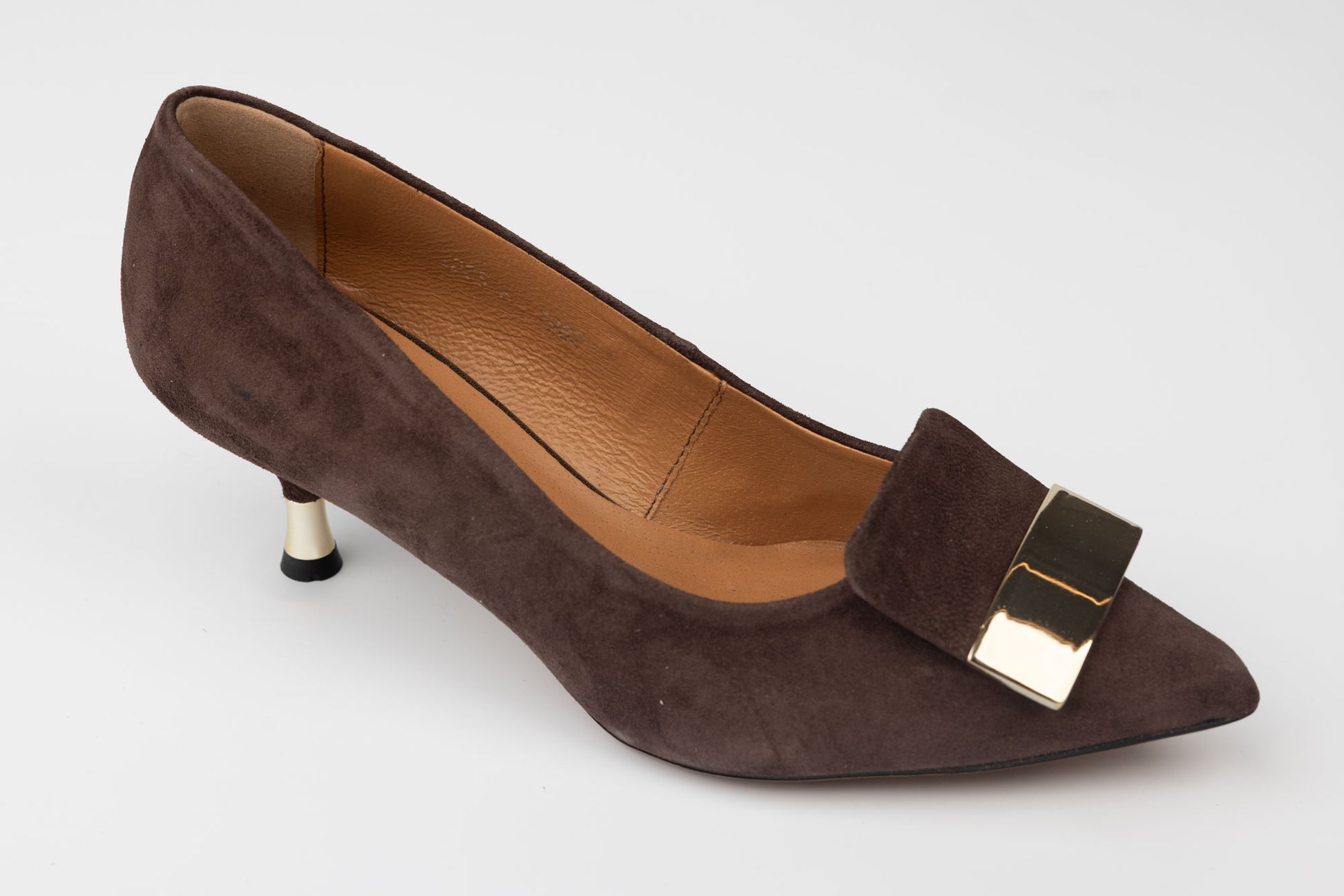 Pantofi dama KORDEL cu toc mic special cu inserție aurie,model clasic si simplu confectionat din piele naturala întoarsă de vitel moale la atingere, ofera un confort sporit datorita calapodului XL testat. Usor de purtat , acest model are inaltimea tocului de 3,5 cm. Greutatea unui singur pantof e de 210 grame.