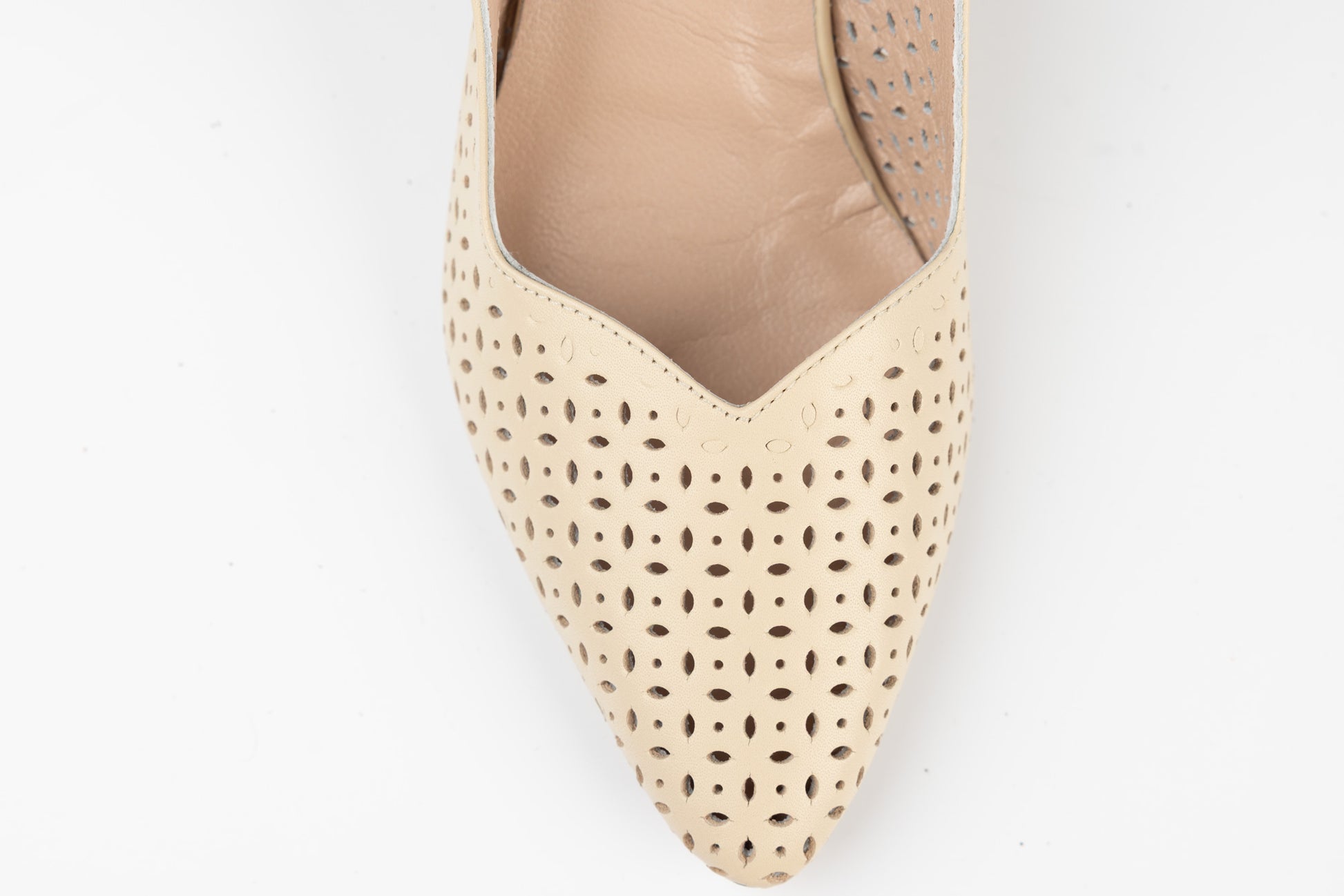 Pantofi mireasa decupați piele naturală PERLA 3314 Alb sidef