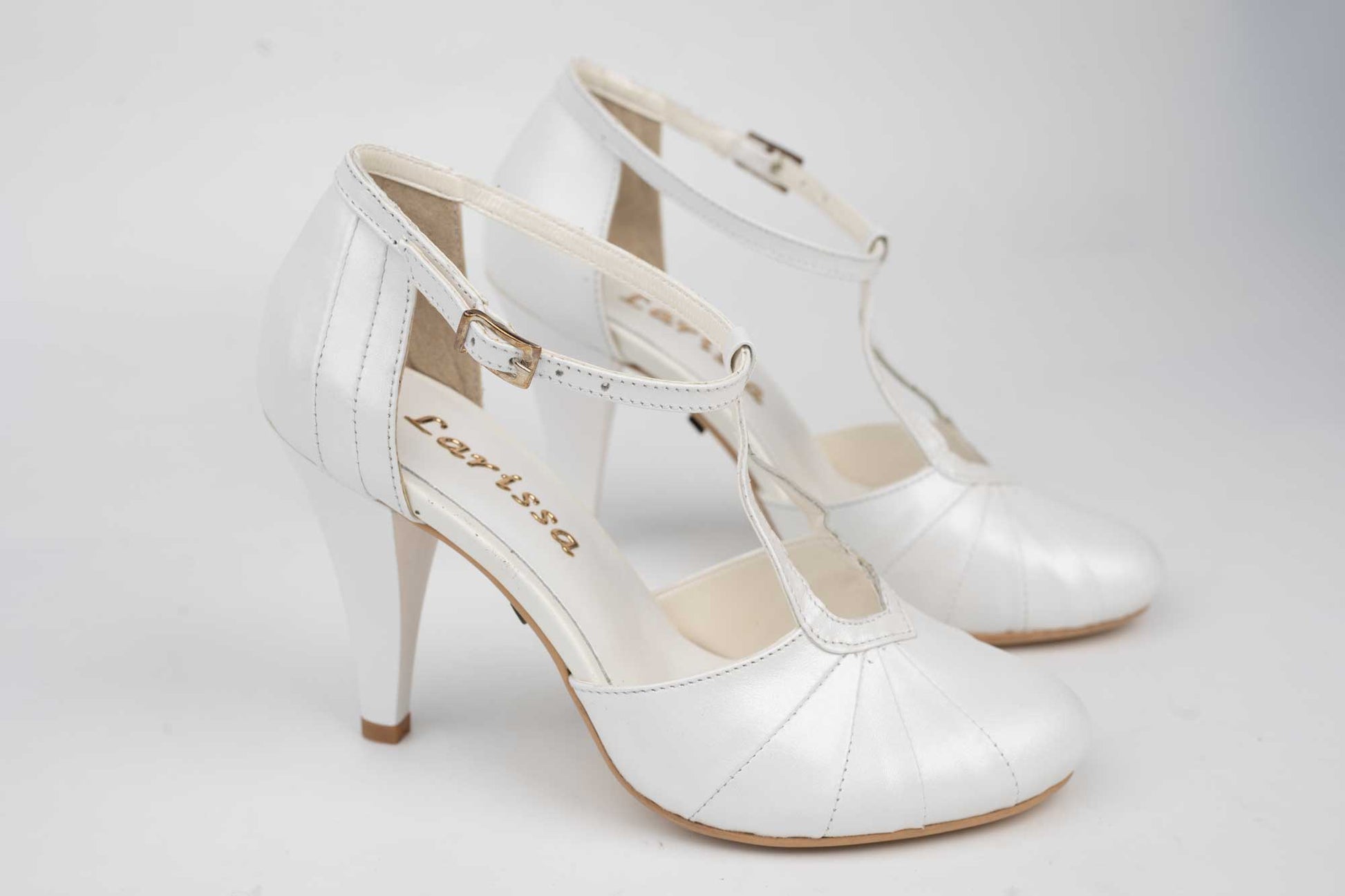 Pantofi mireasa piele naturala LARISA Coco 1 Alb perlat