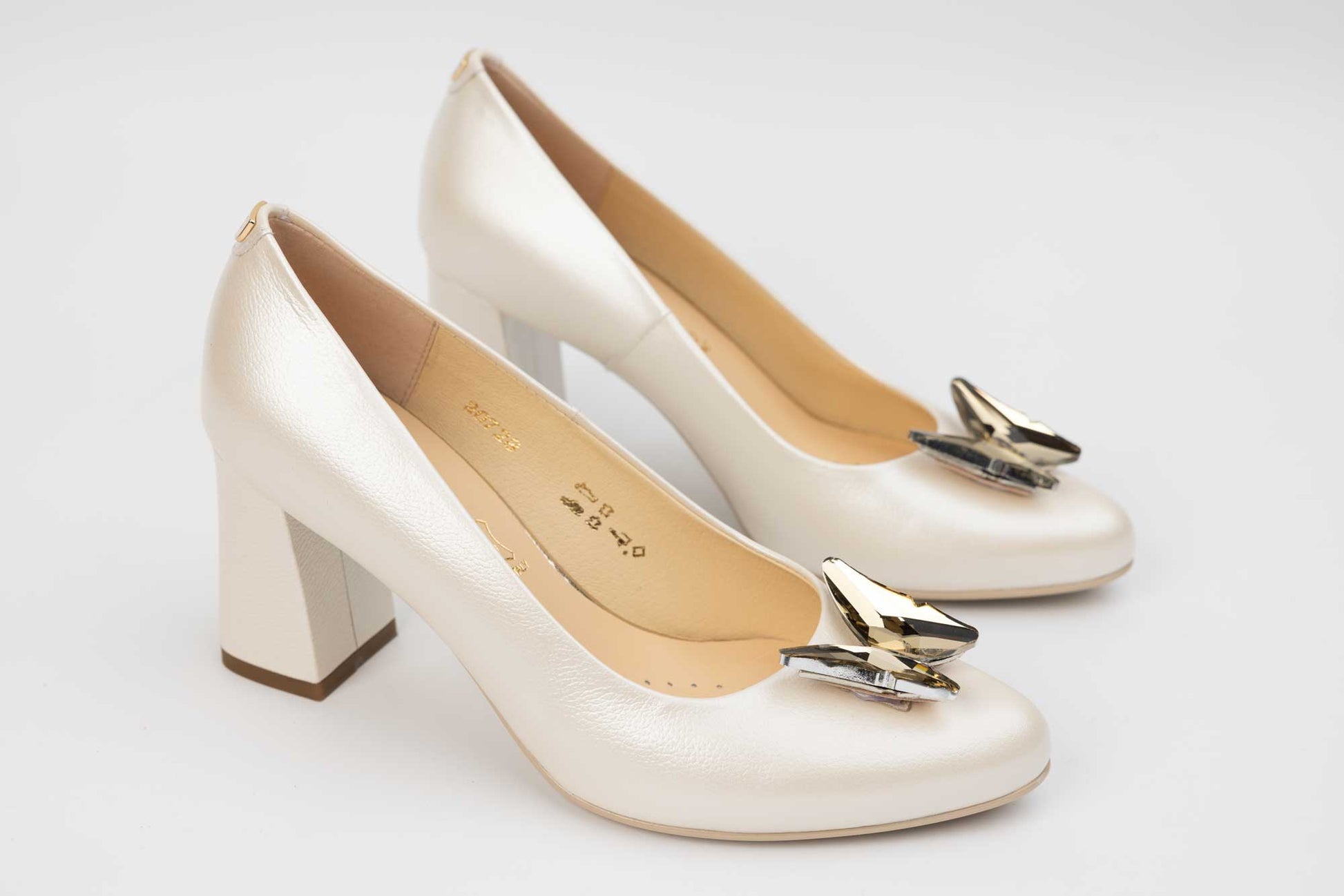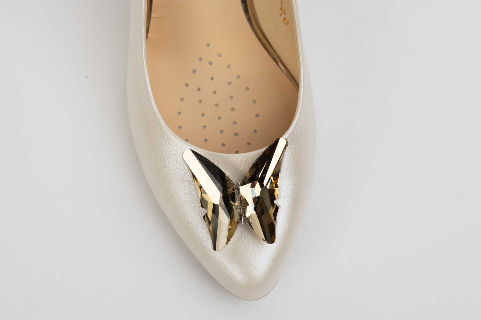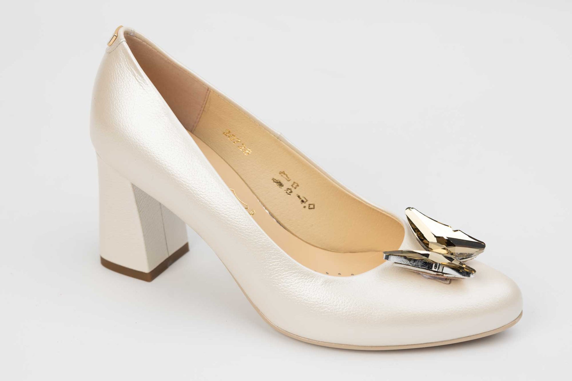 Pantofi mireasa decupați piele naturală PERLA 3314 Alb sidef