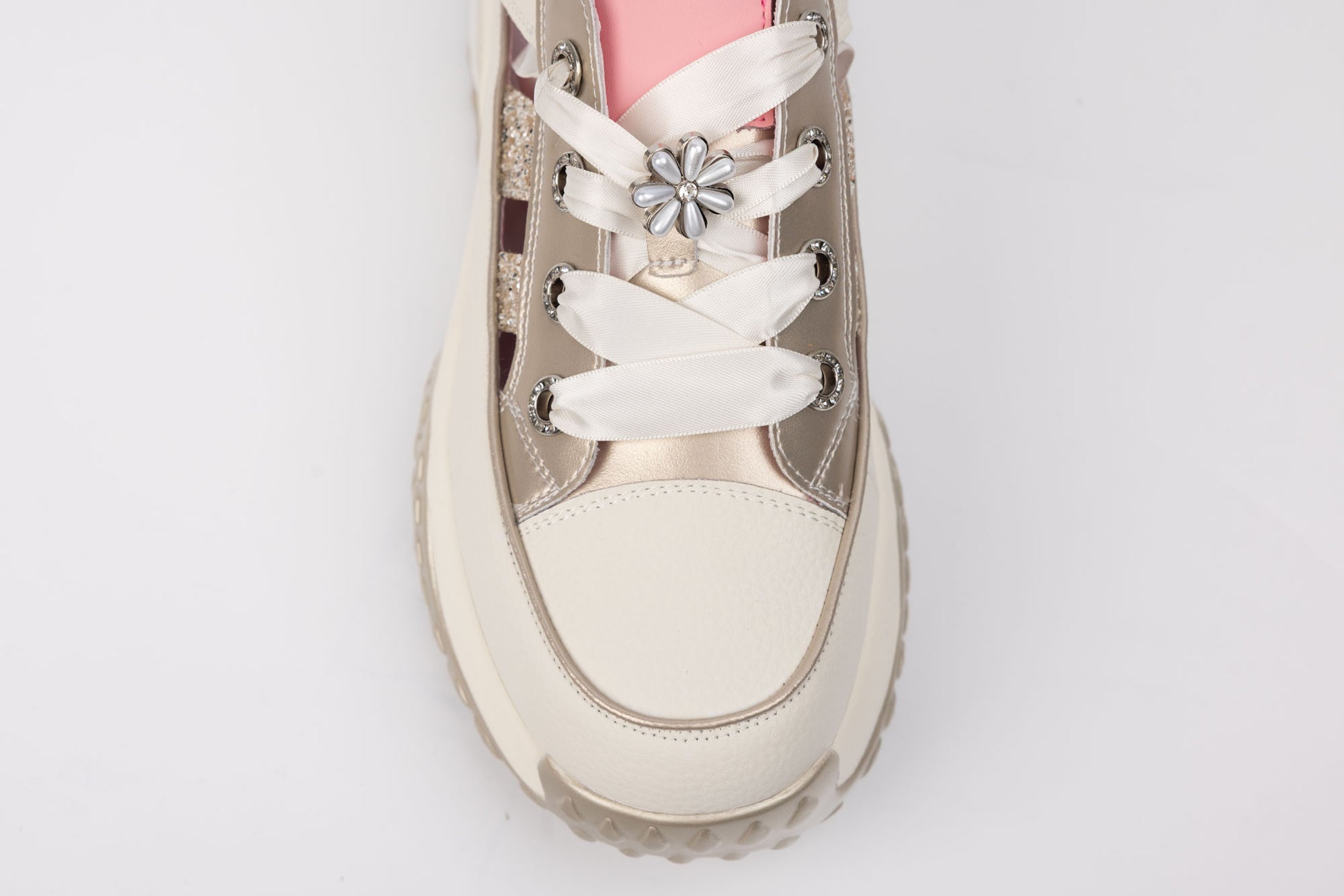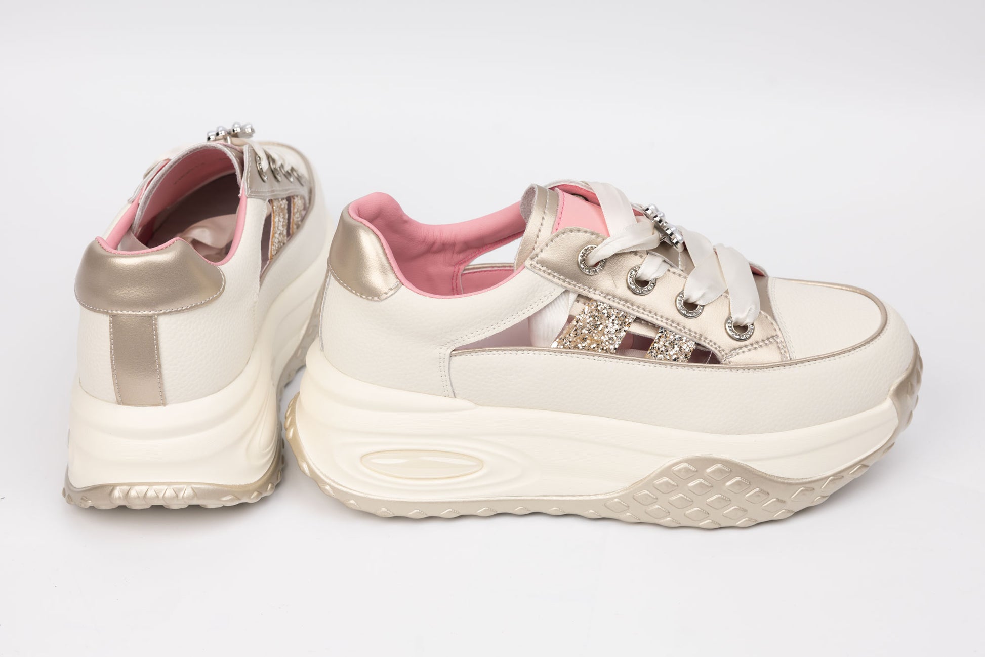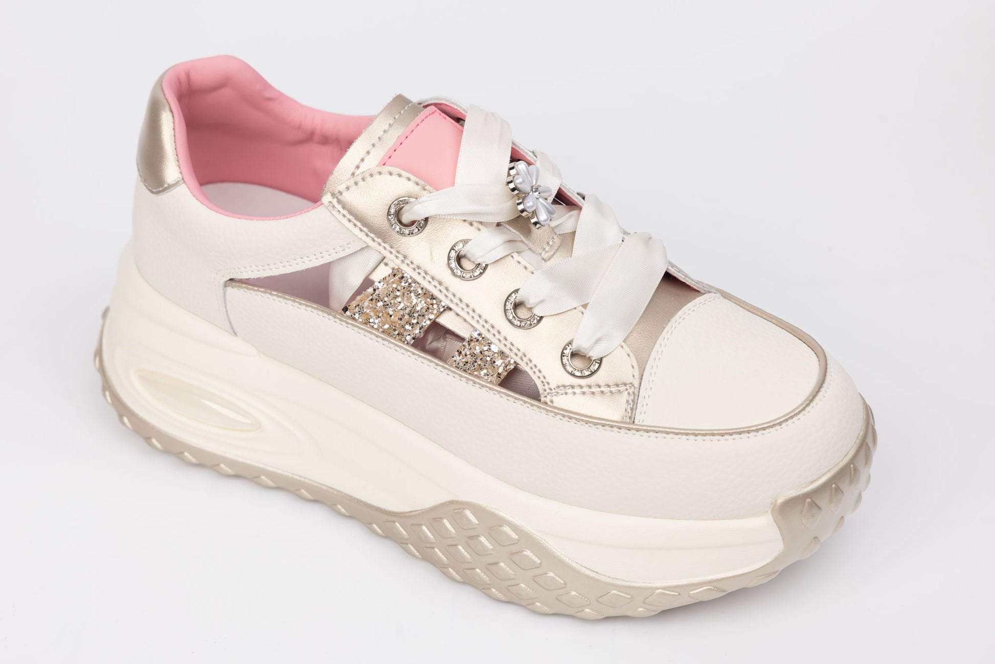 Pantofi FRANCO GERARDO de dama sport de vara decupati din piele naturala de calitate superioara cu siret si talpa groasa de 4 cm cu un brant cu memory foarte moale la interior. Greutatea unui singur pantof este de 310 grame.