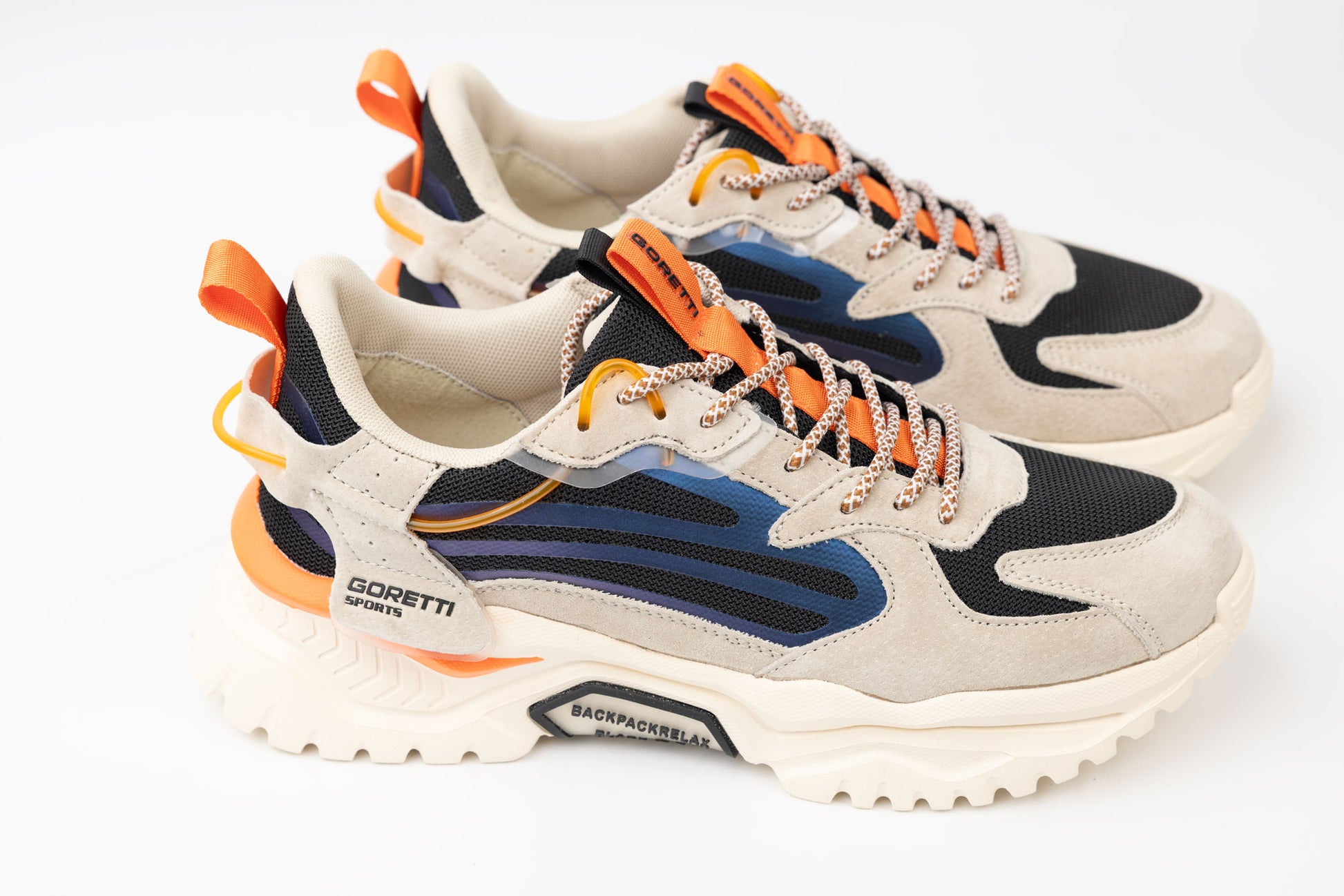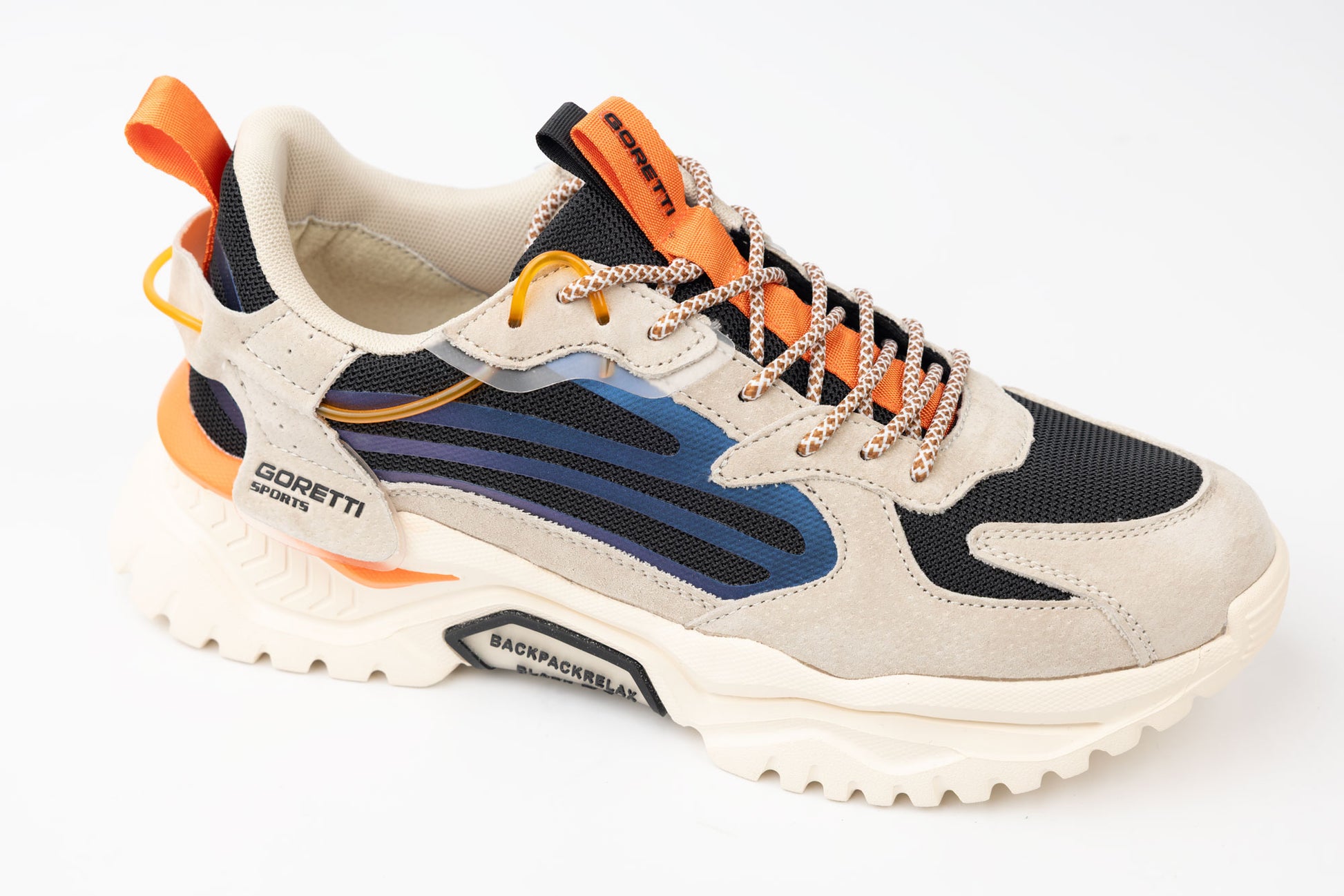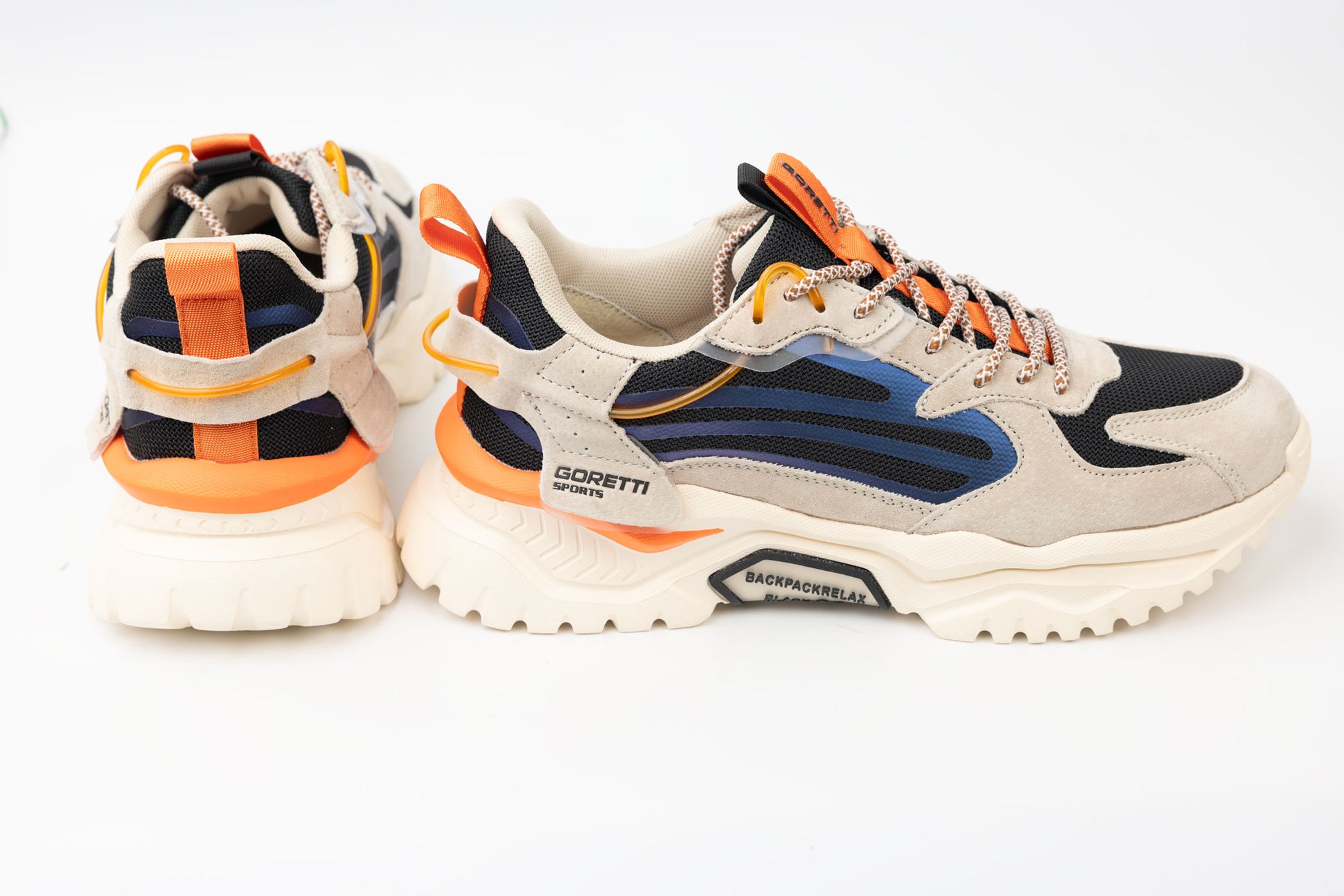 Pantofi GORETTI de barbati casual din piele naturala combinat cu textil ,cu siret elastic rotund avand talpa usoara,moale si are la interior un brant cu memory foarte placut la purtare. Greutatea unui singur pantof este de 280 grame.
