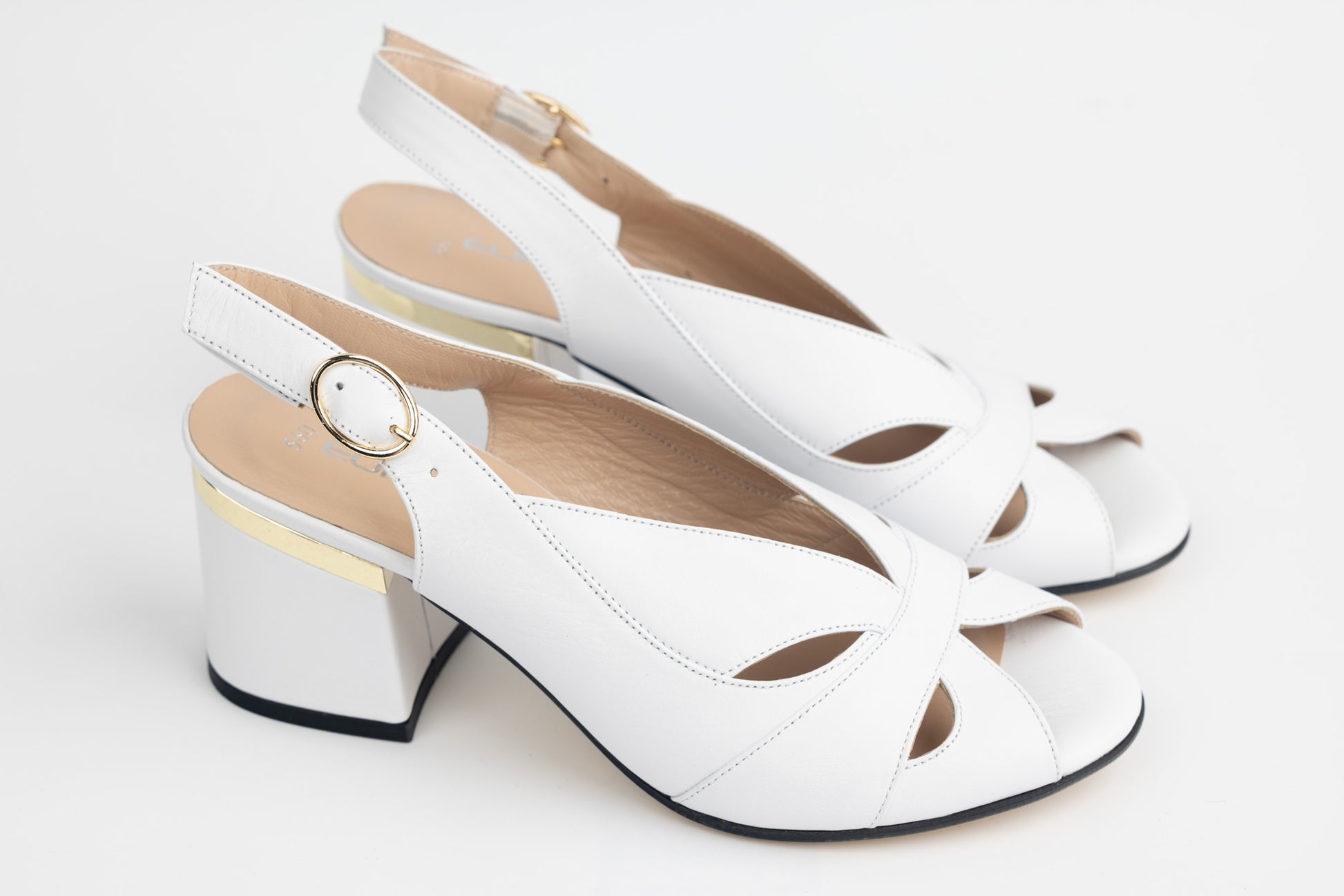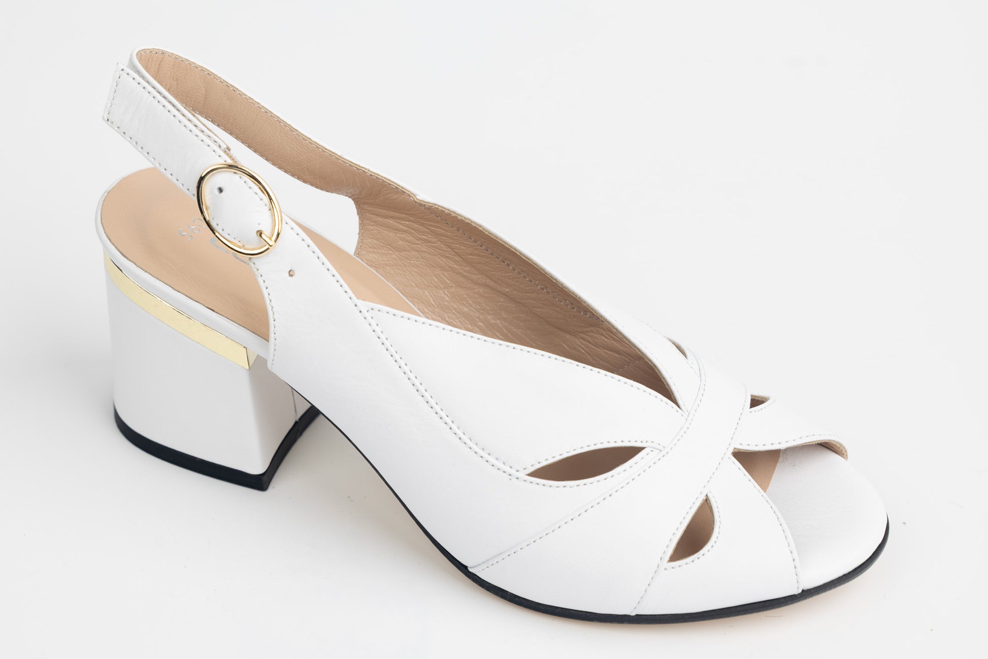 Pantofi mireasa decupați piele naturală PERLA 3314 Alb sidef