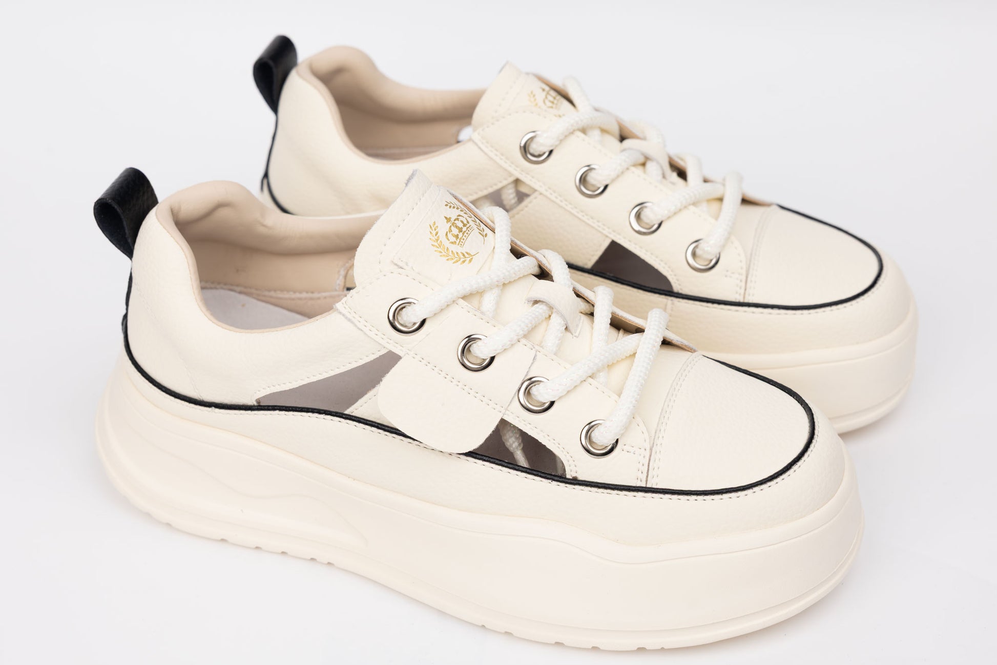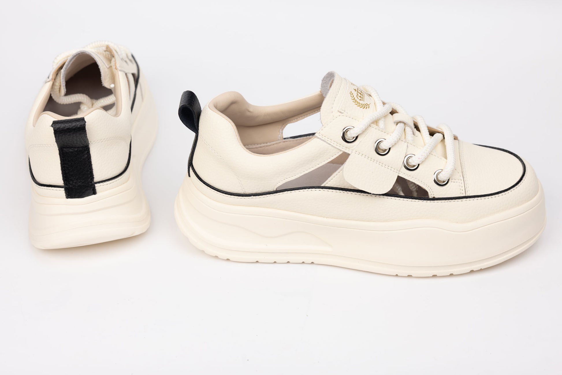 Pantofi FRANCO GERARDO de dama sport de vara decupati din piele naturala de calitate superioara cu siret si talpa groasa de 4 cm cu un brant cu memory foarte moale la interior. Greutatea unui singur pantof este de 310 grame.