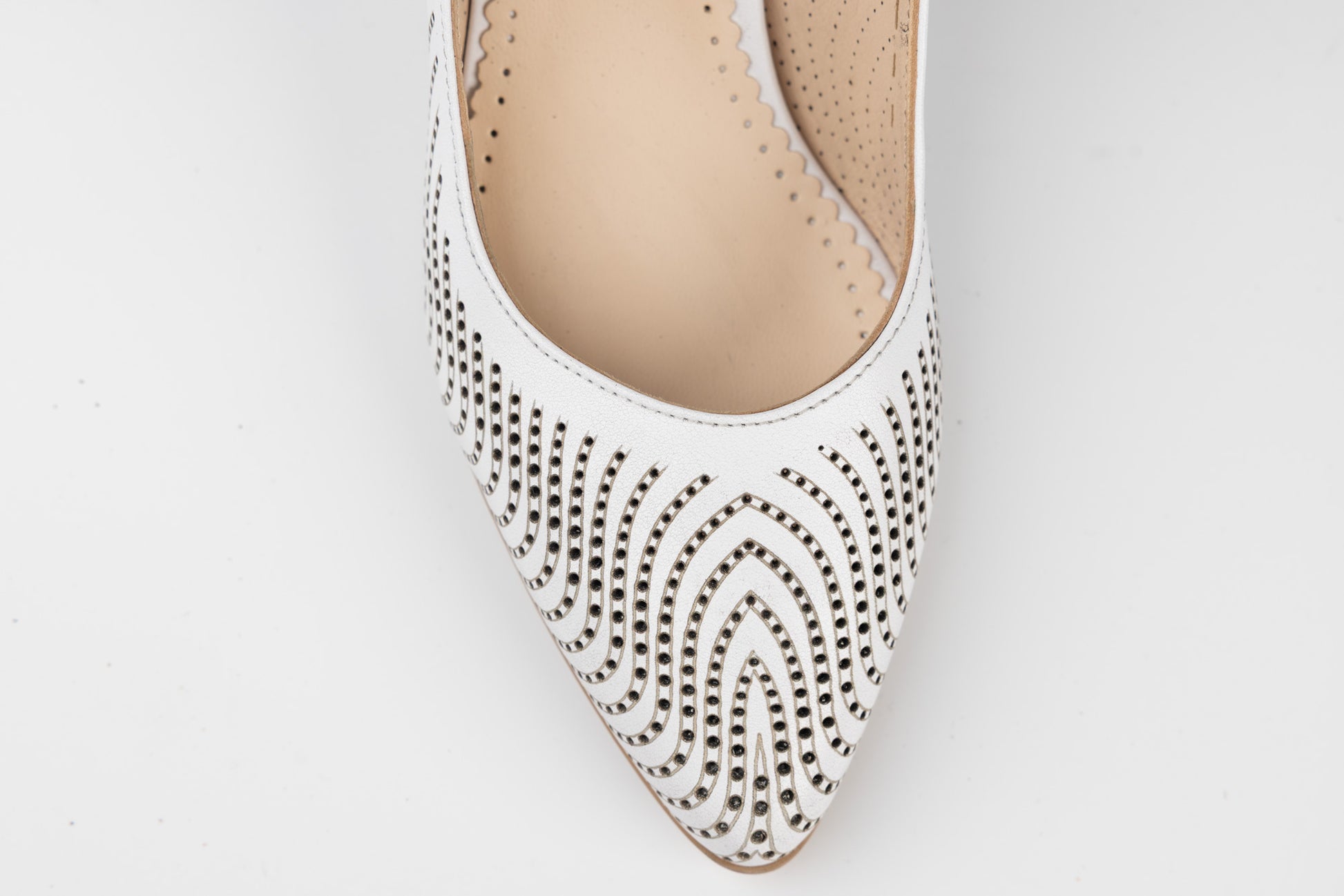 Pantofi mireasa decupați piele naturală PERLA 3314 Alb sidef