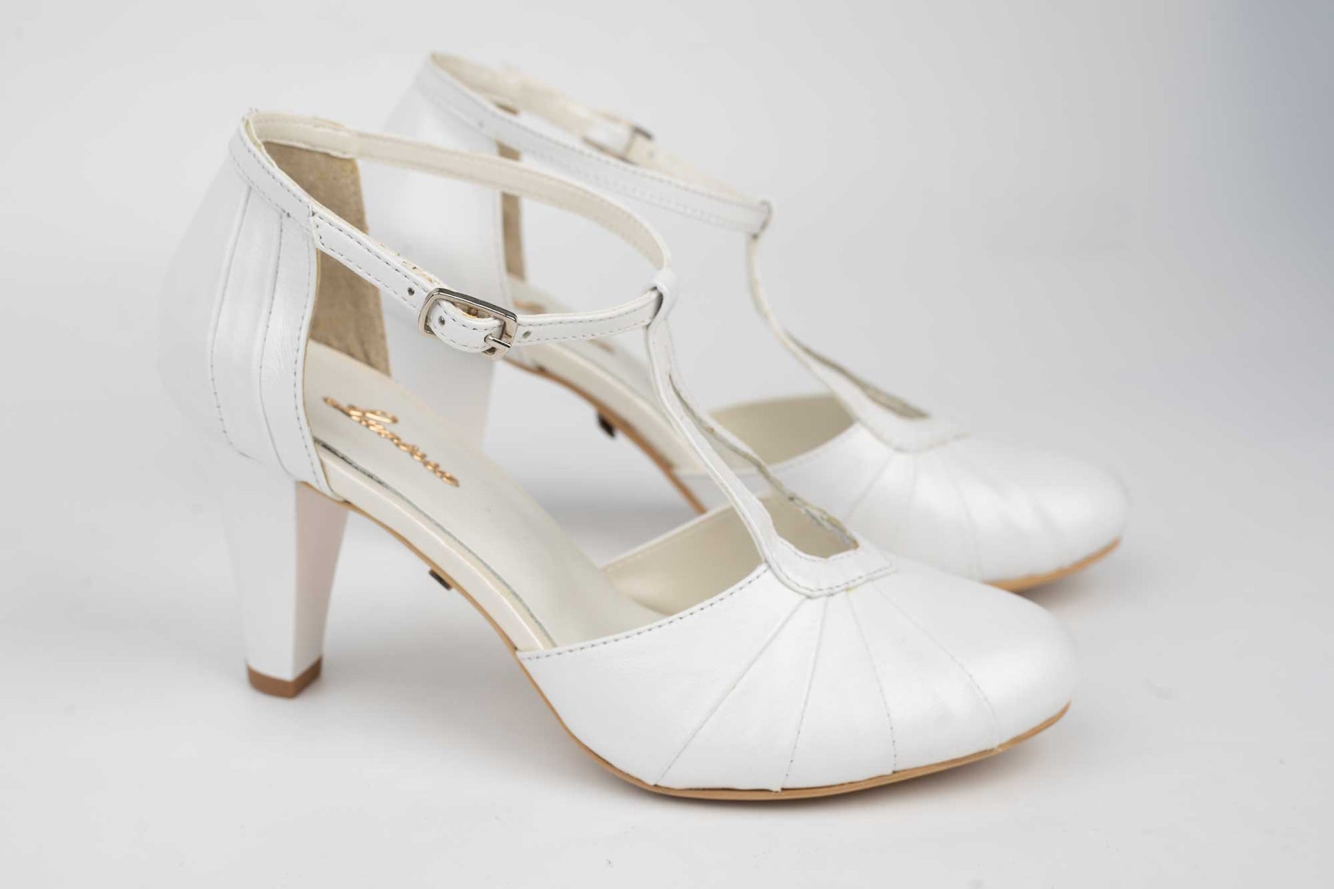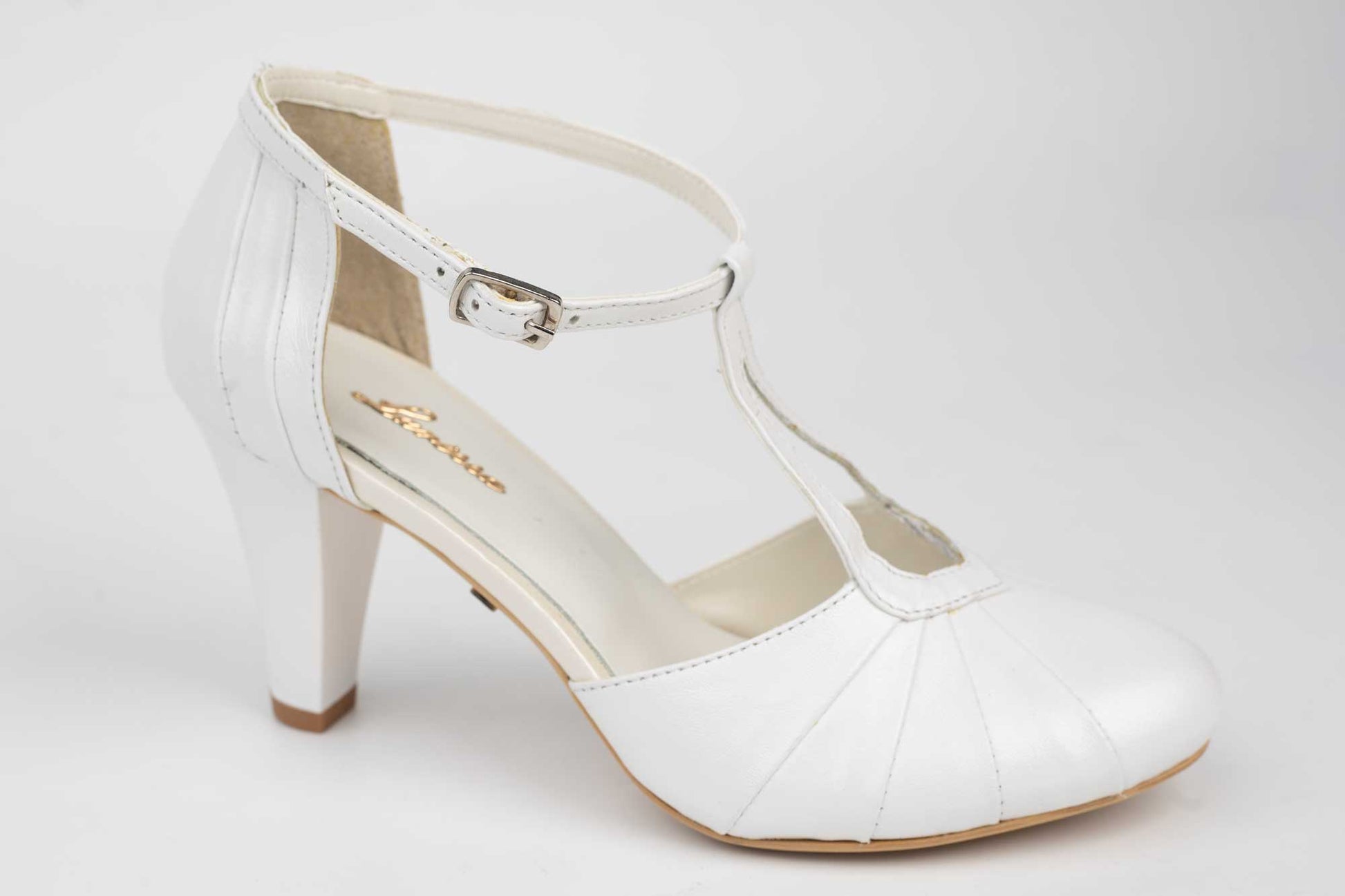 Pantofi mireasa piele naturala LARISA Coco Alb perlat