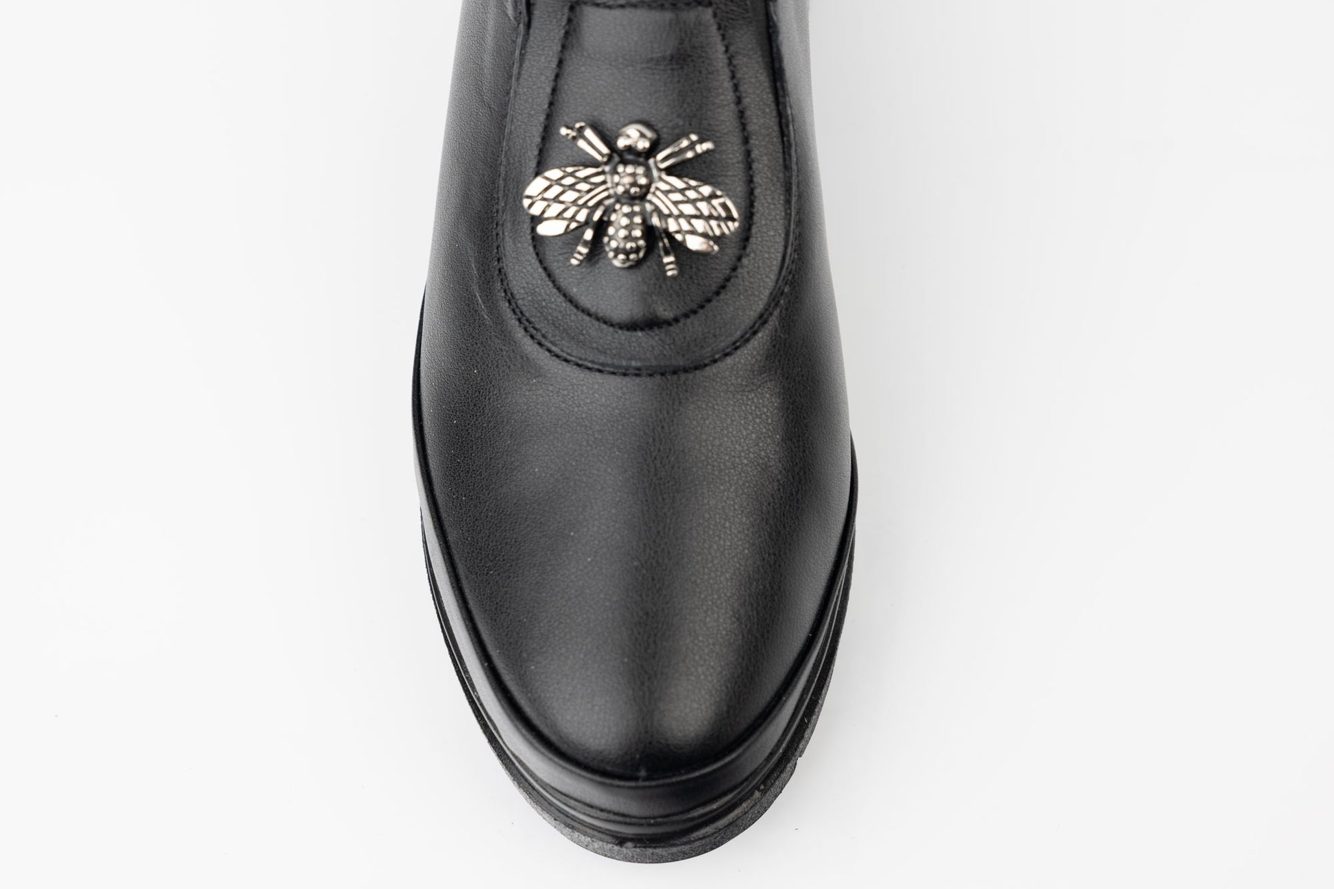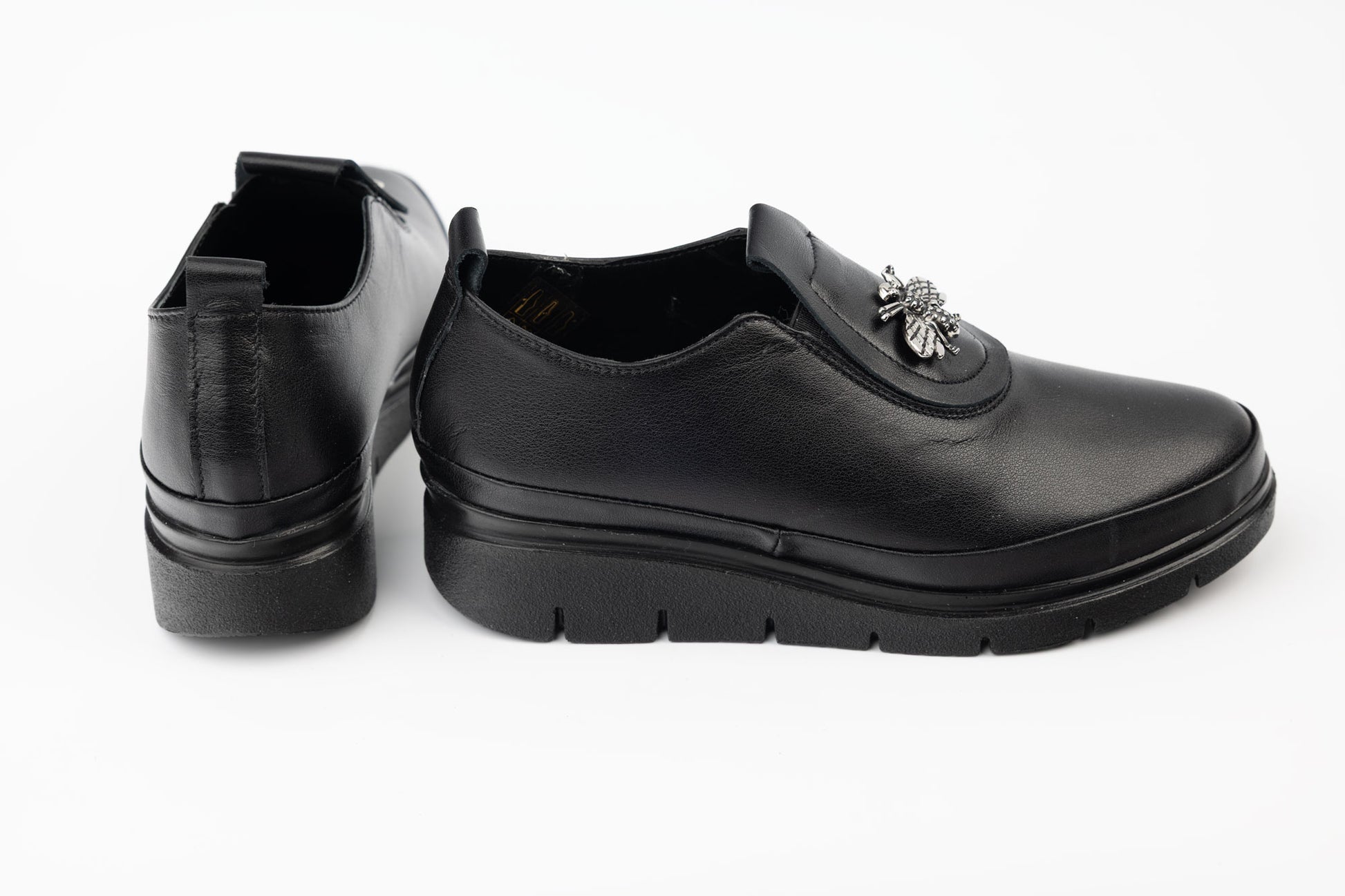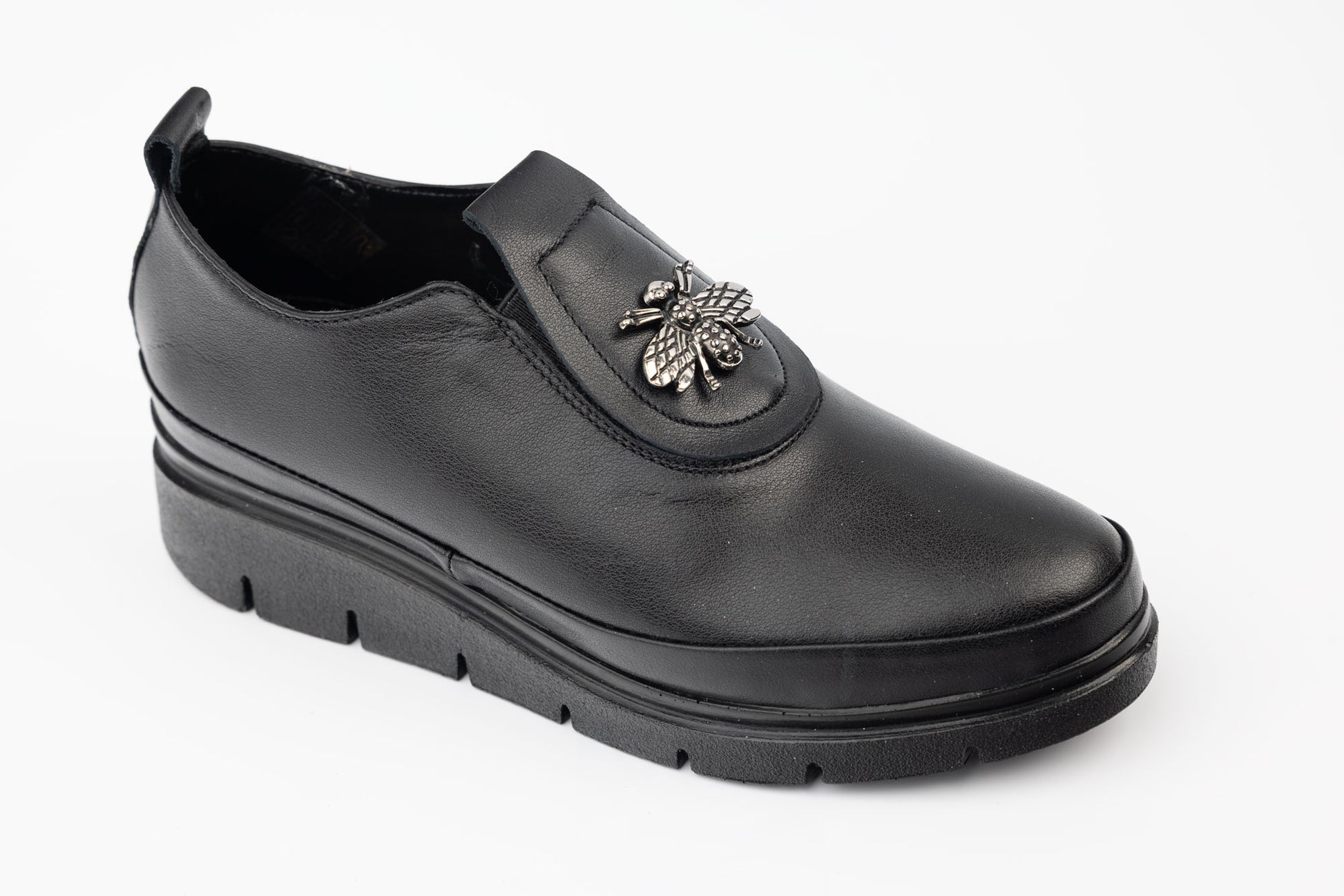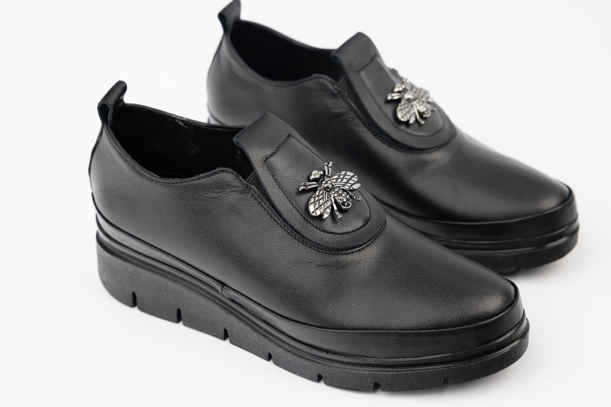 Pantofi PERLA casual din piele naturală. Avand talpa usoara,elastica,moale si foarte placut la purtare.Accesorizat finut in partea superioara cu un ornament albinuță argintiu.Greutatea unui singur pantof este de 250 grame. Mărimi de la 33 pana la 40.