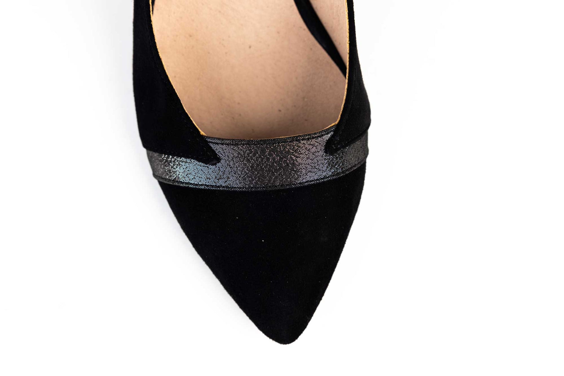 Pantofi ANTONIO de dama decupati din piele intoarsa naturala avand tocul patrat de 6 cm, iar pe varf e montata o fundita din piele. Greutatea unui singur picior este de 240 grame. Recomandat pentru doamne cu picior mai lat sau cu mont.