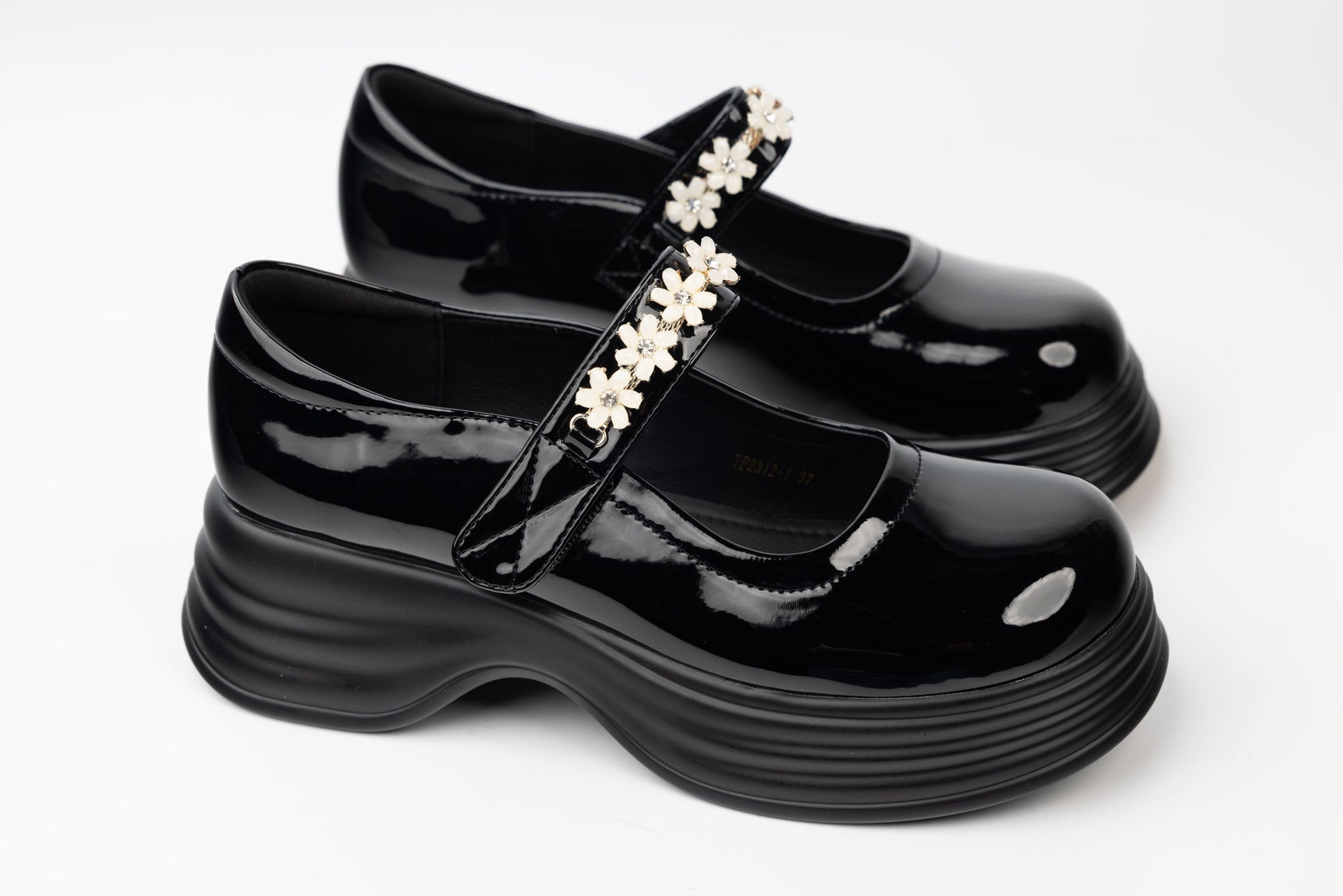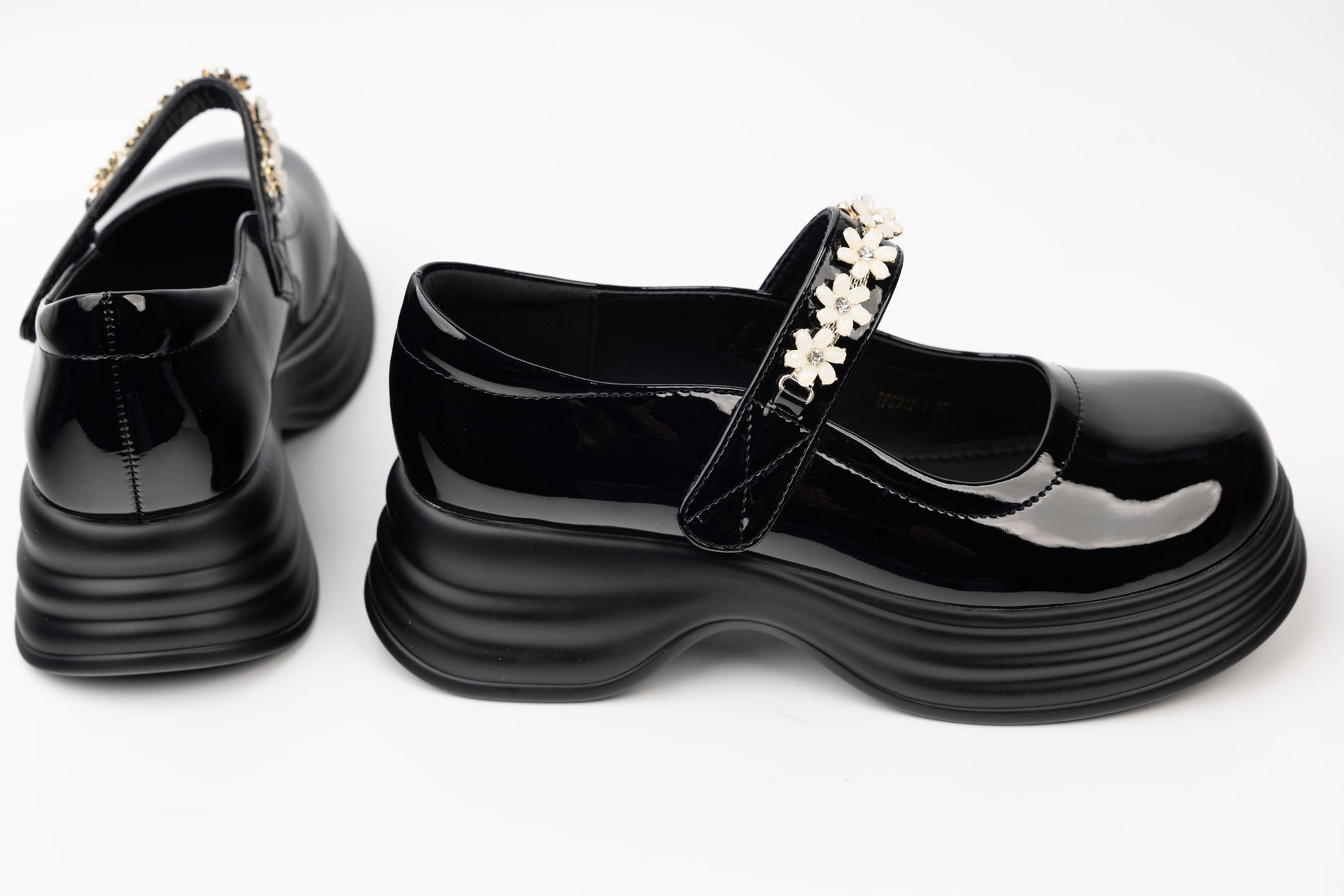 Pantofi dama FORMAZIONE din piele naturala lucioasa cu talpa turnata groasa, captusite la interior cu piele naturala avand prinderea cu o bareta deasupra piciorului. Inclinatia lina a piciorului in aceste sandale face mult mai comoda purtarea lor un timp indelungat fiind recomandate chiar si pentru picioare cu mont pentru ca le acopera in intregime. Greutatea unui singur picior este de 250 grame.